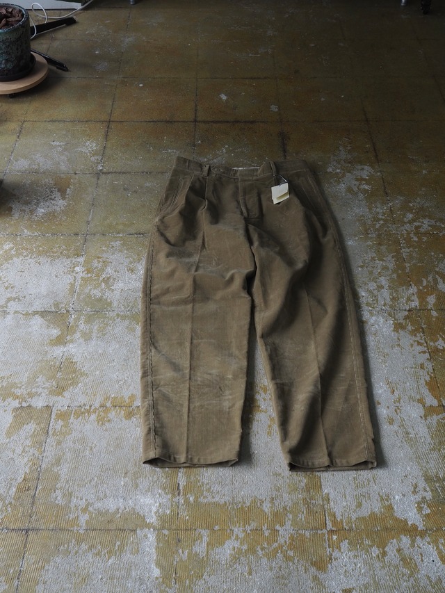 ●2000's " ARMANI COLLEZIONI " deadstock アルマーニのコーデュロイスラックス。 デッドストックです。 太畝のコーデュロイって個人的には若く見える気がして苦手なんですが、細畝でこの色味、このブランドだからこそ大人っぽく穿けるかなと。 ウエストは2タックで両玉縁ポケット。 作りの良さはもちろん、太めなシルエットも良いです。 どんなスタイルにも落とし込める普遍的な良いパンツ。 ●material cotton ●color beige ●size 52 (実寸約W34) ウエスト平置き43cm股上33cm股下80cmワタリ36cm裾幅22cm ●condition good ●model height 179cm