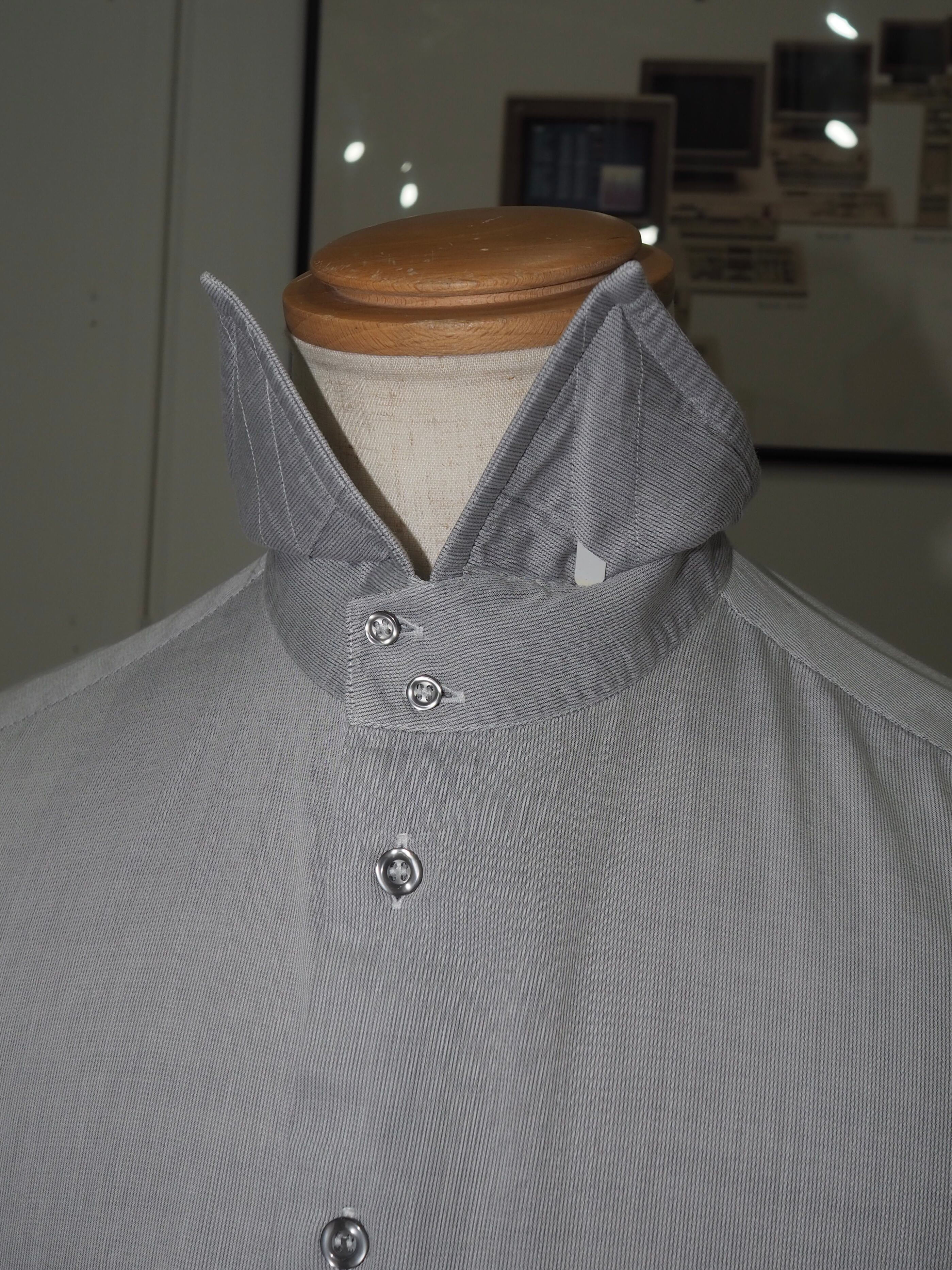 襟には芯が入っており、トップのボタン2つがズレて付く面白いデザイン。