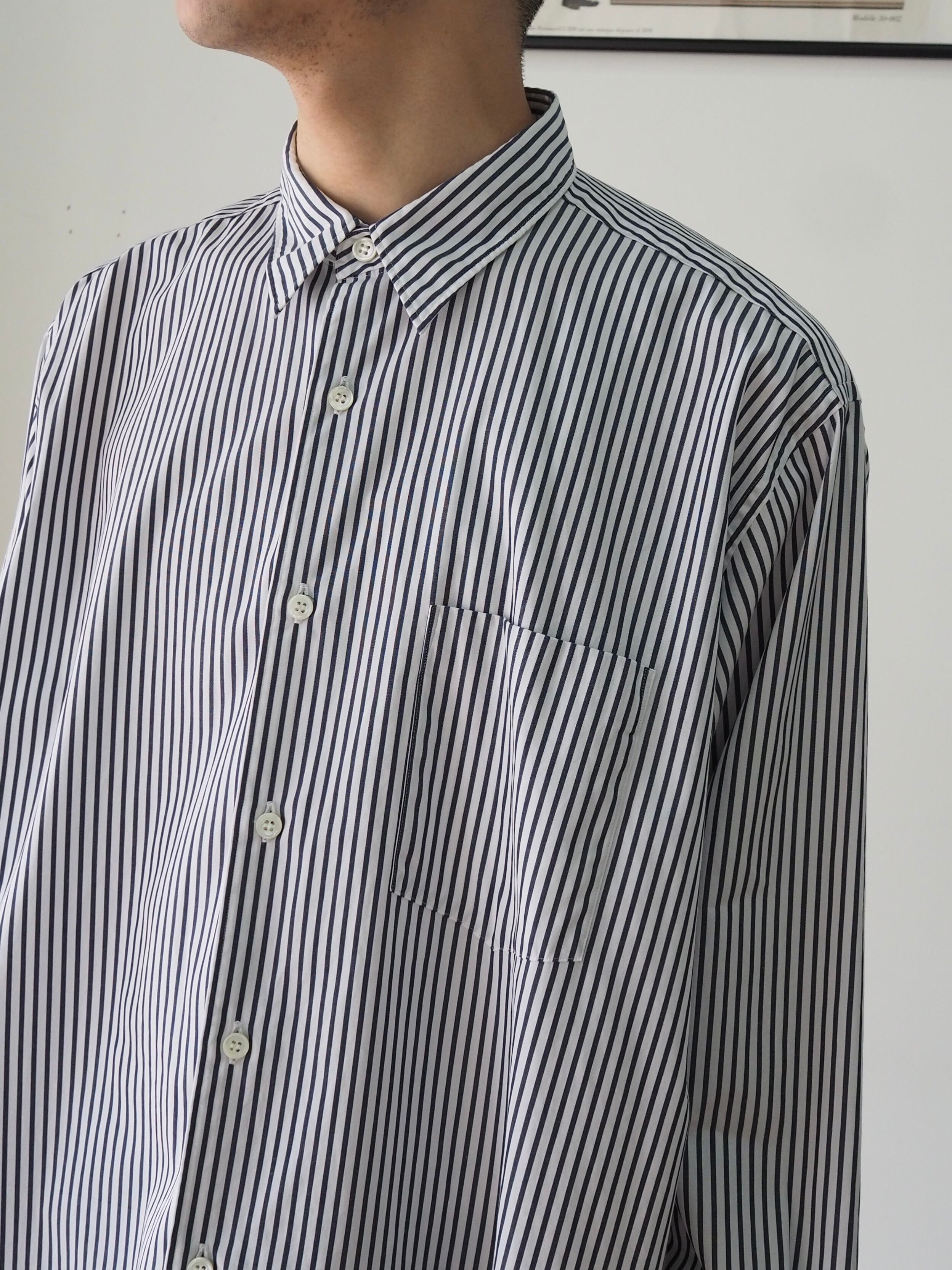 ホワイト×ネイビーの程よいピッチのストライプ。