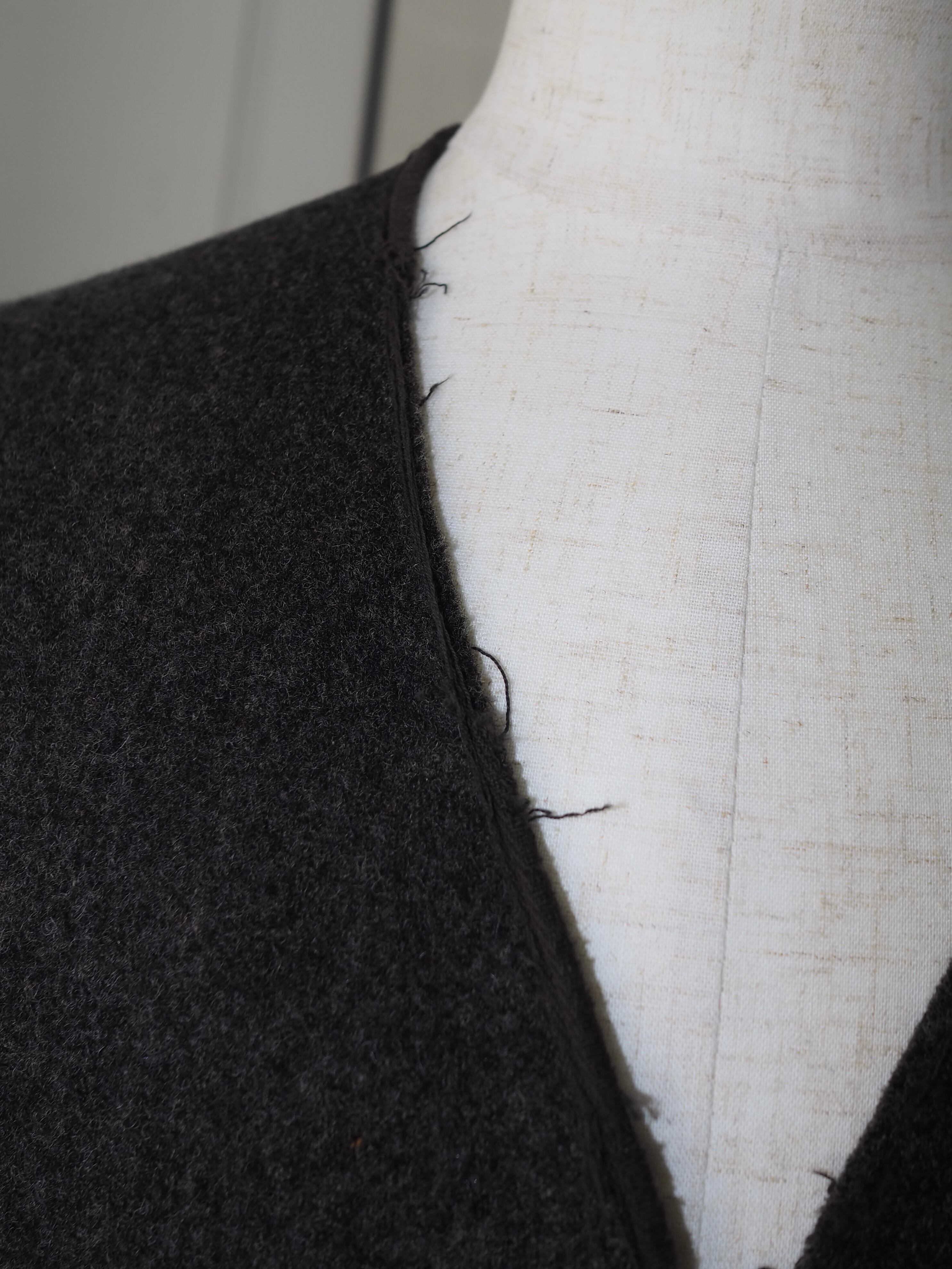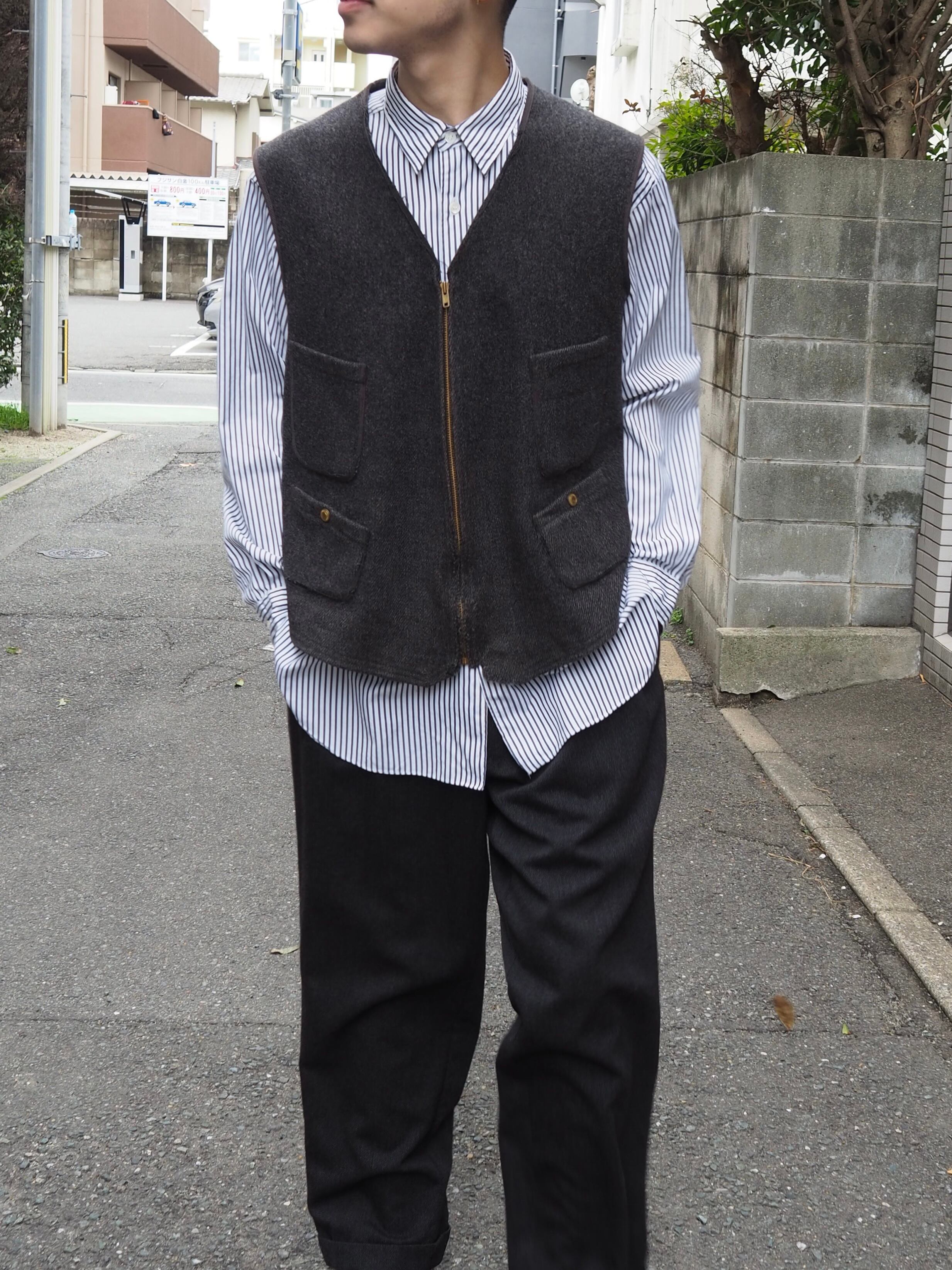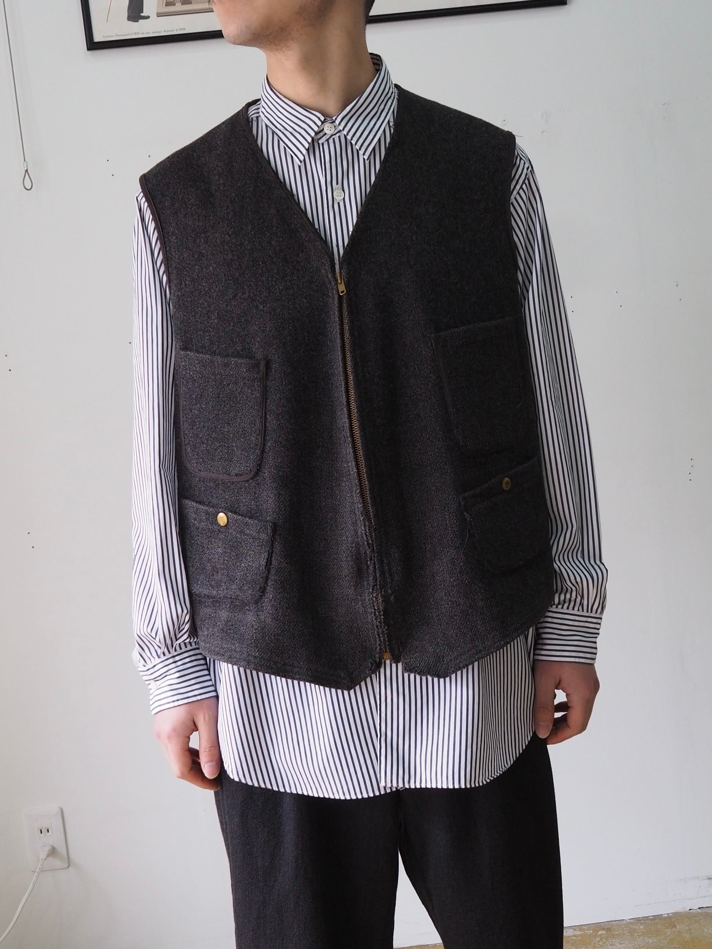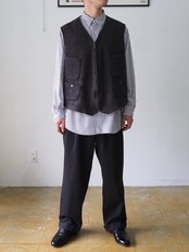 今年はシャツにこんなベストを羽織りたいなーって感じなんですが、今の時期はライトなコートの上にも良さそう。