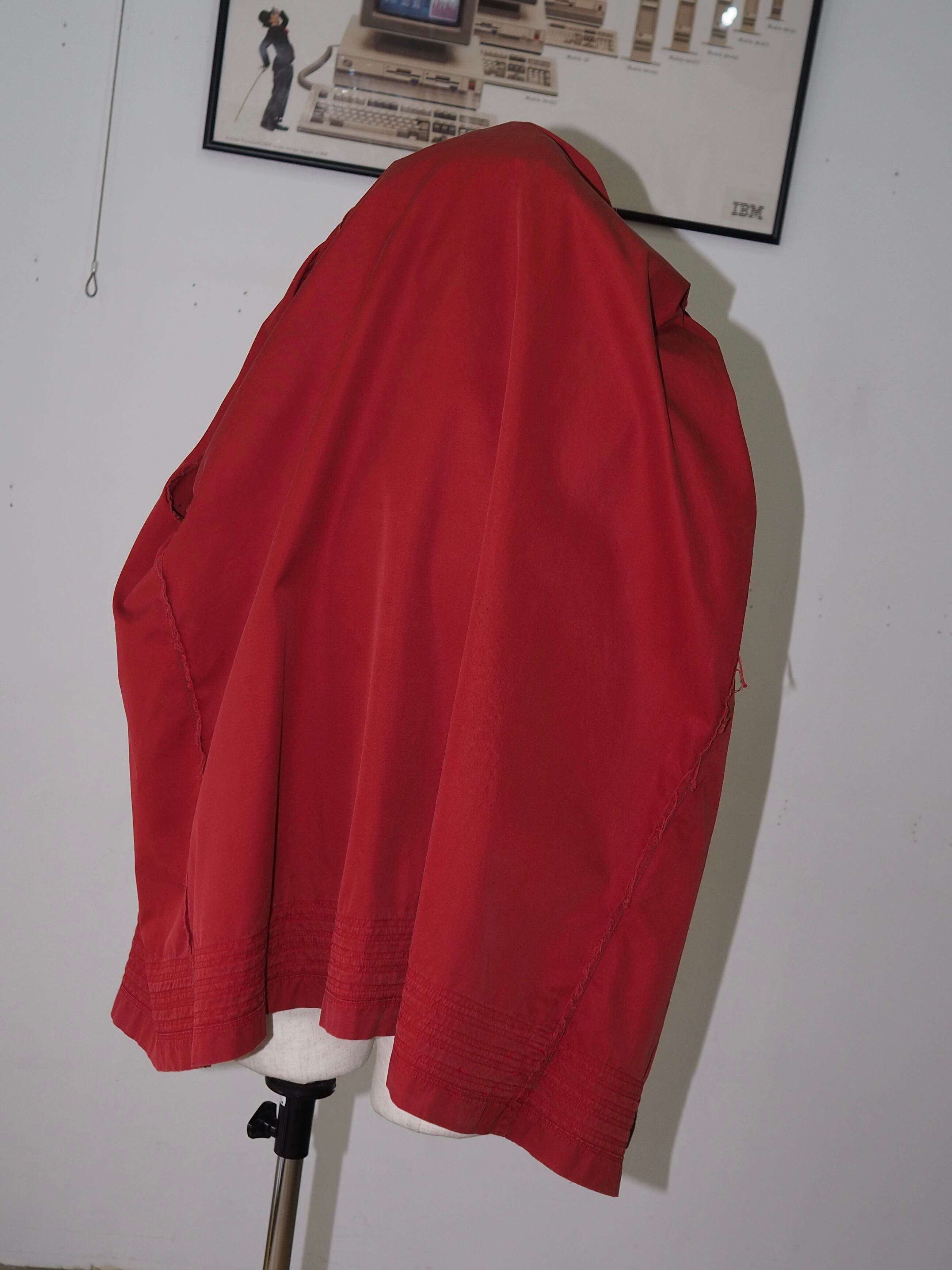 ストレッチマンみたいなフード、袖&裾のテープ、ざっくりとしたサイジング、ワイドなアーム。