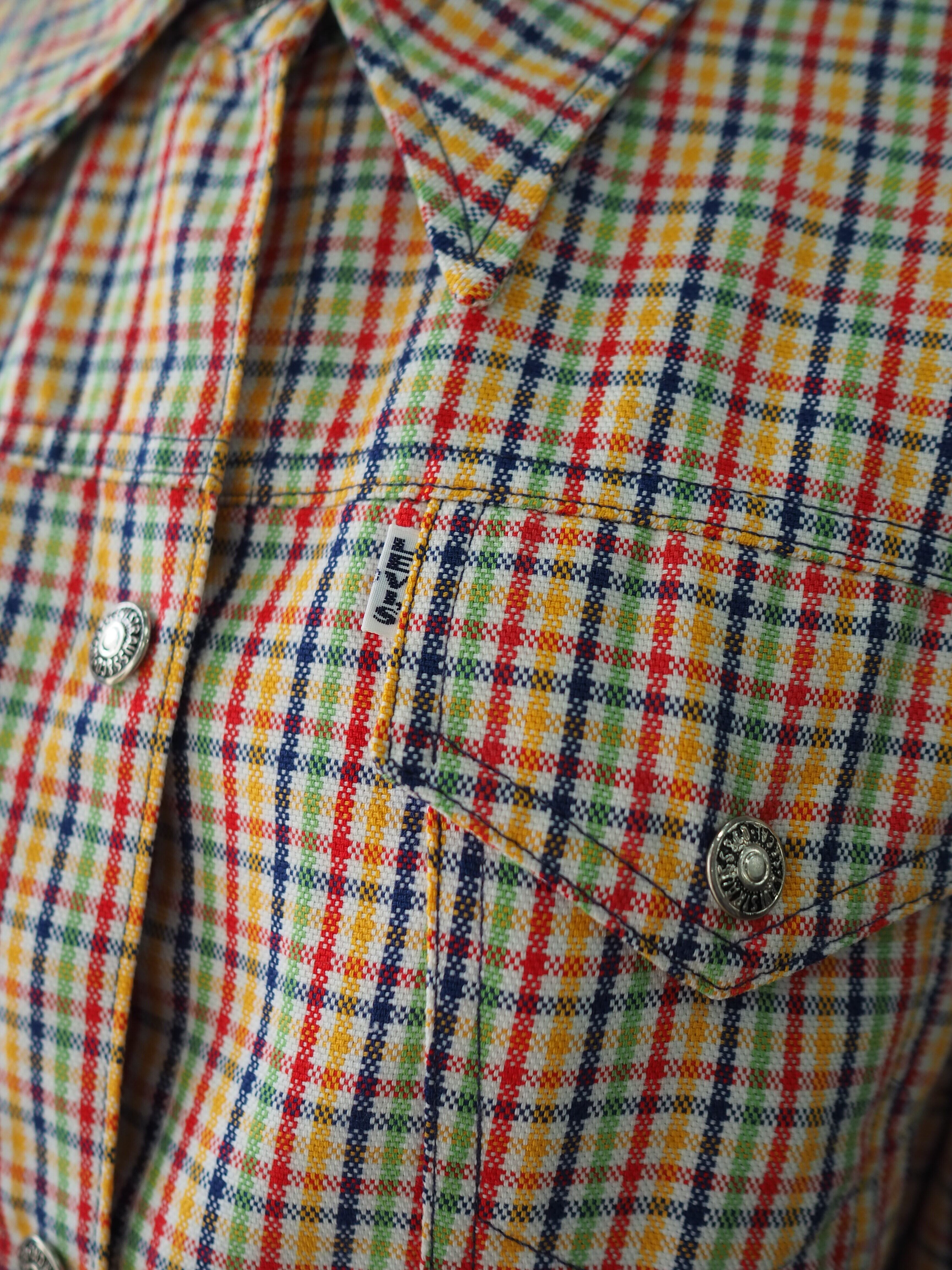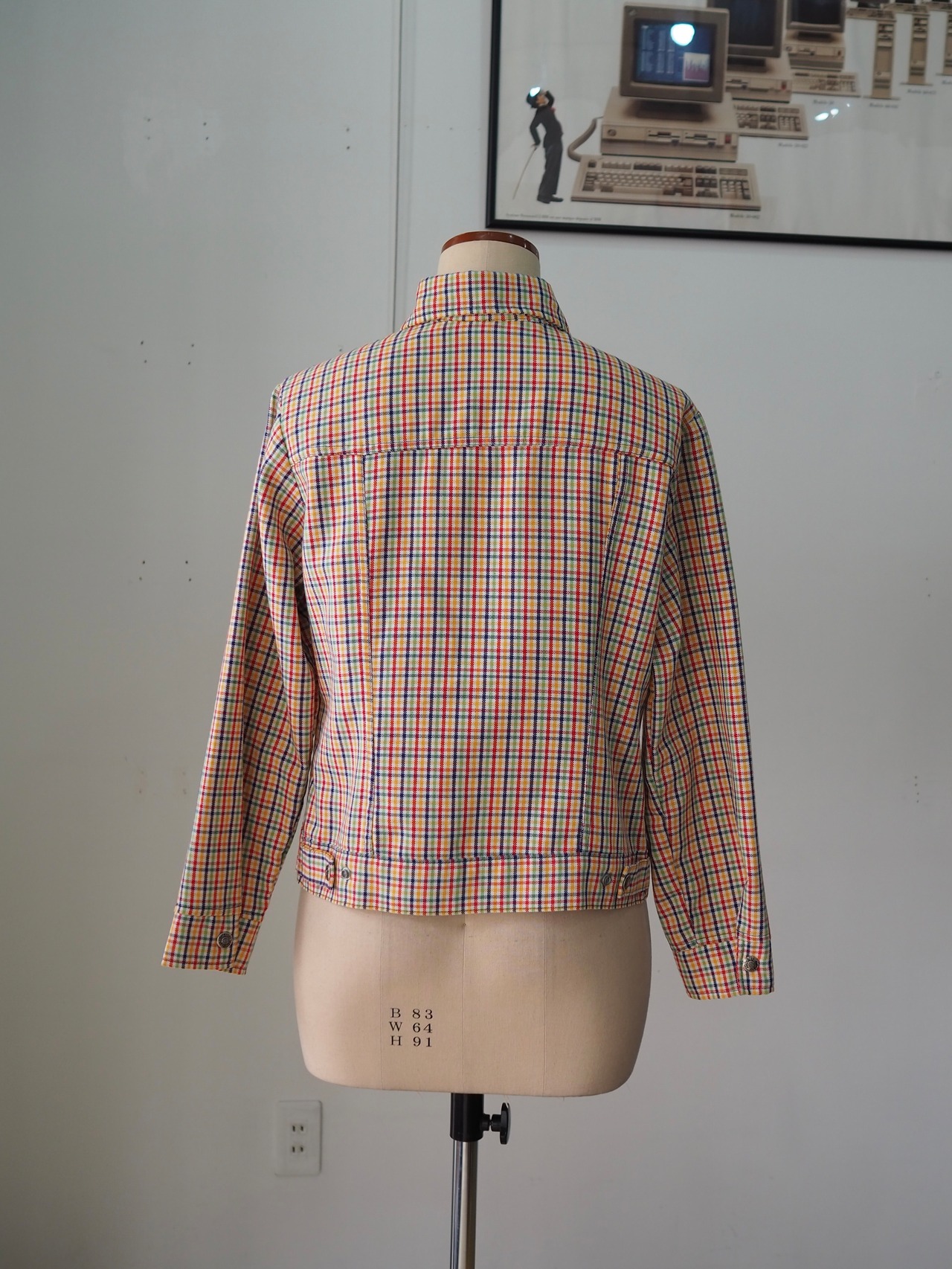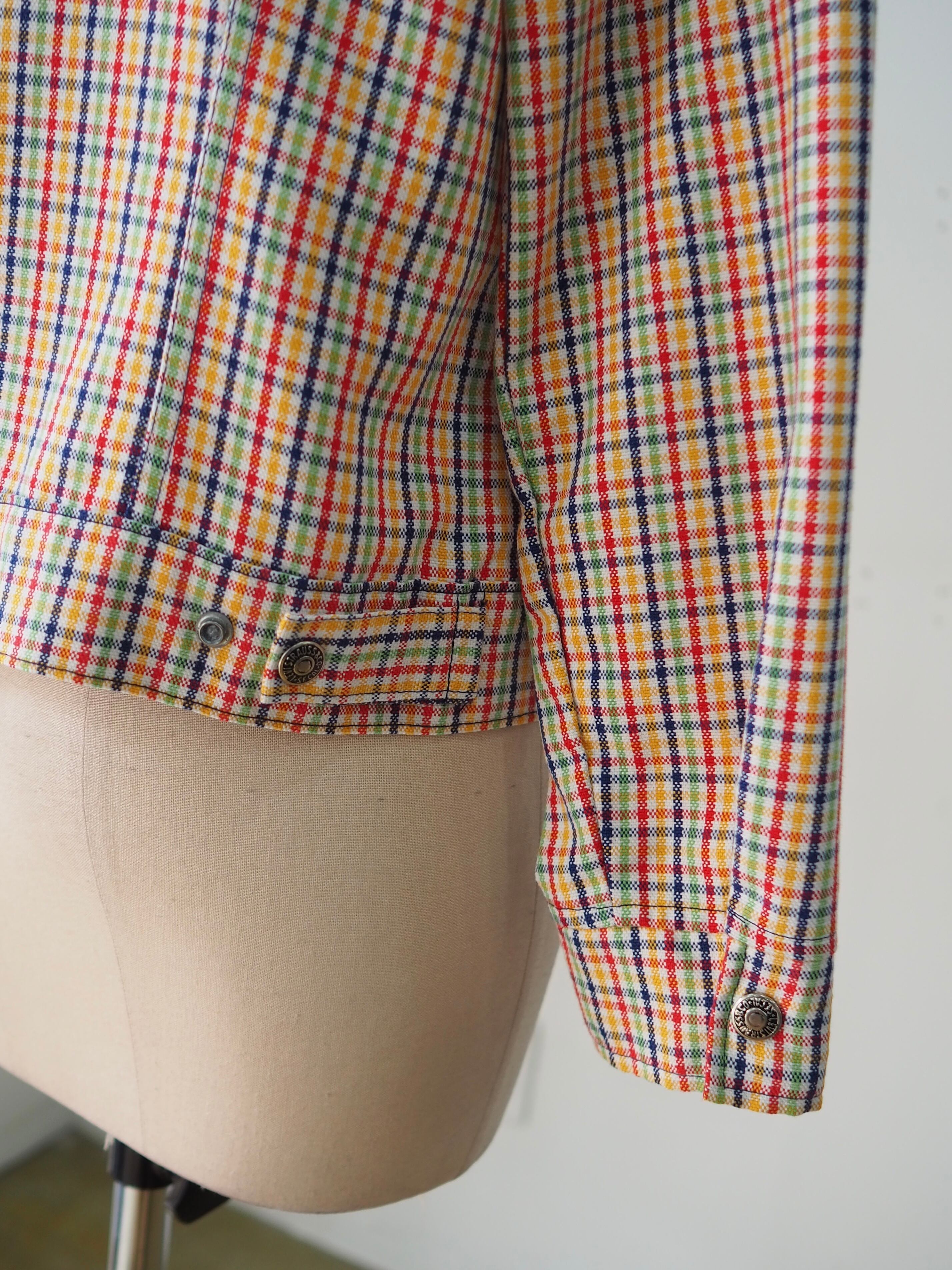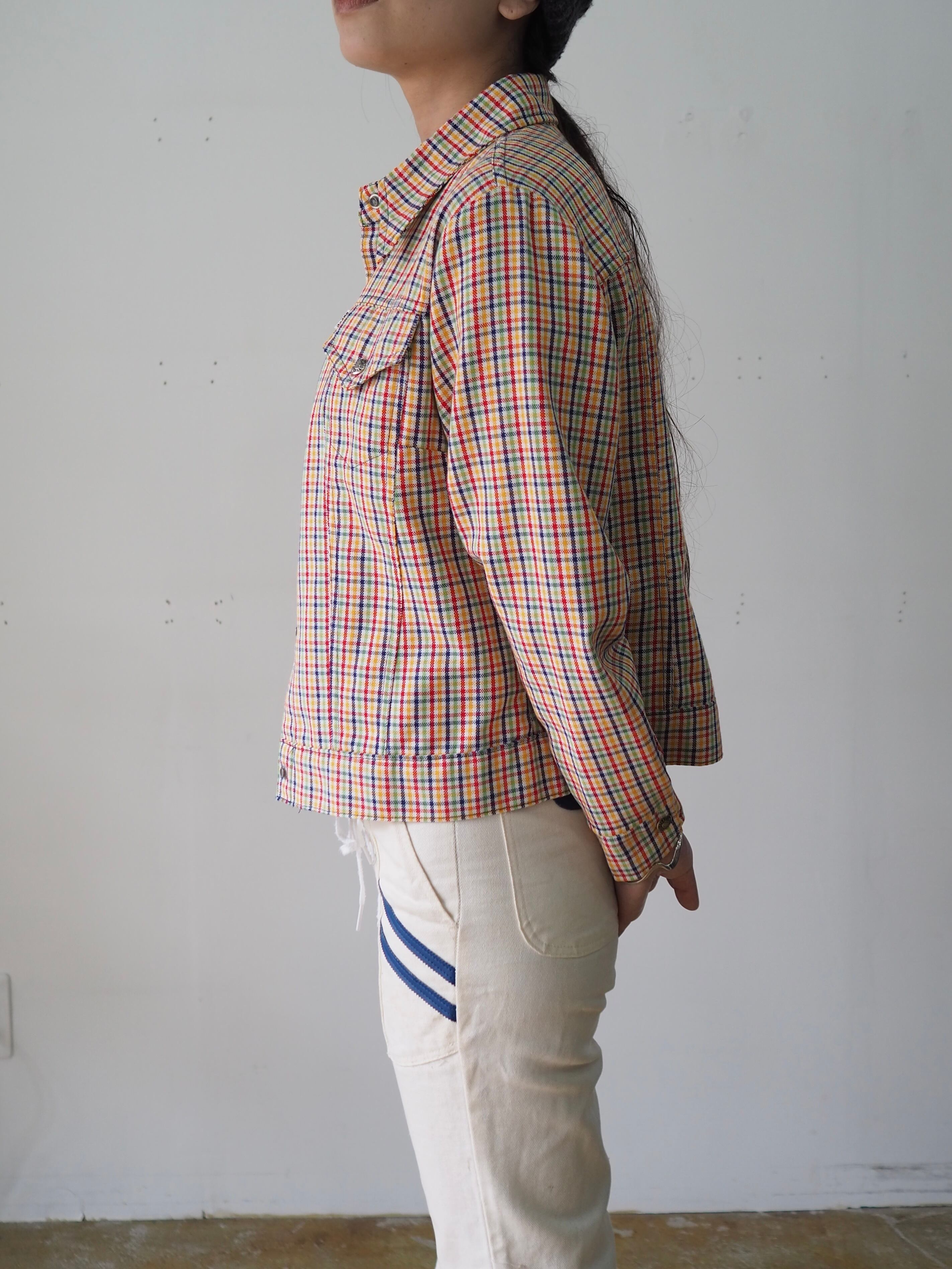 カラフルなチェック柄のトラッカージャケット。