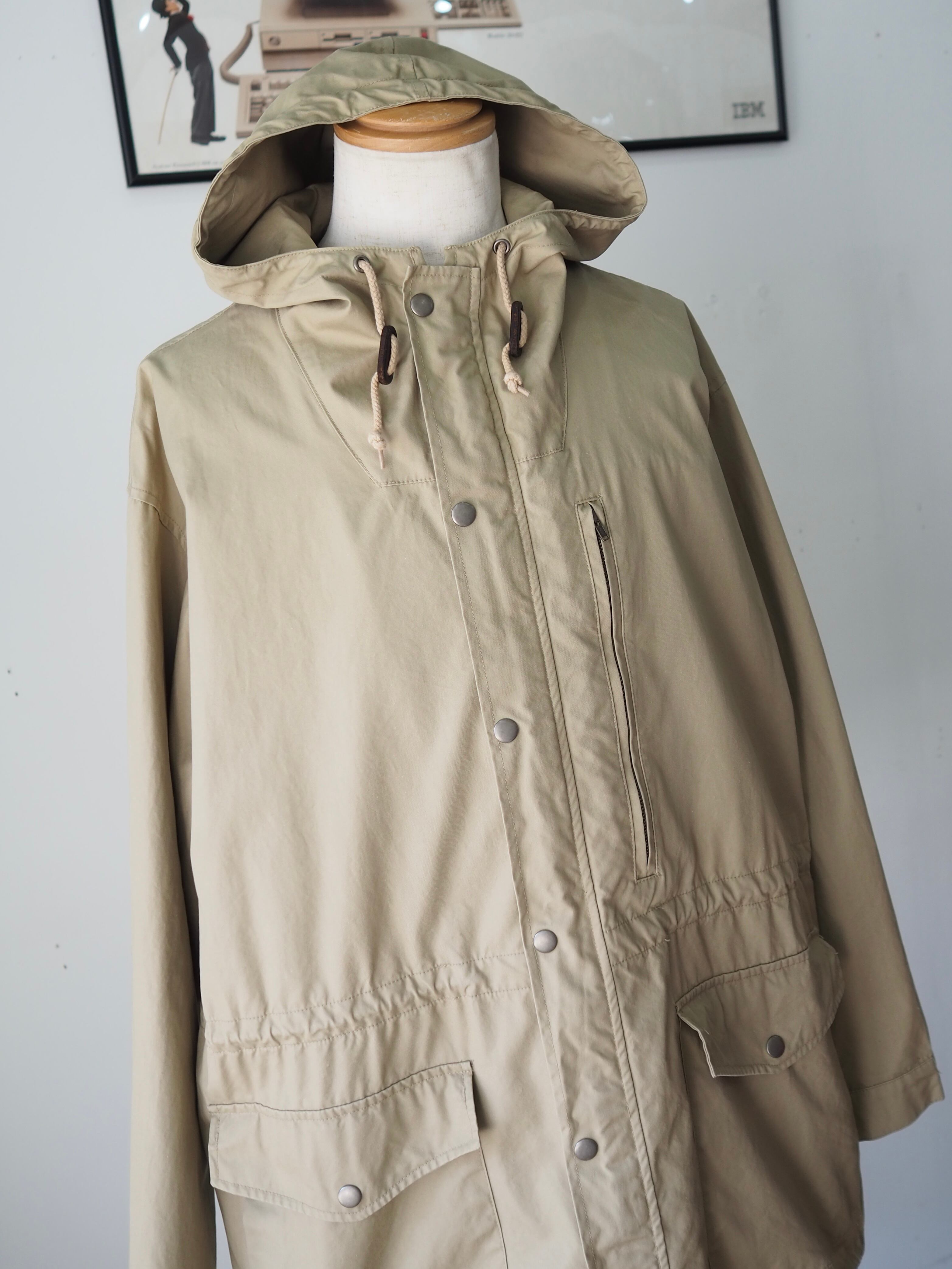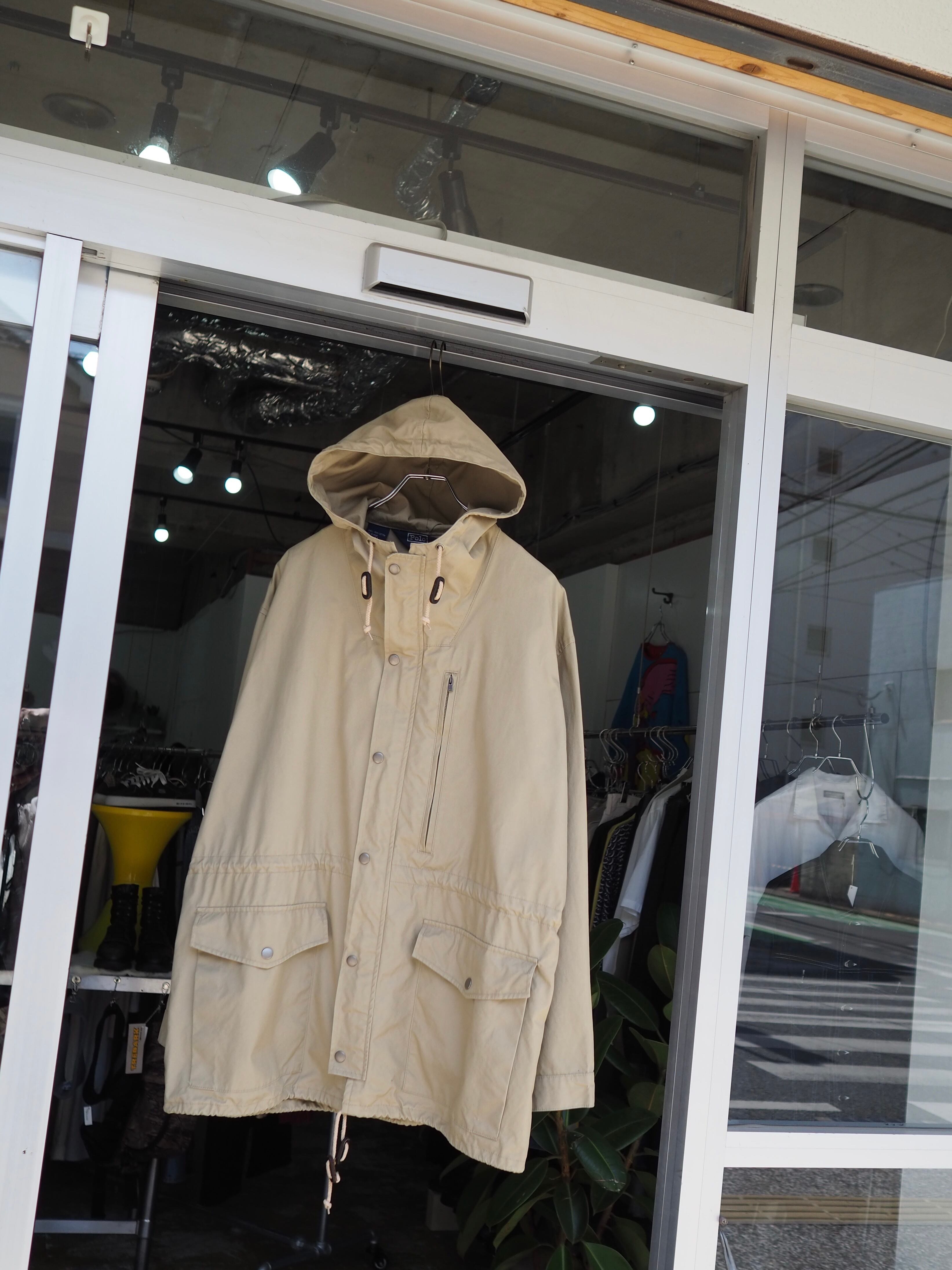 高さのある襟元とウエストにはドローコード、縦に着くジップの胸ポケ、フラップ付きの大きな腰のポケット、お尻まで隠れる着丈、ジップの上にはちゃんとスナップボタンで閉めれる前立て付き。