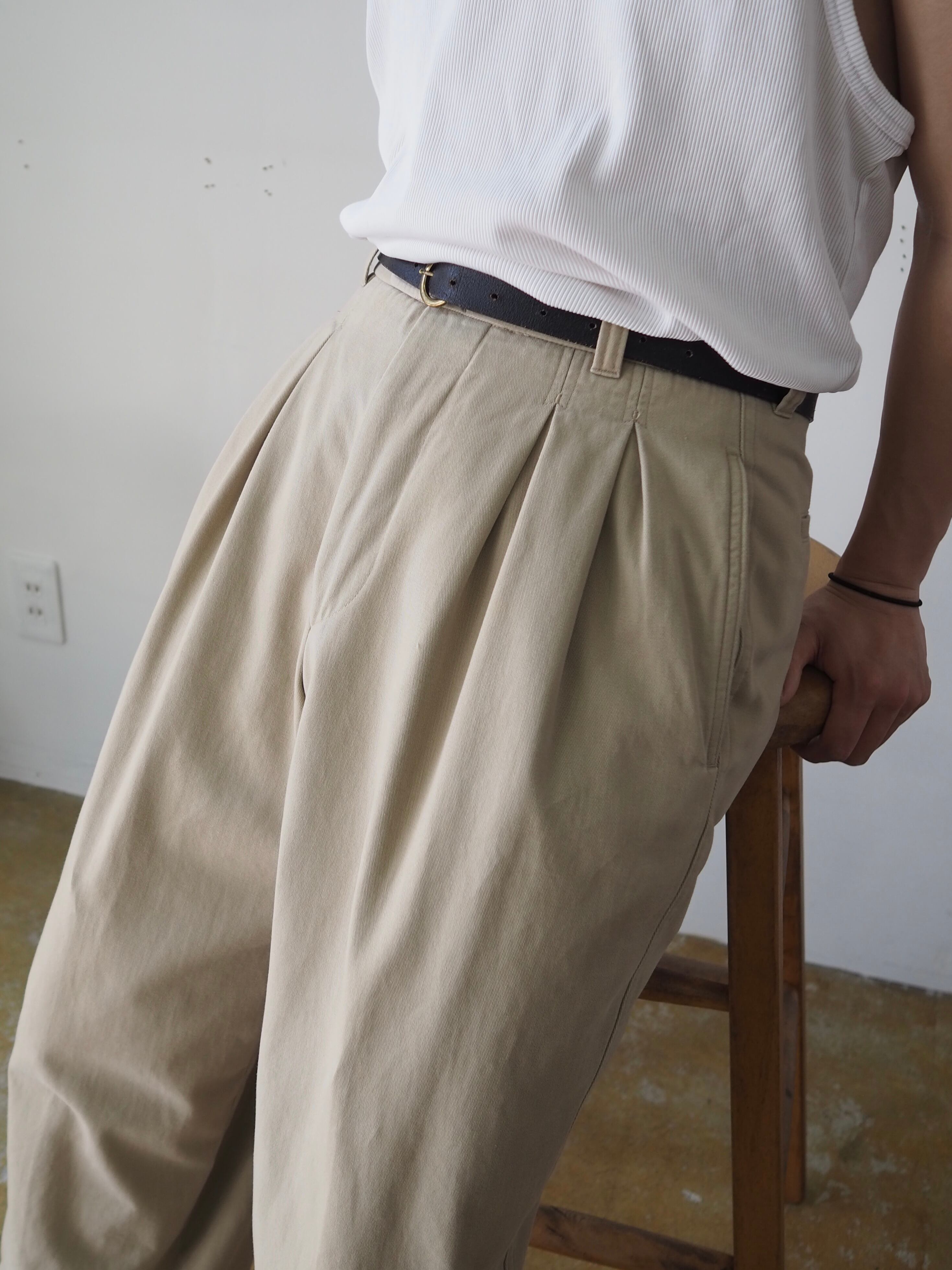 柔らかく上質なコットン地、美しいタック、そしてジッパーはOPTI。