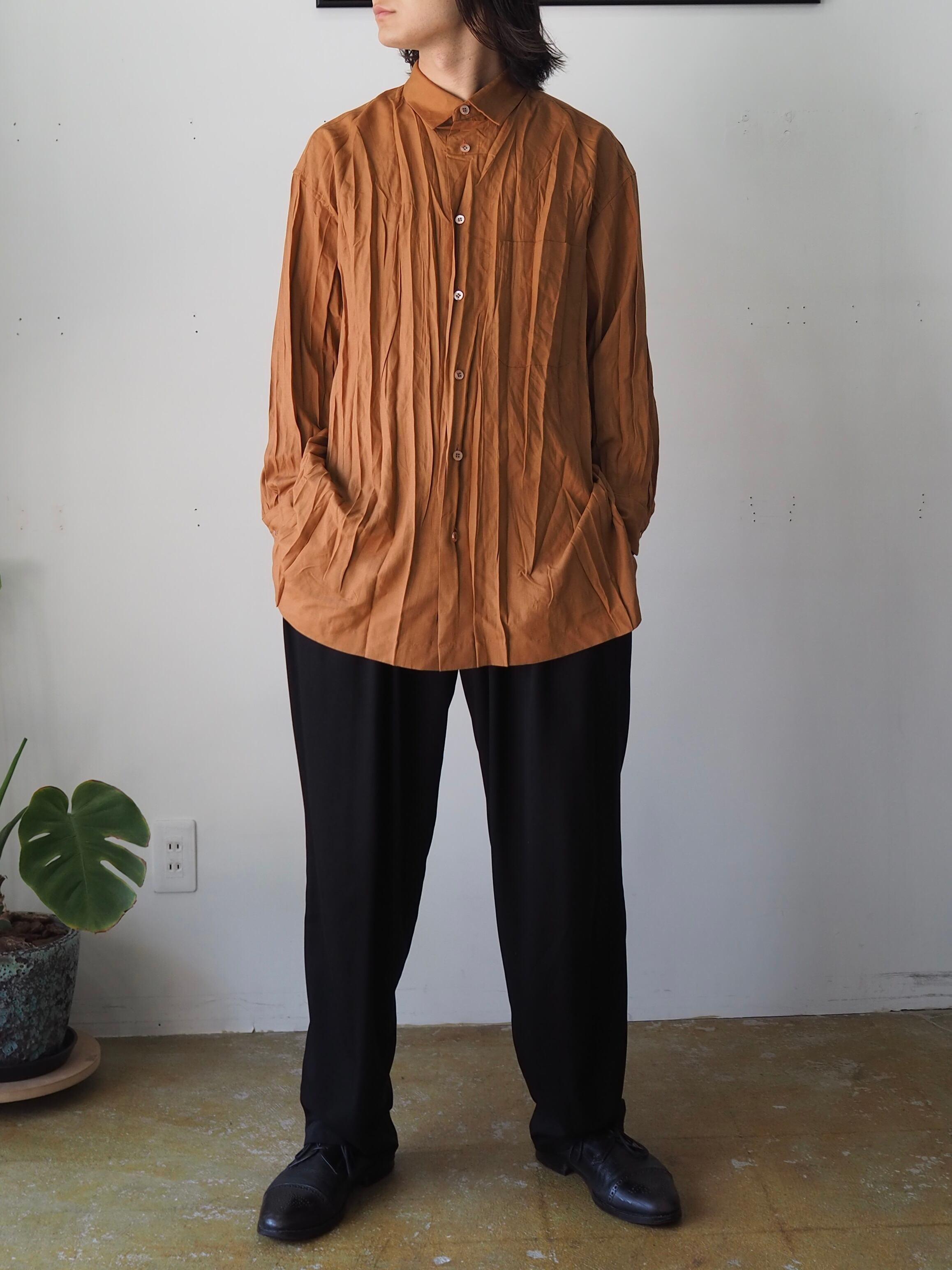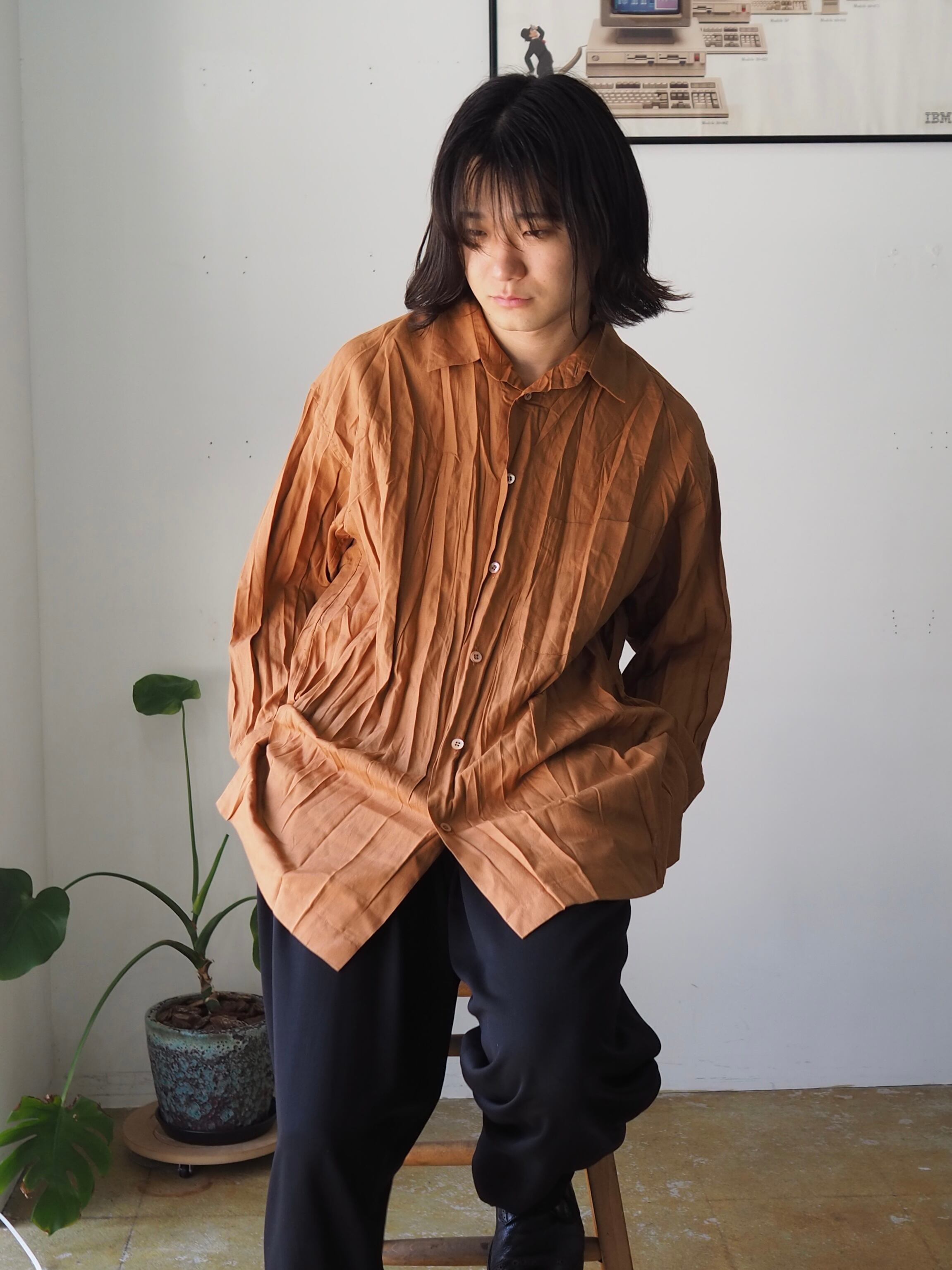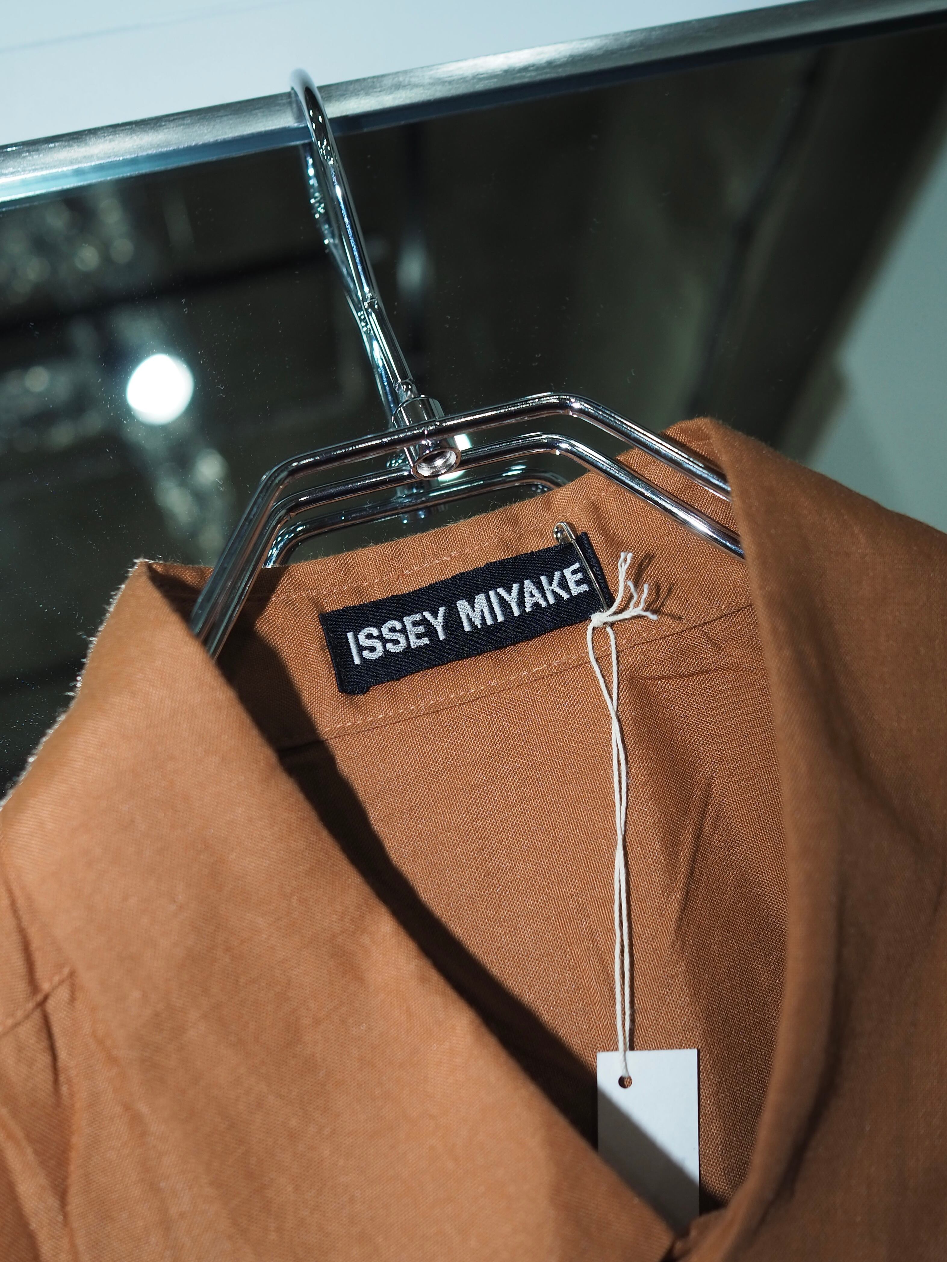 イッセイミヤケらしいシワ加工が施されたシャツ。