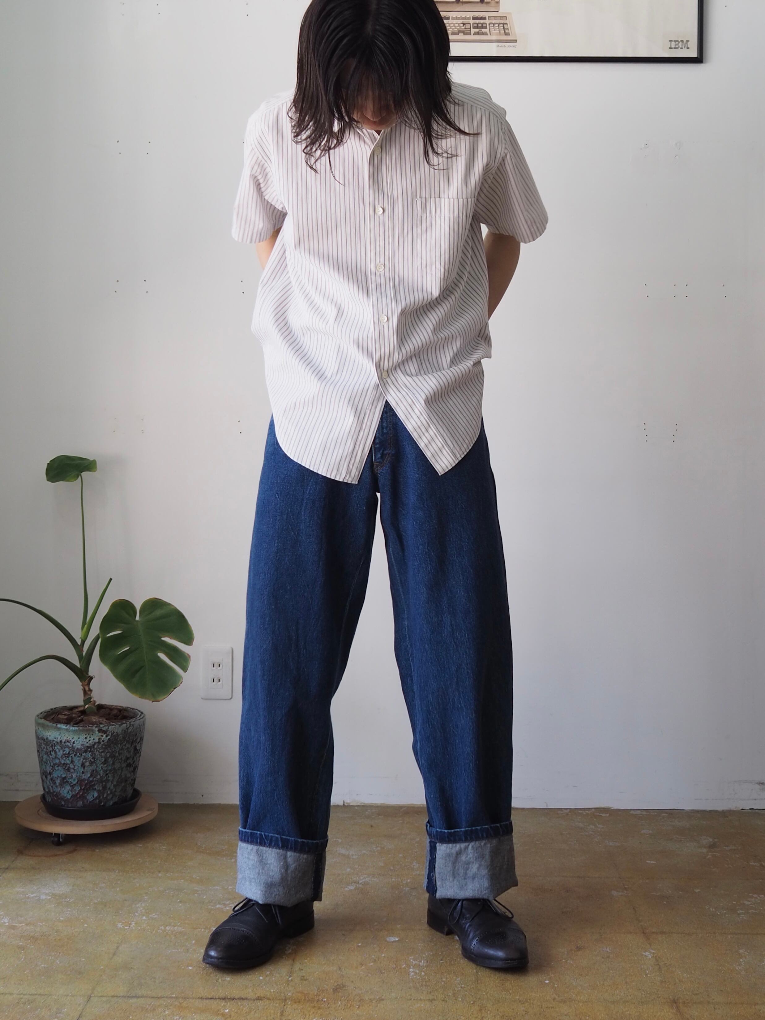 5ポケットのプレーンなジーンズですが、よく見る田中オムのデニムと比べて少し太めなバギーシルエット。