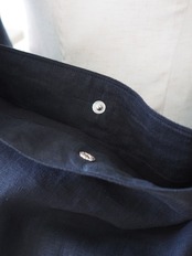 厚みのある平織りのブラックリネン生地で裏地もちゃんと付けてます。