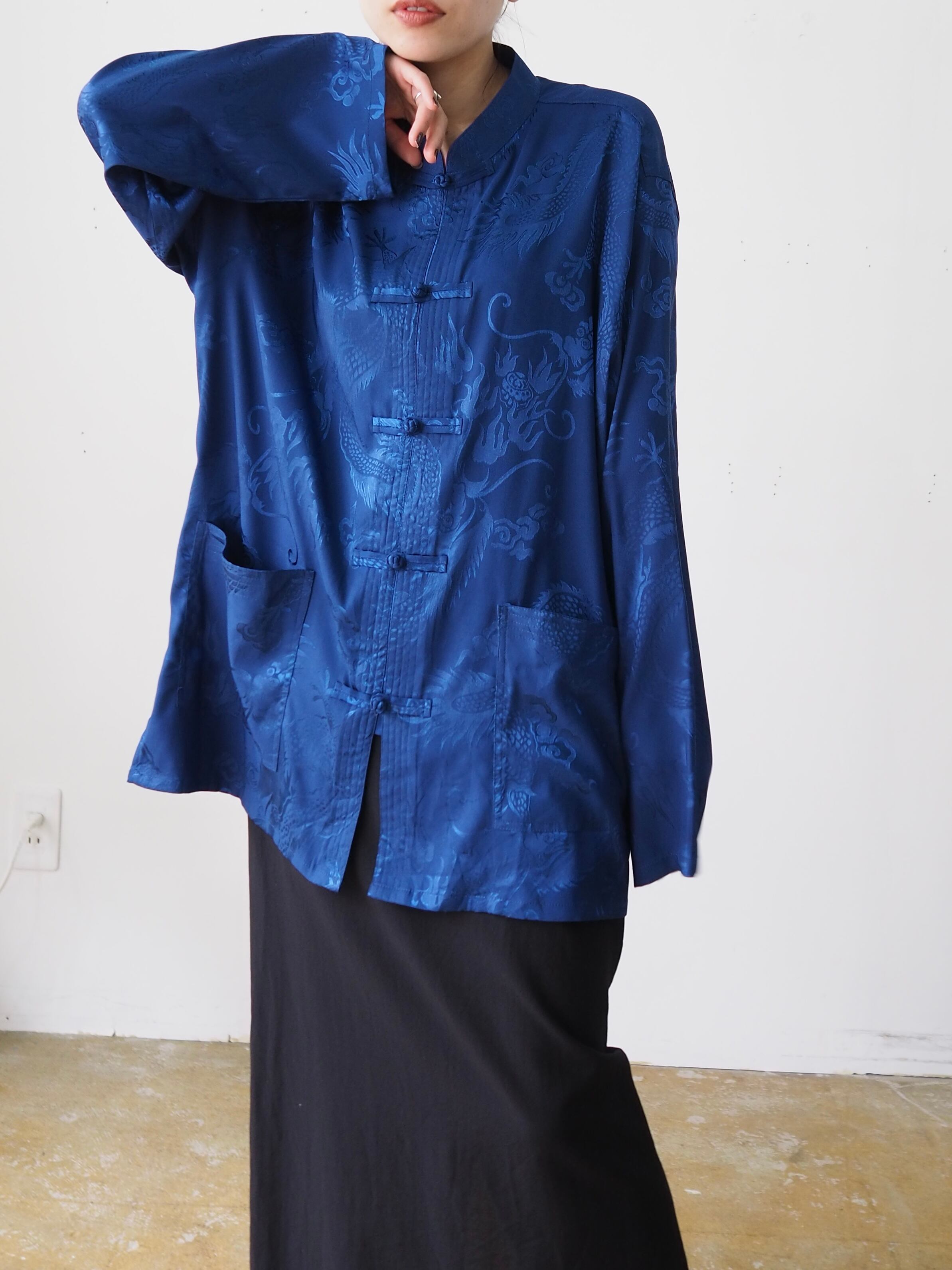 やりすぎ感の無い、ワンカラーのチャイナシャツ。