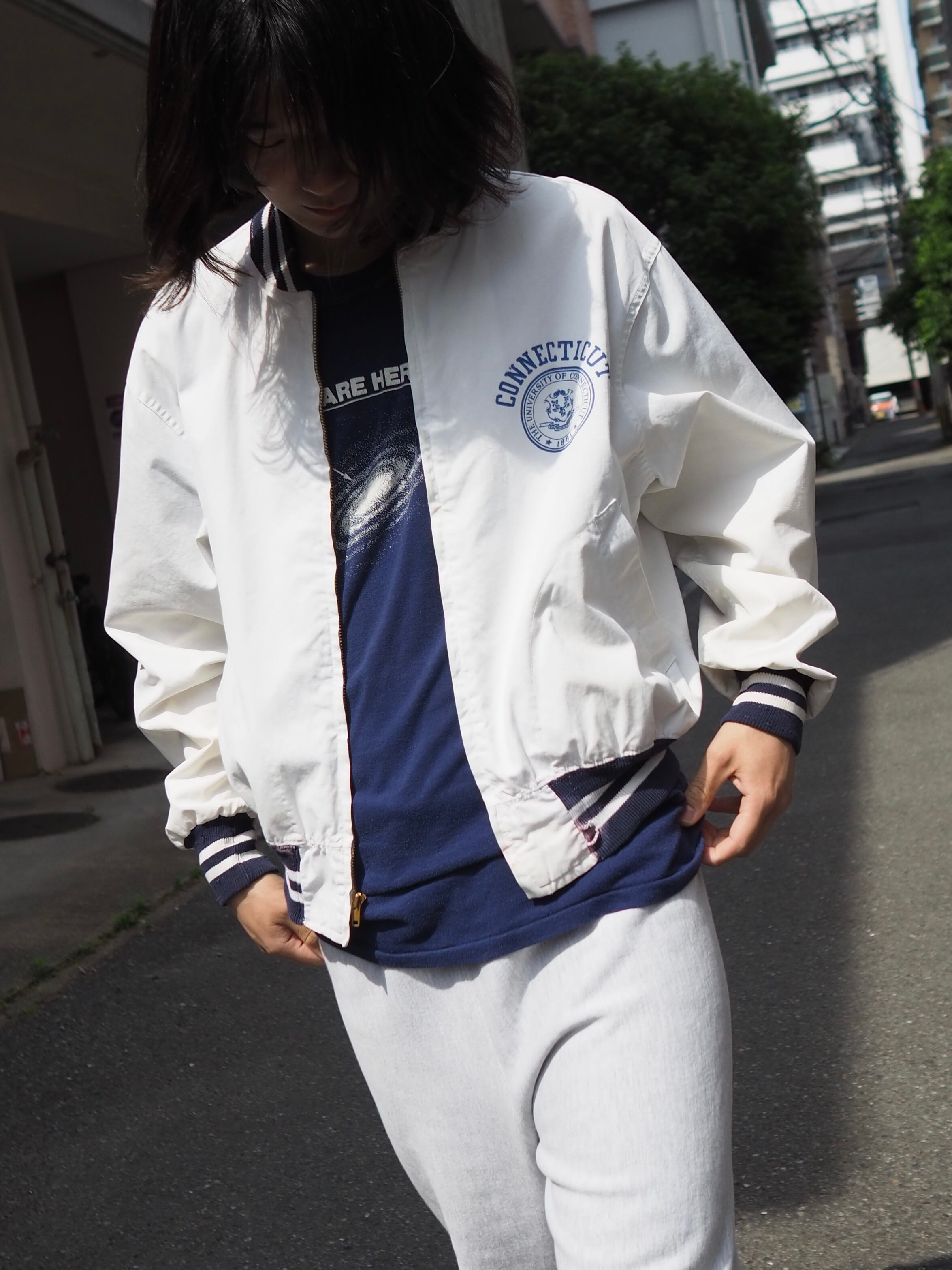 コネチカット大学のカレッジプリントが入る王道ブルゾン型のジャケット。