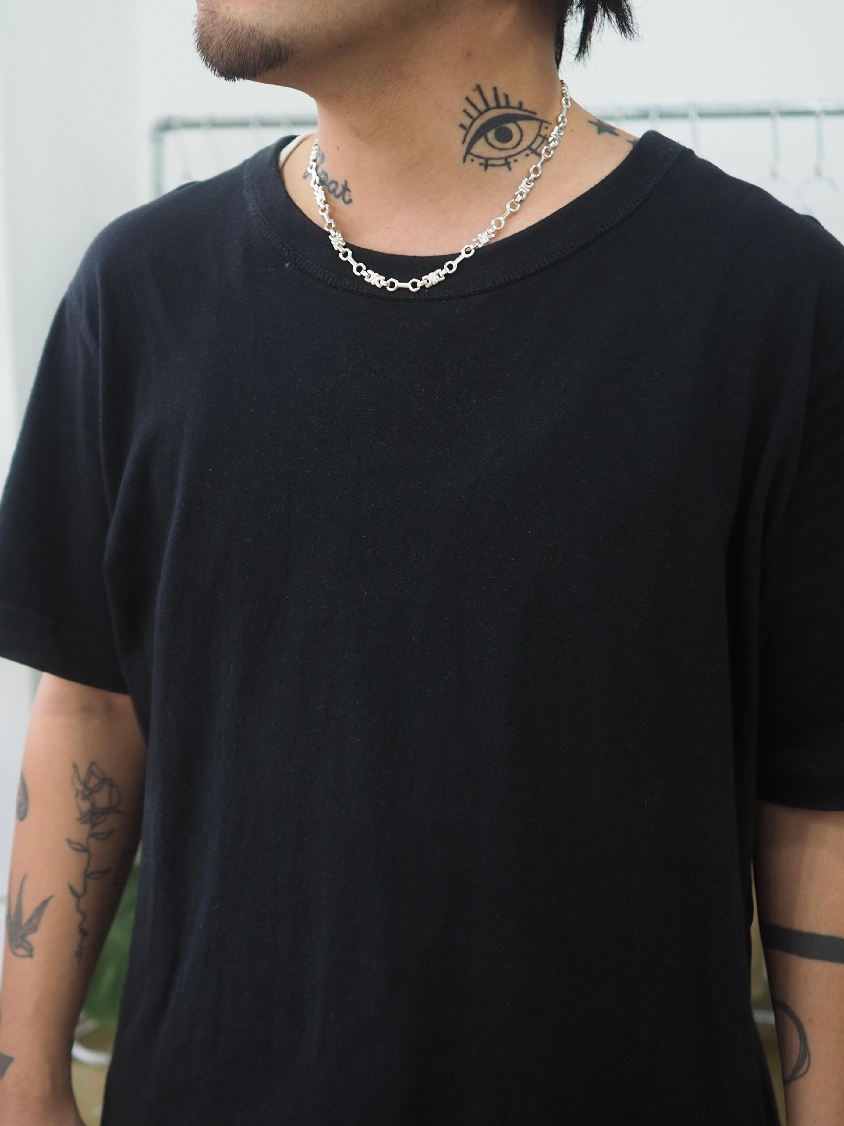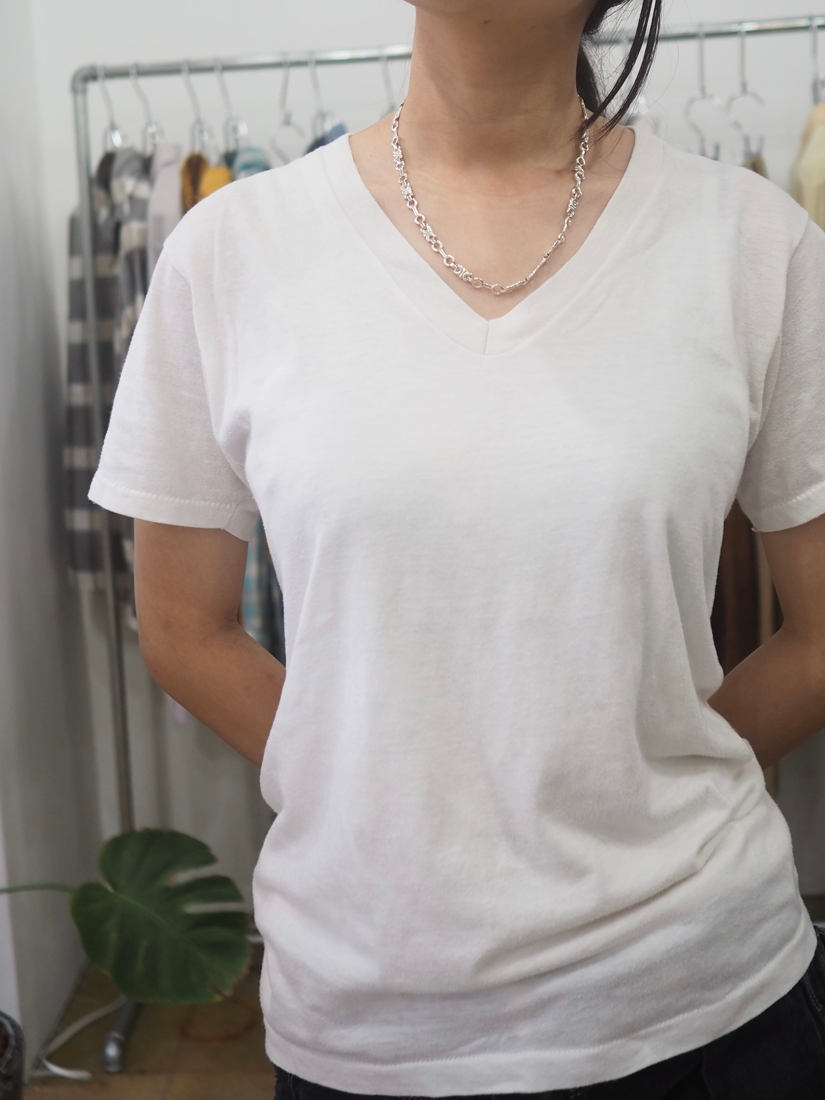 程よく長さがあるのでクルーネックに隠れる事なく綺麗に見えます。