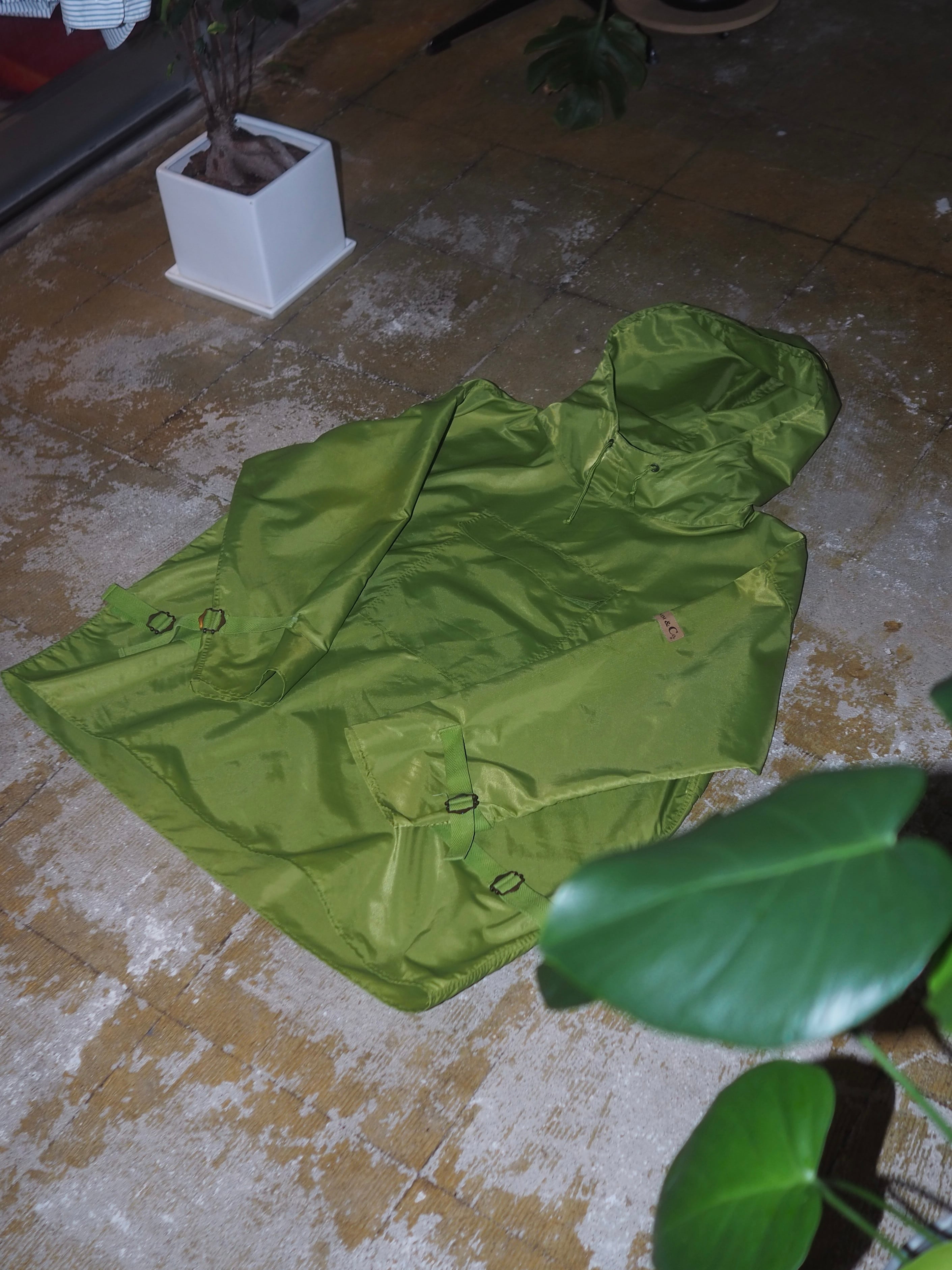 ミリタリーをサンプリングしたデザインで生地は艶のあるタフなナイロン(裏地無し)。