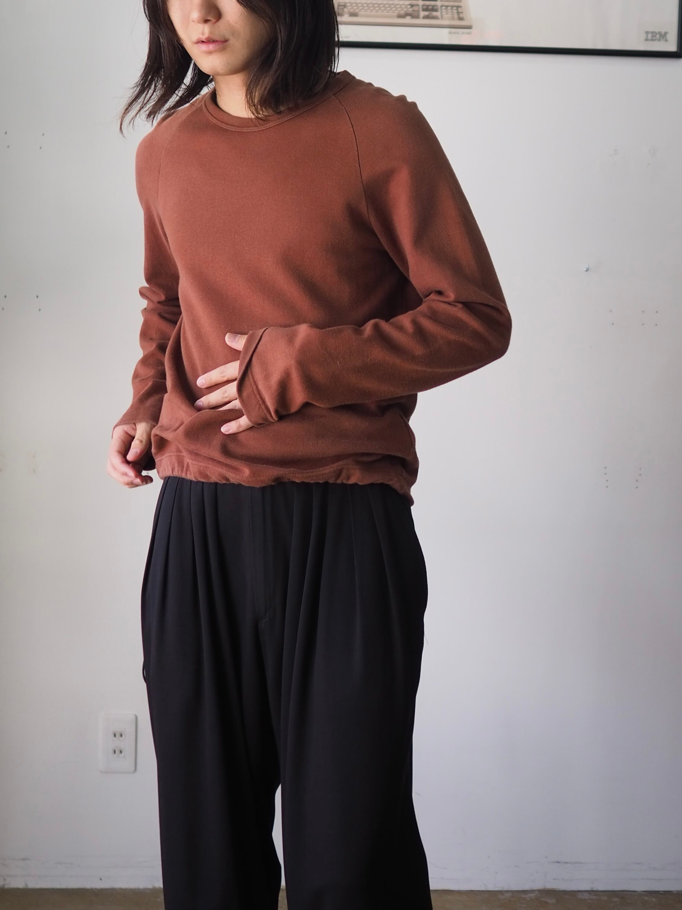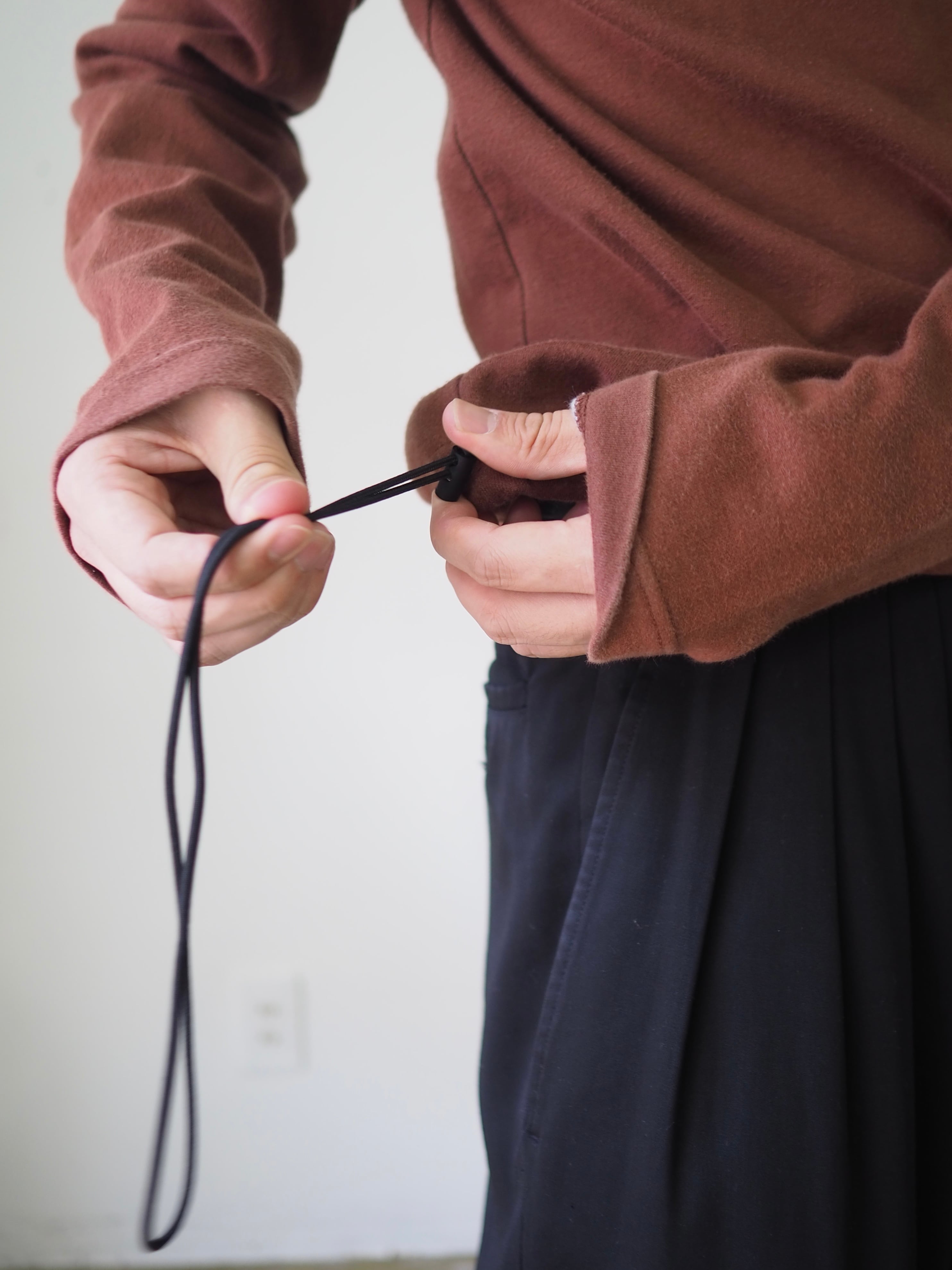 なんてことないカットソーに見えますが、裾にドローコードが付いているのが特徴的。