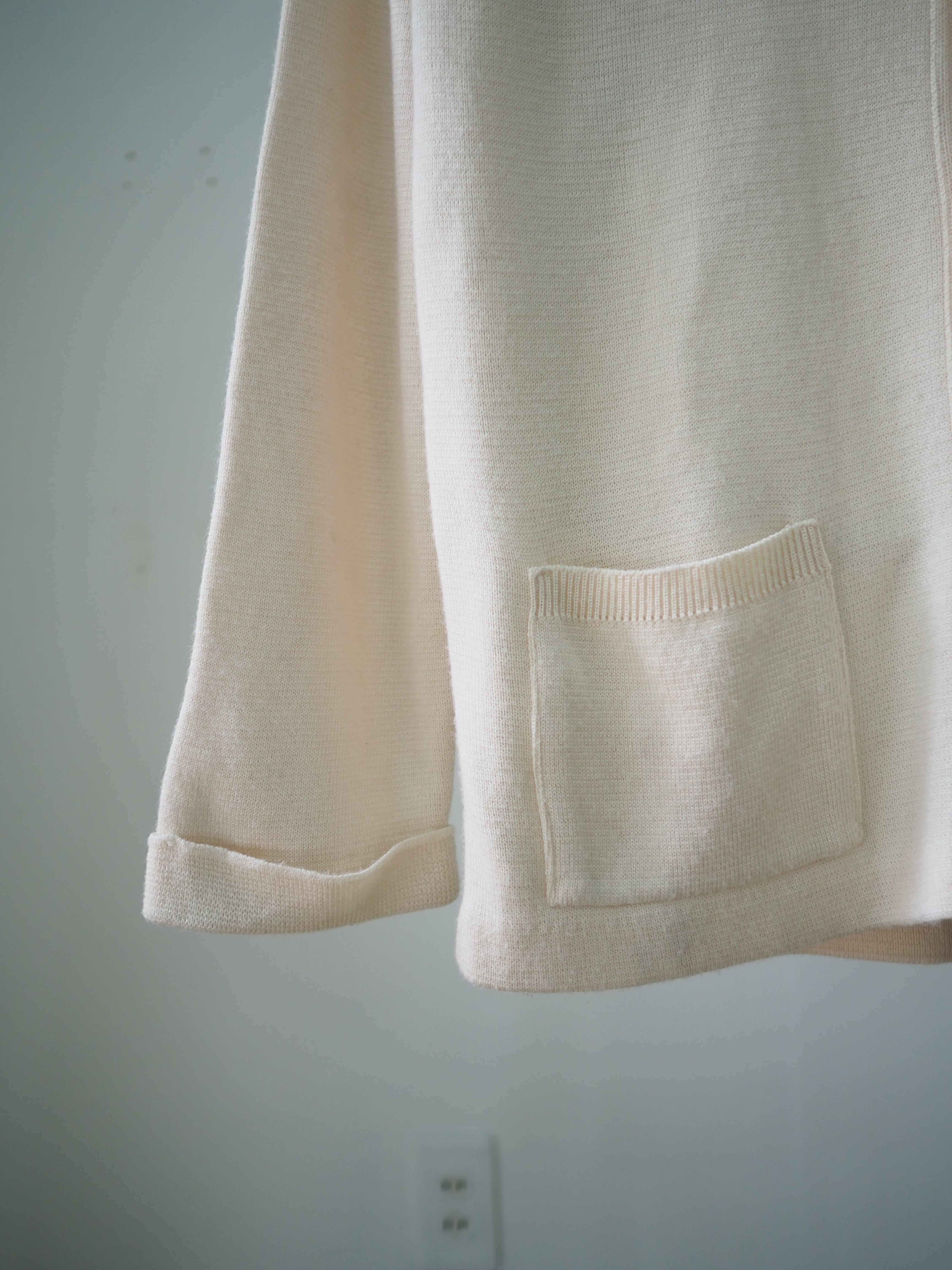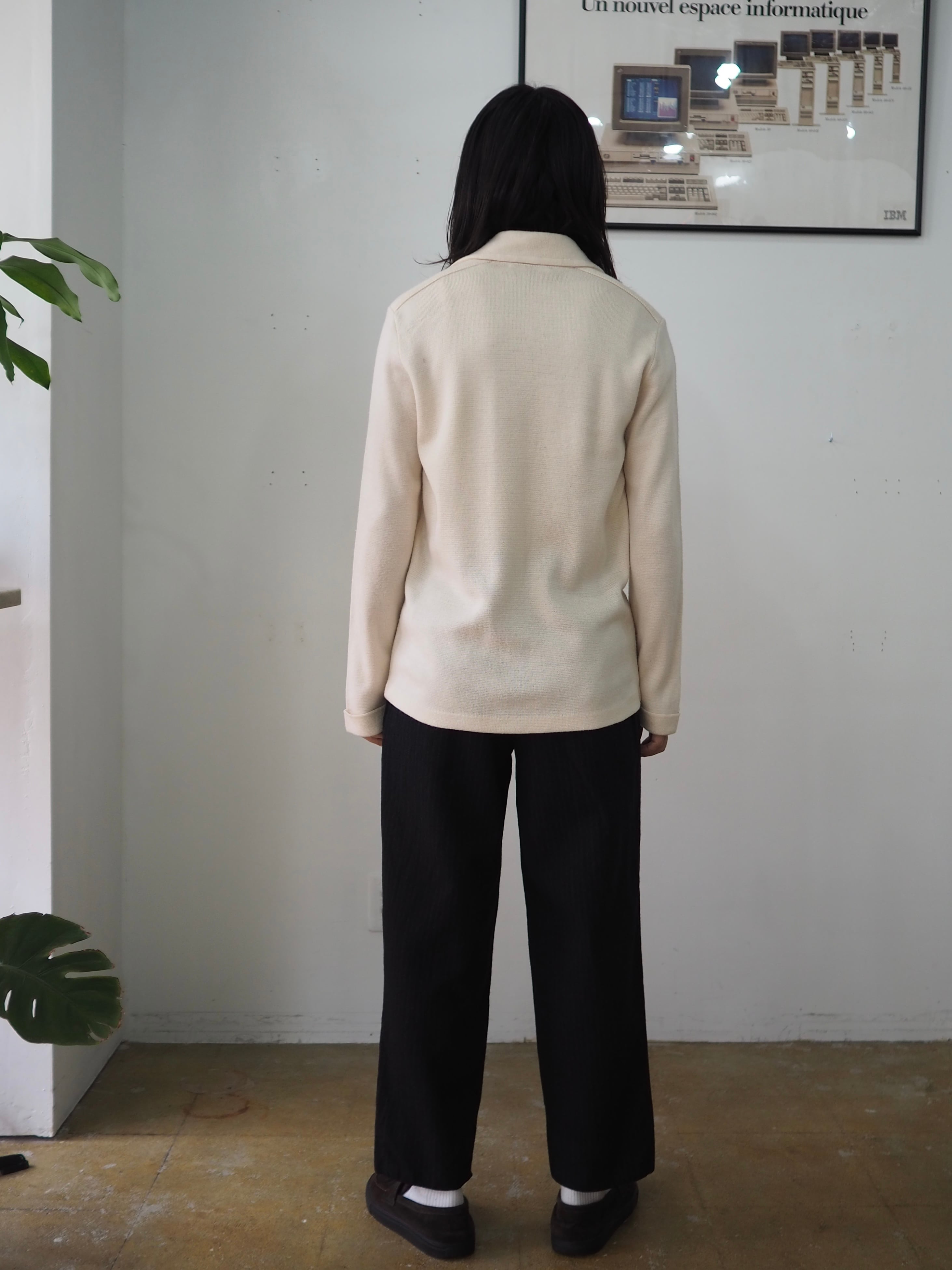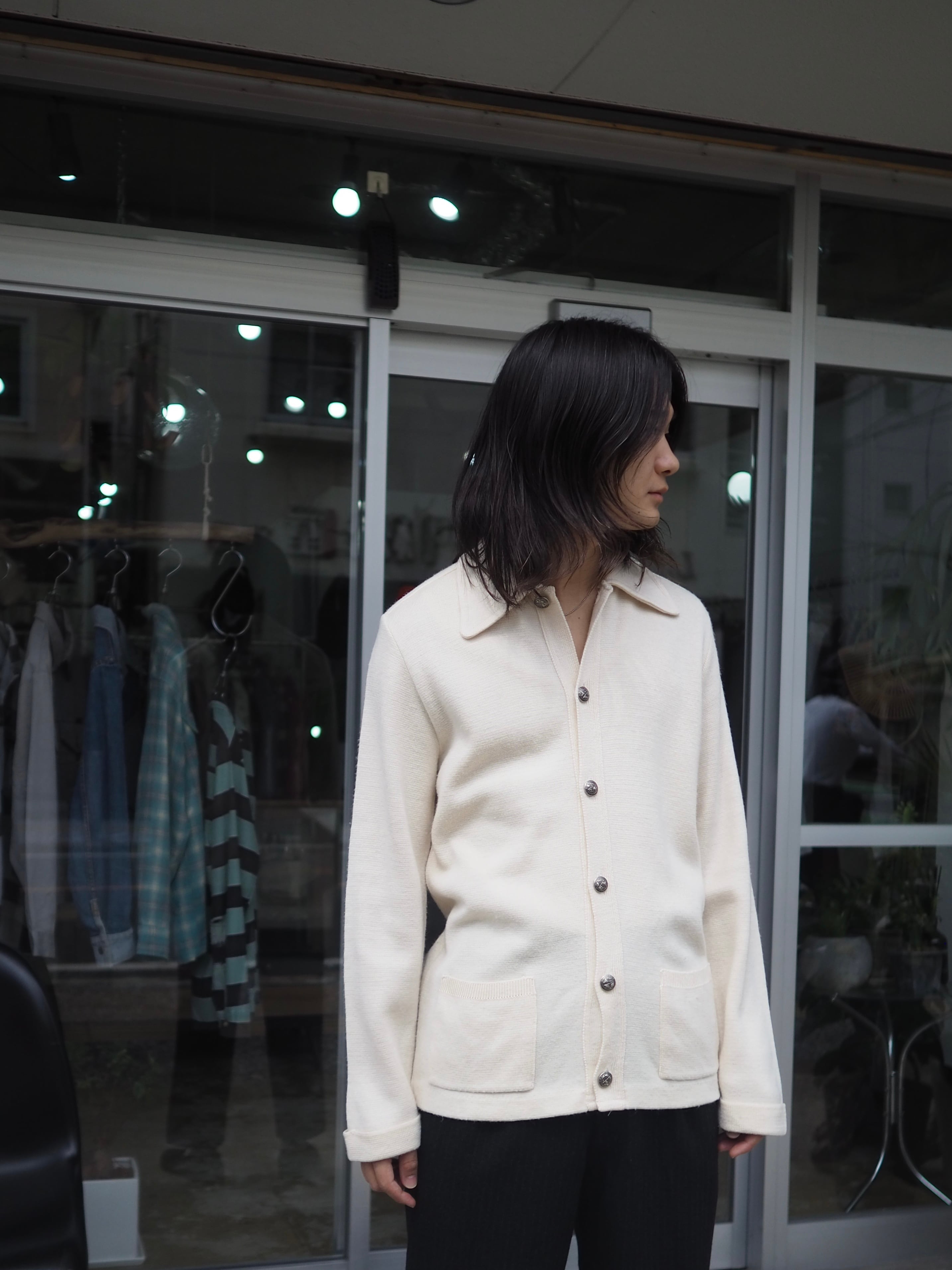 ナチュラルなアイボリーのカラーとプレーンなデザインは古いニットならではのレトロさを感じさせず、クリーンな印象です。