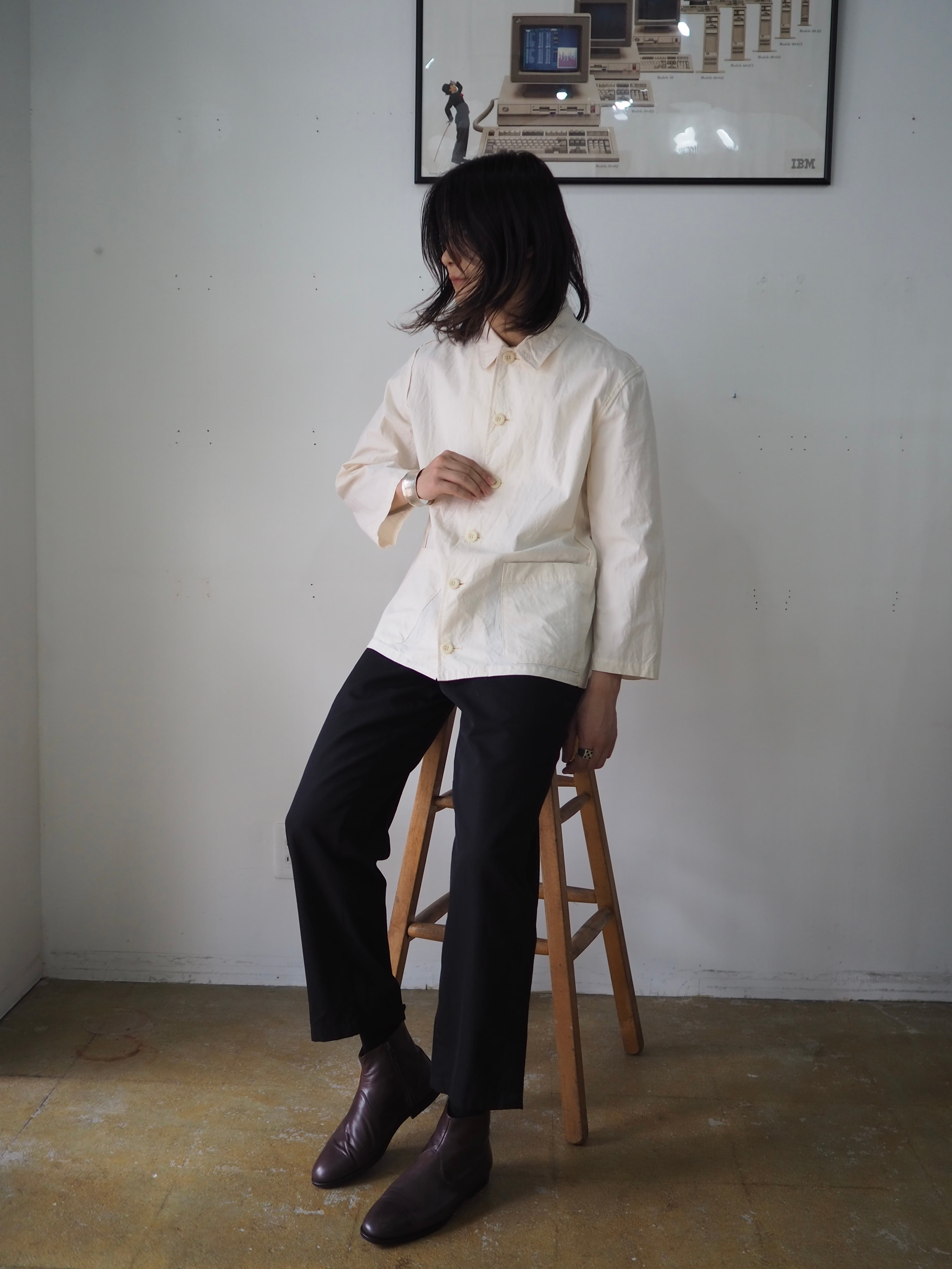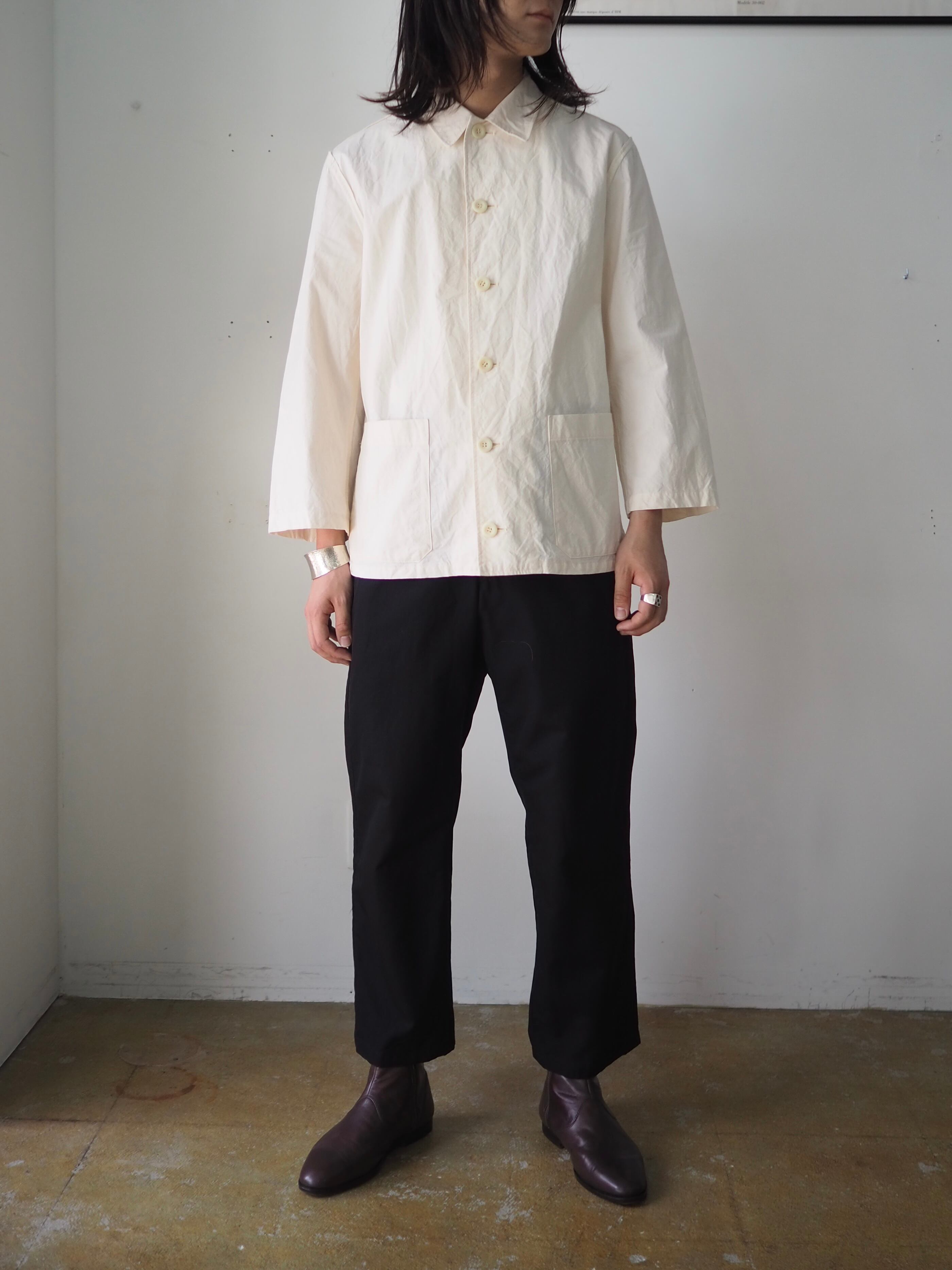 形はカバーオールですが、シャツに近い軽い着心地で今の時期にぴったり。