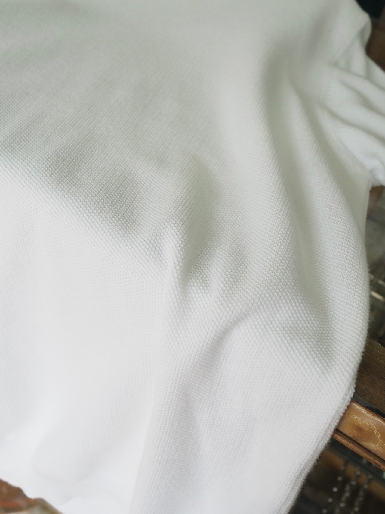 ゆったりとしたサイジングとスウェットの様なカジュアルな形、品のある真っ白なカラー。