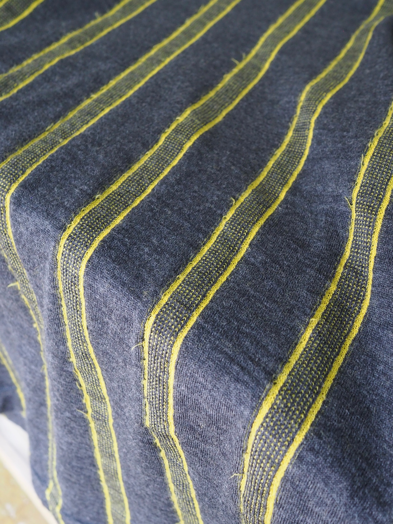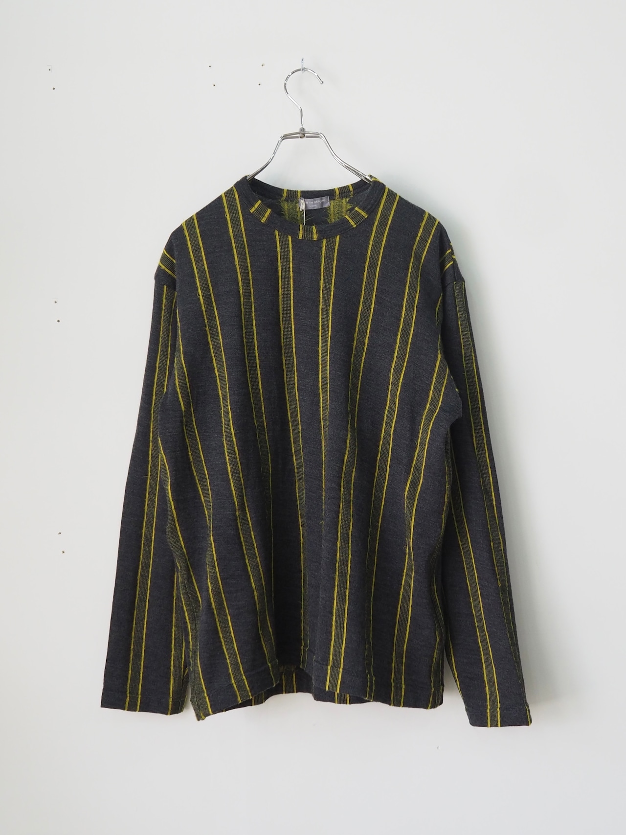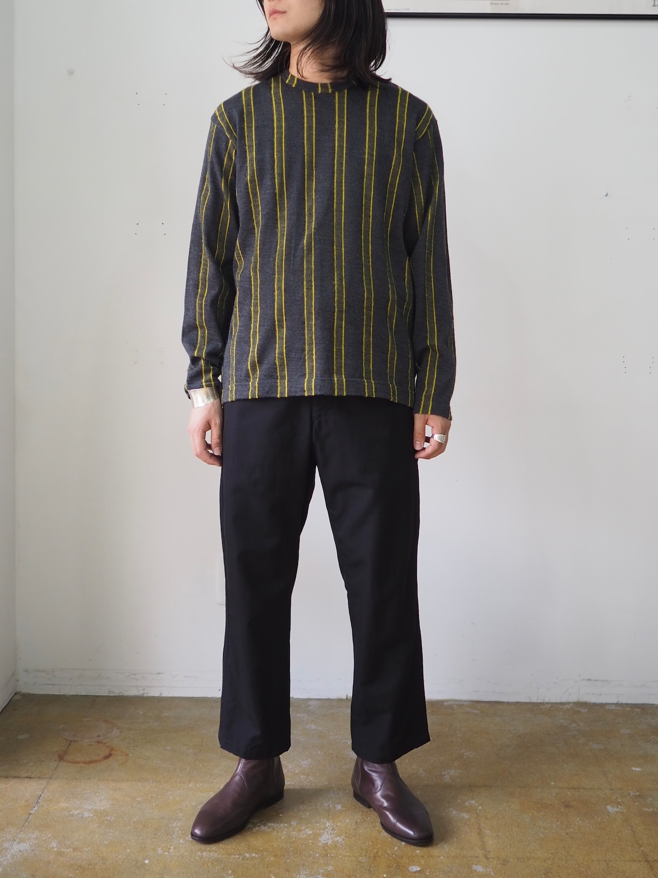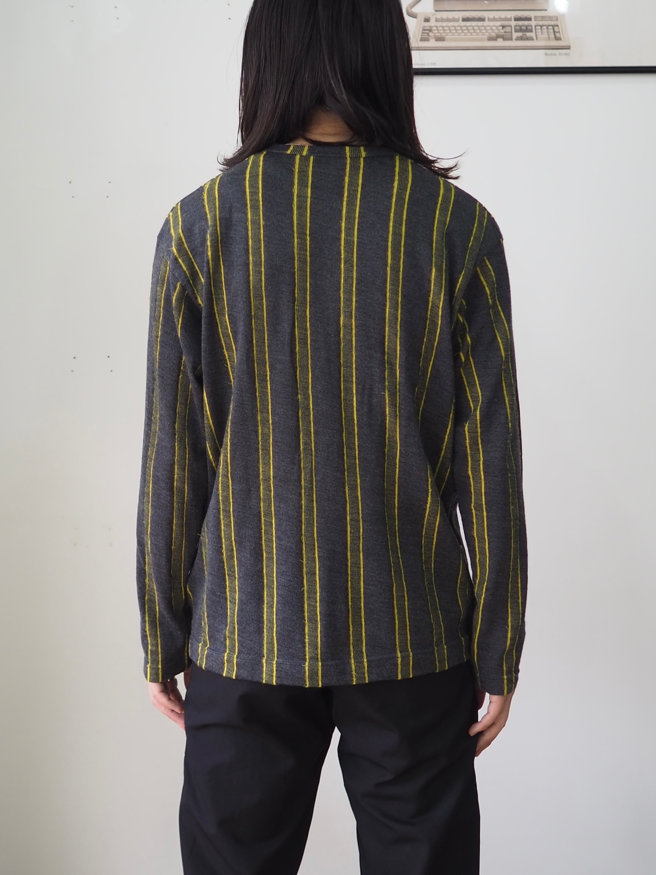 チャコールグレーをベースに映えるイエローのストライプ。