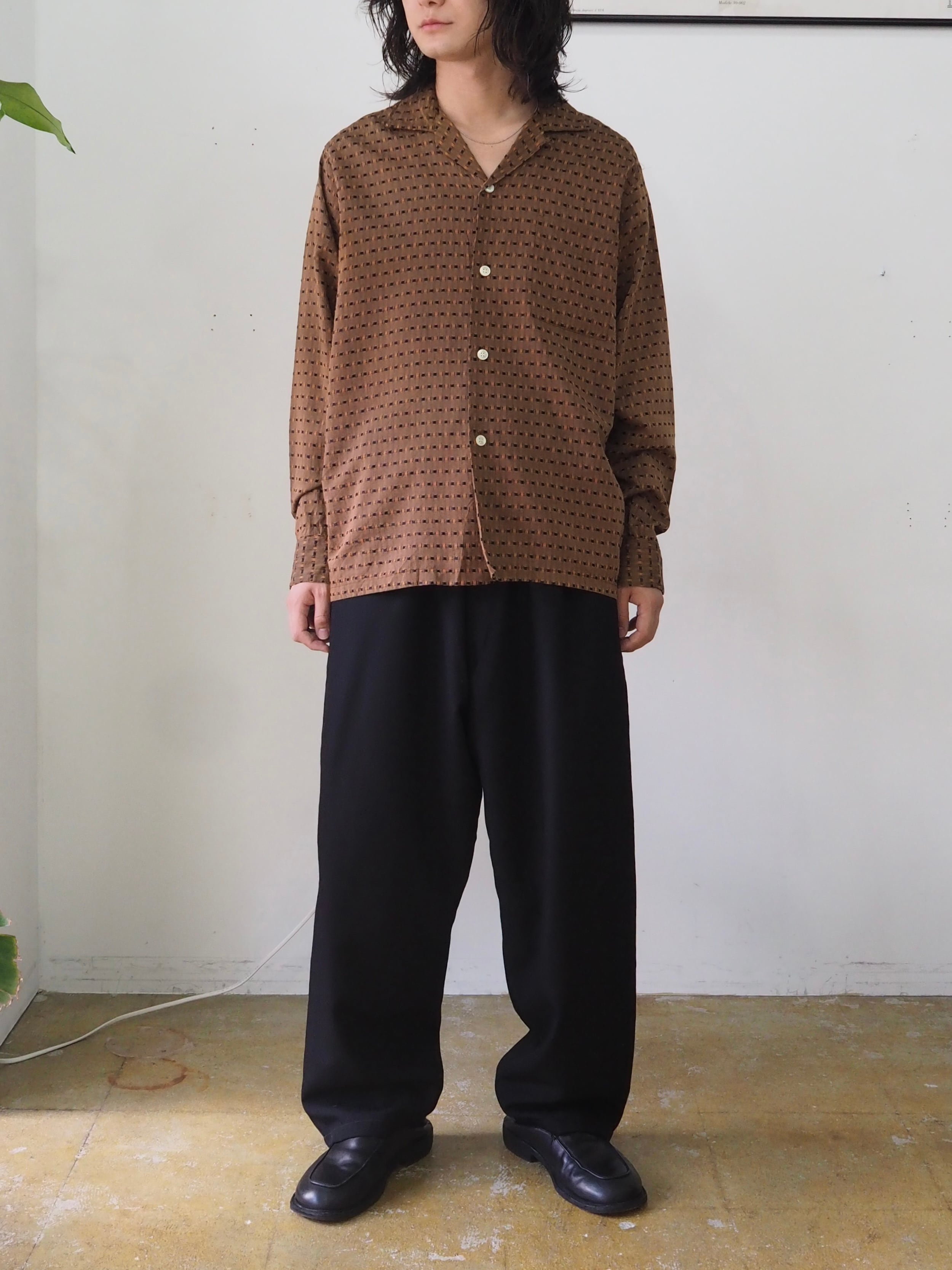 生地は手入れが楽なコットンでやや明るいブラウンベースに同系色&ブラックの織り柄。