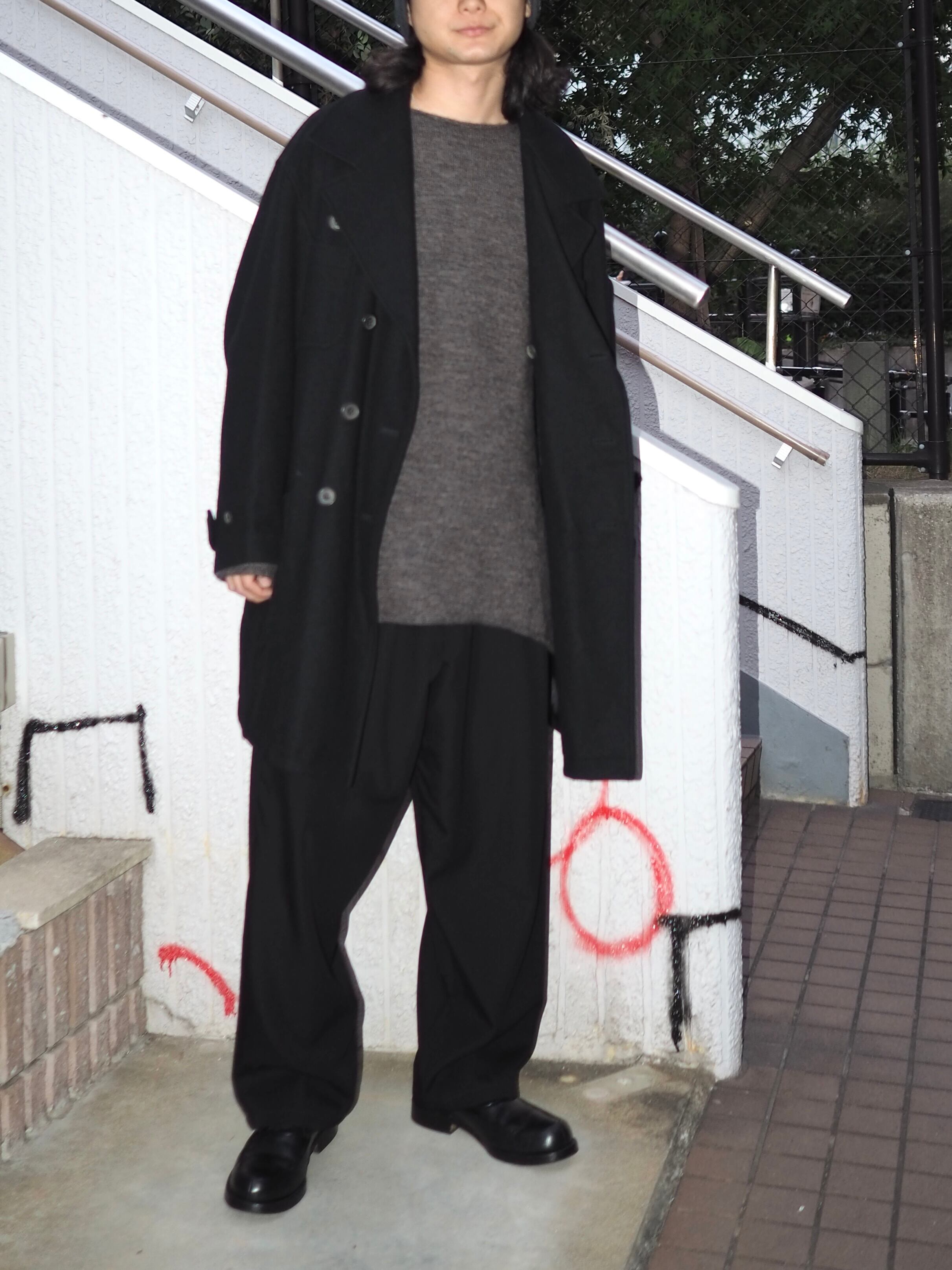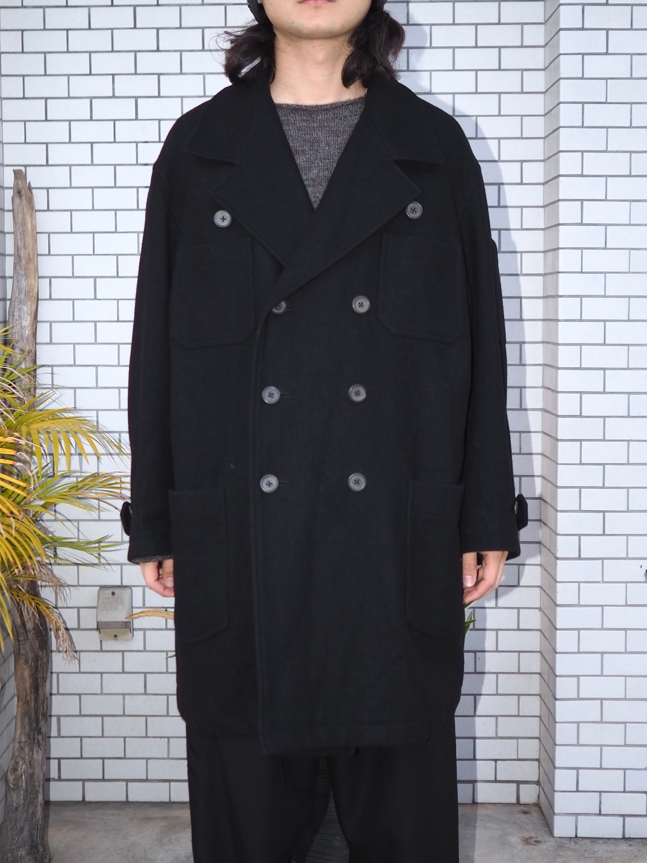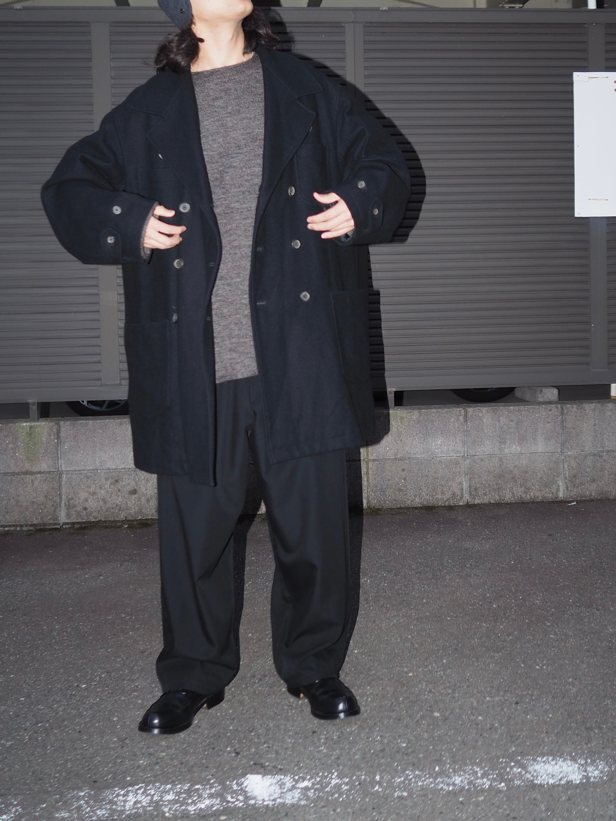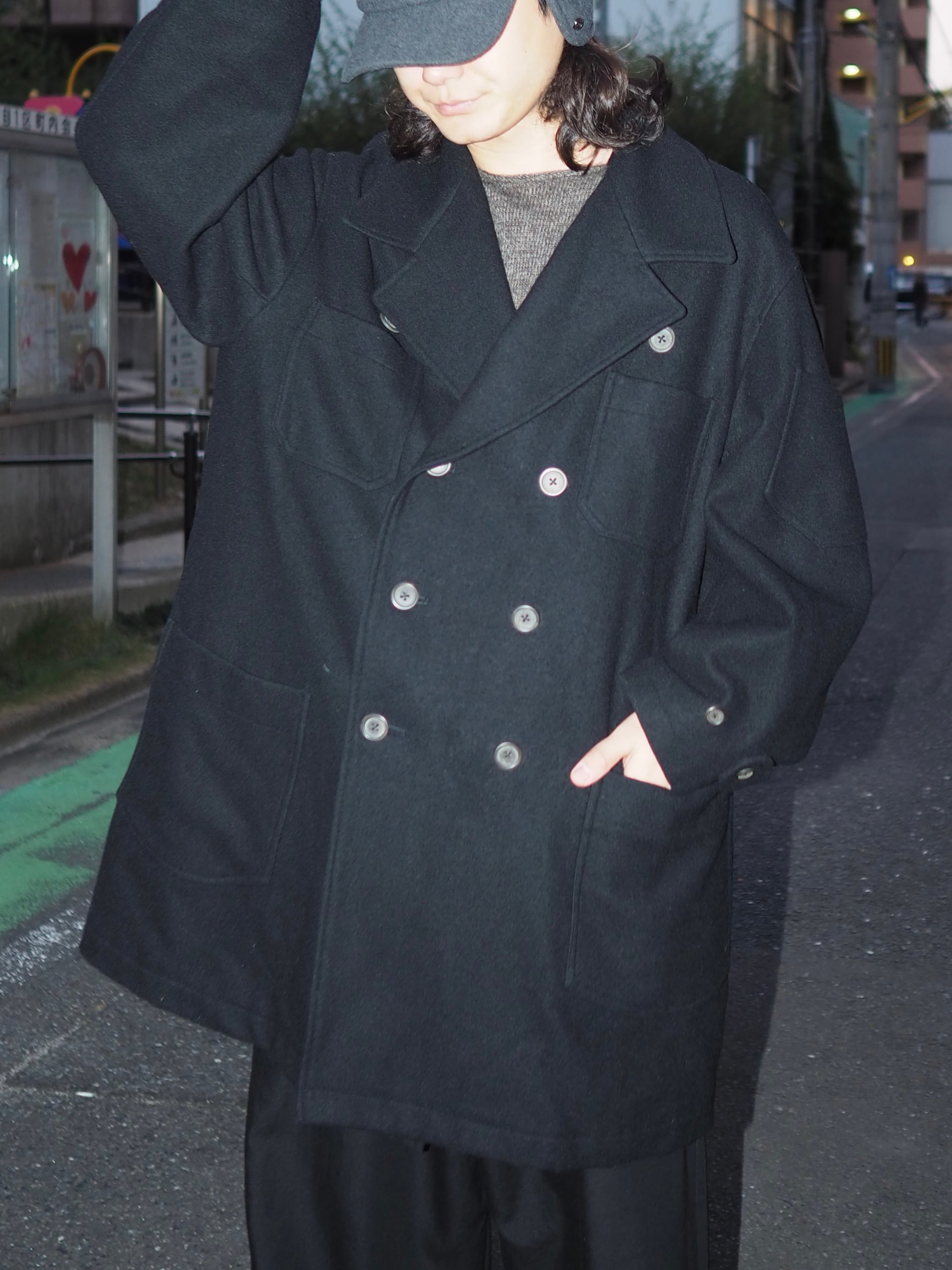 Pコートをゆるいサイジングで崩したようなダブル合わせのデザイン。