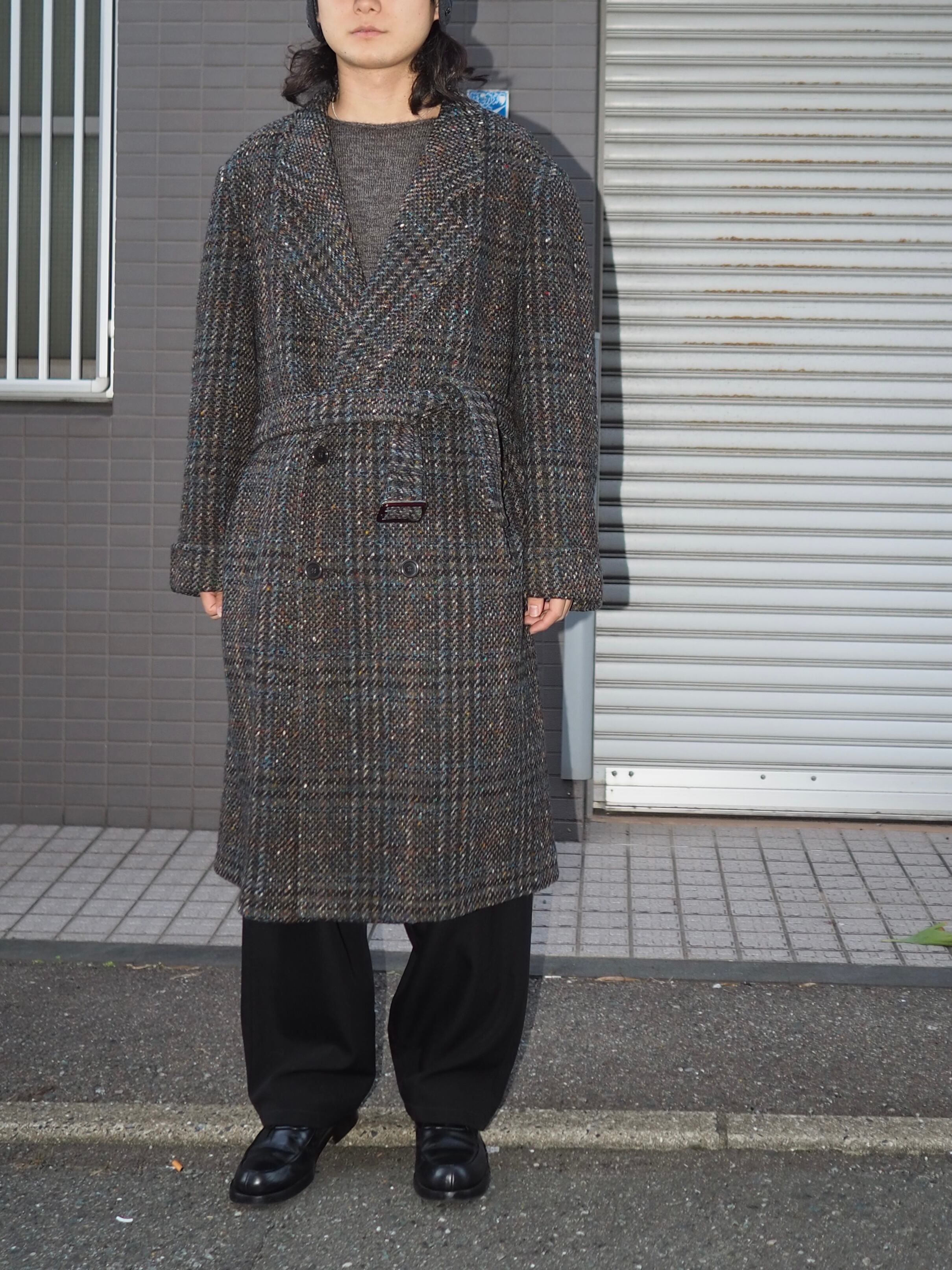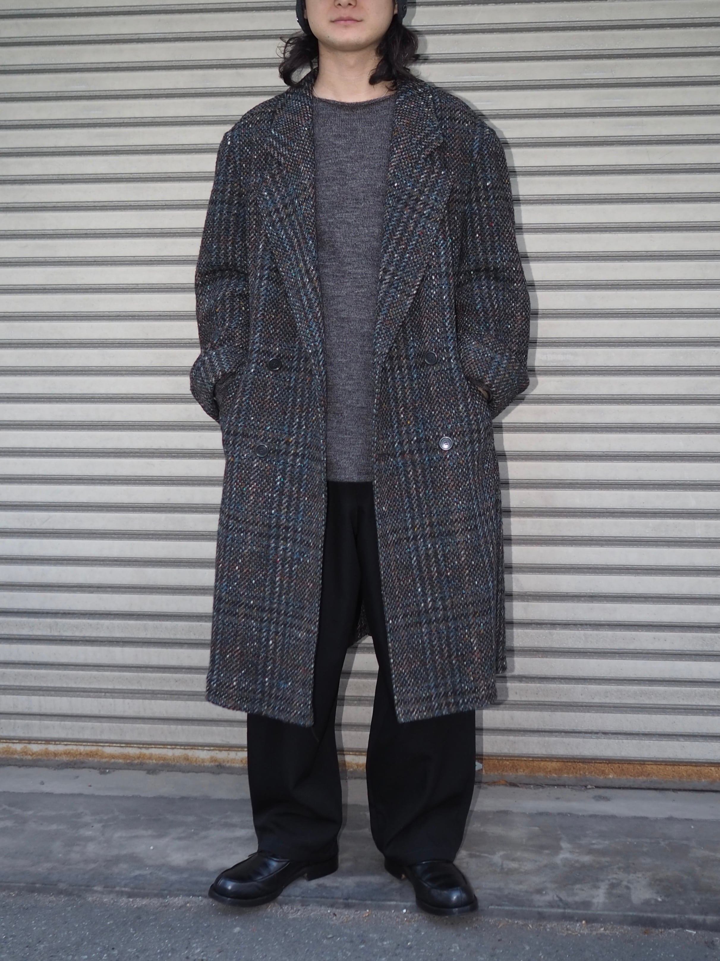 ヨーロッパでの買い付けでは基本的にシンプルなウール地やカシミヤのコートを重点的に集めたのでこちらが唯一のツイード地。