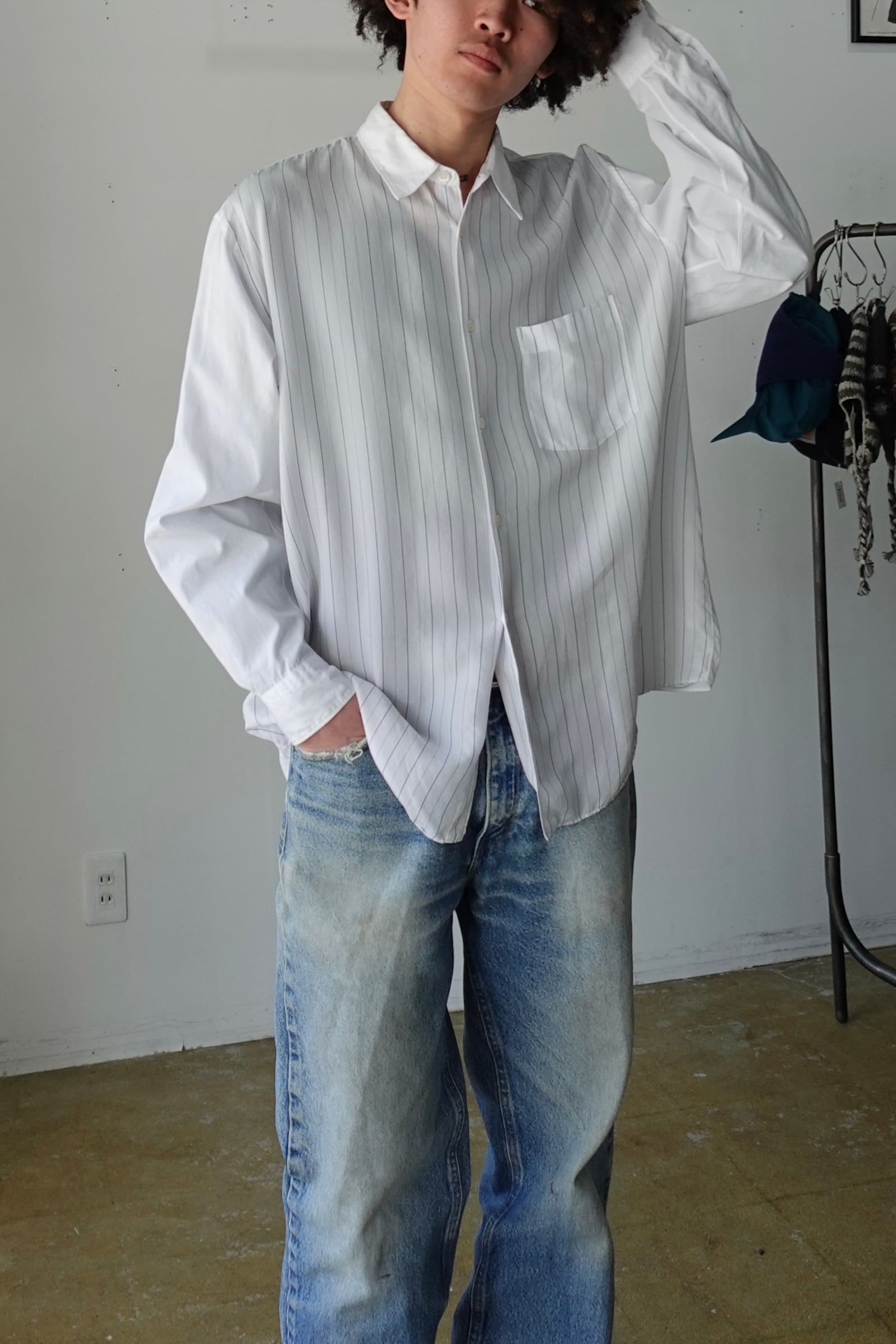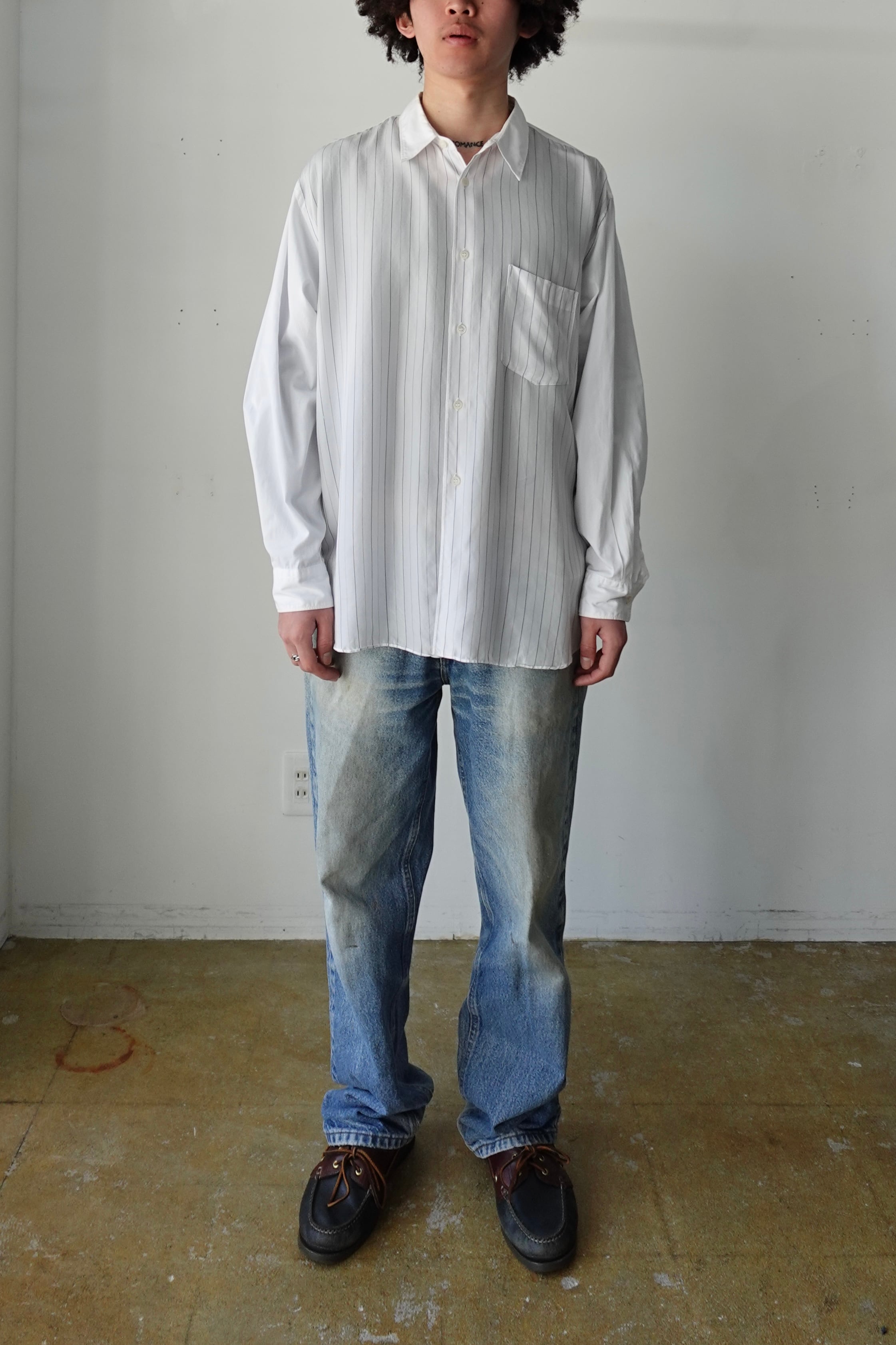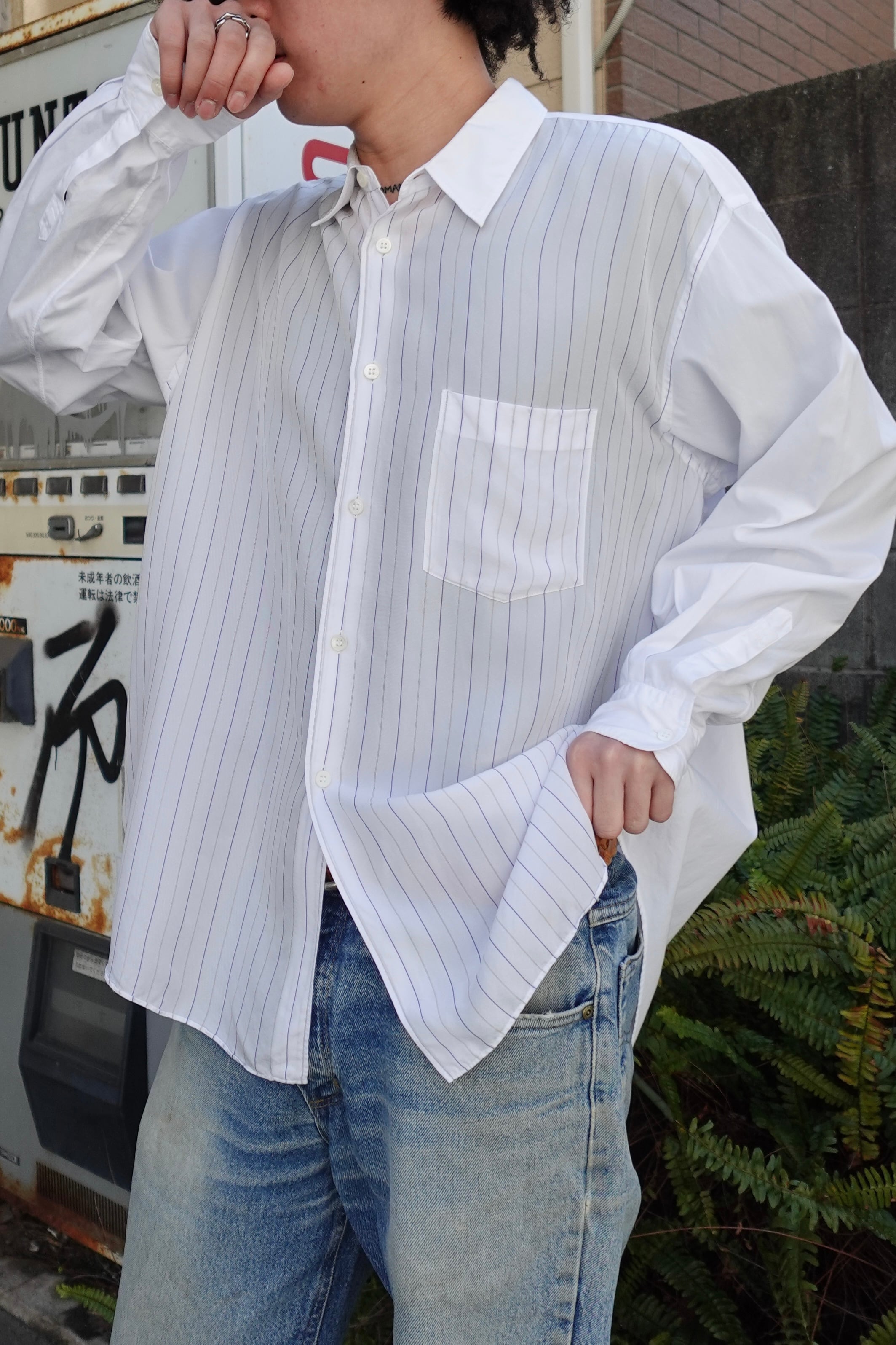 コットンブロードをベースに、前身頃のみストライプのレーヨン切替。