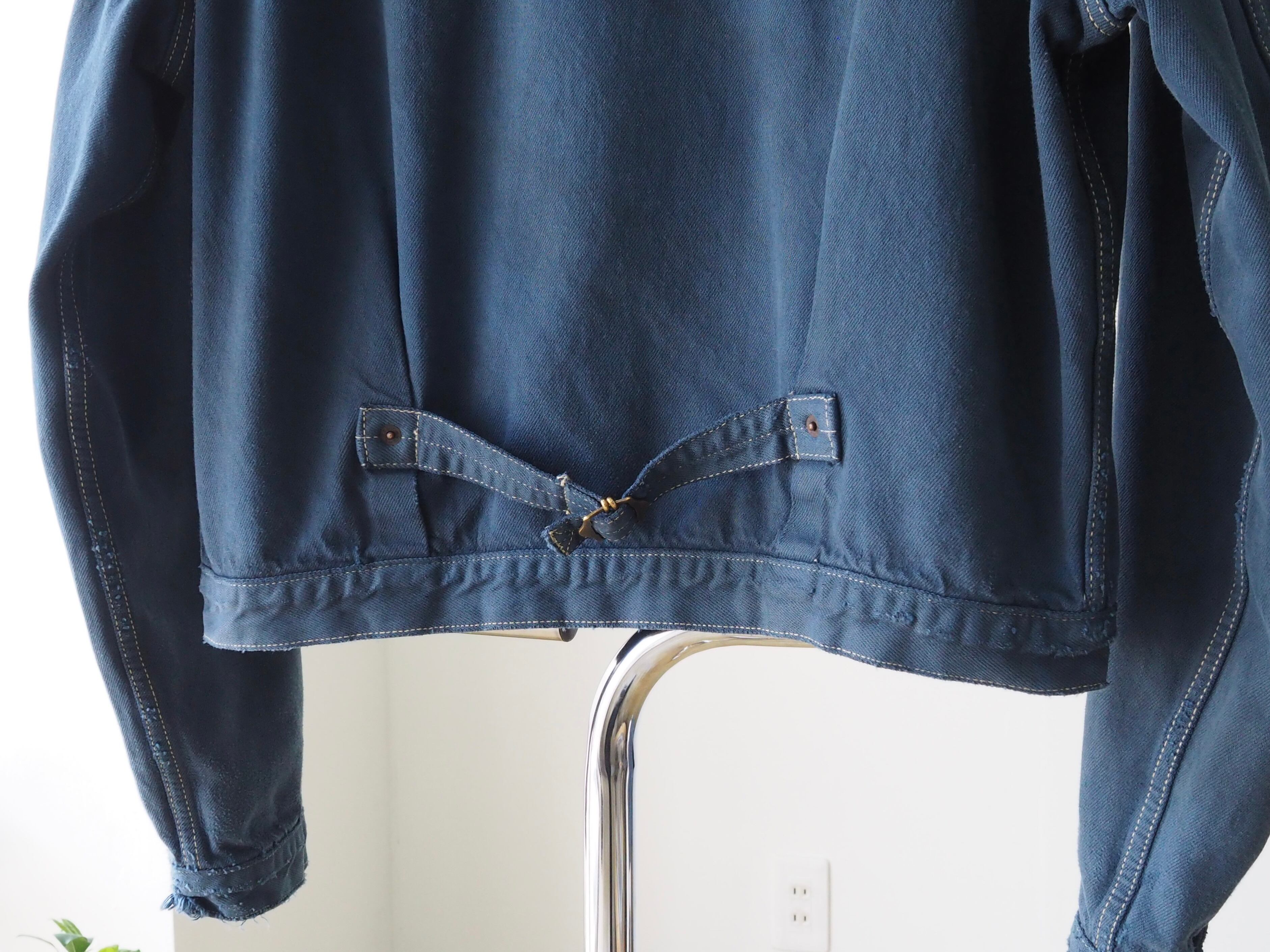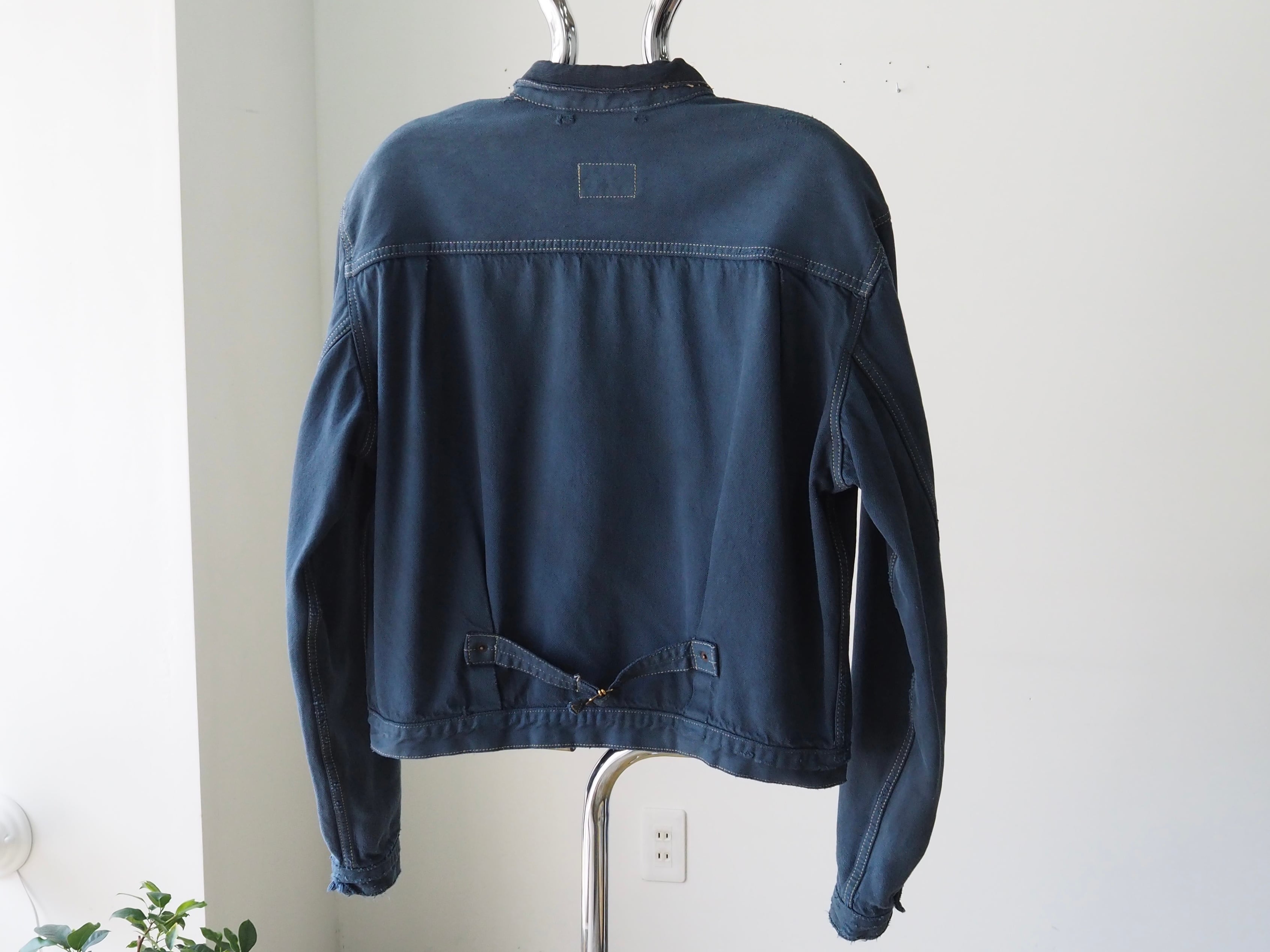 恐らく元々はアイスブルーだった個体ですがネイビーに後染めされており、襟のコーデュロイは前所有者による後付け。