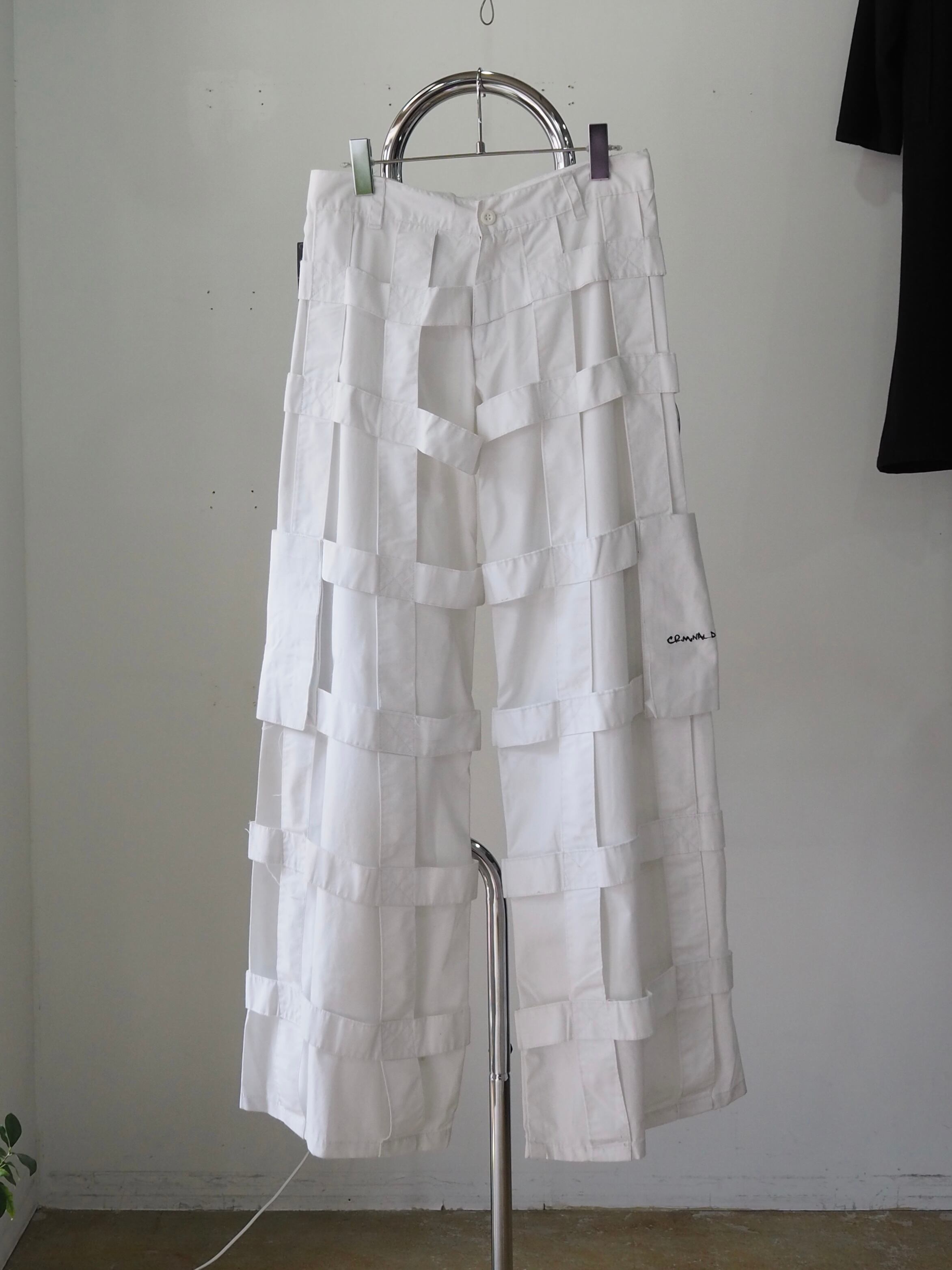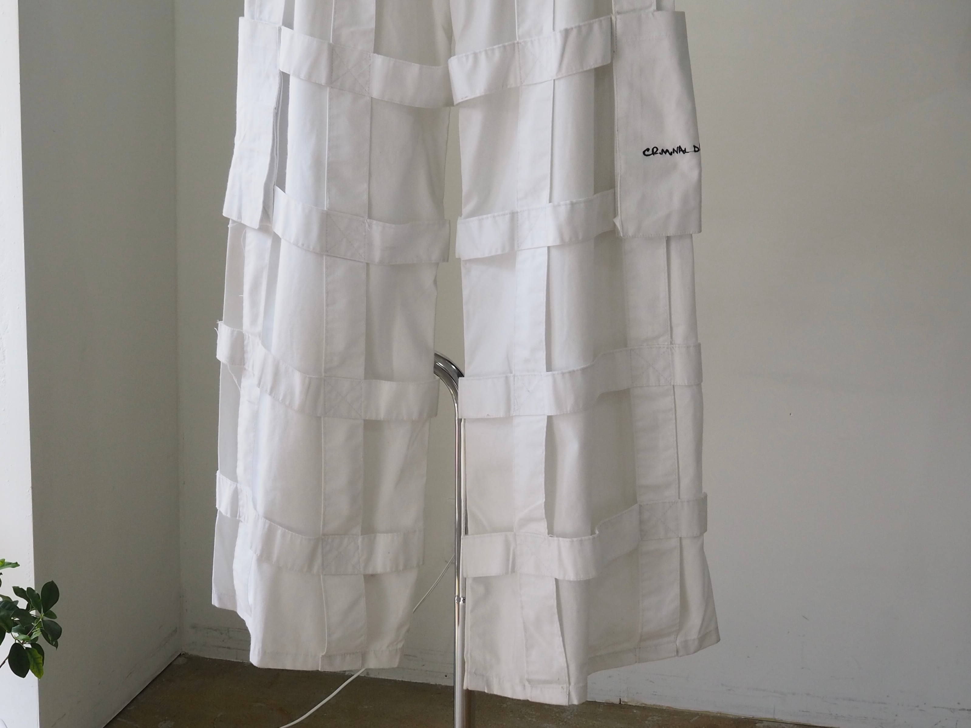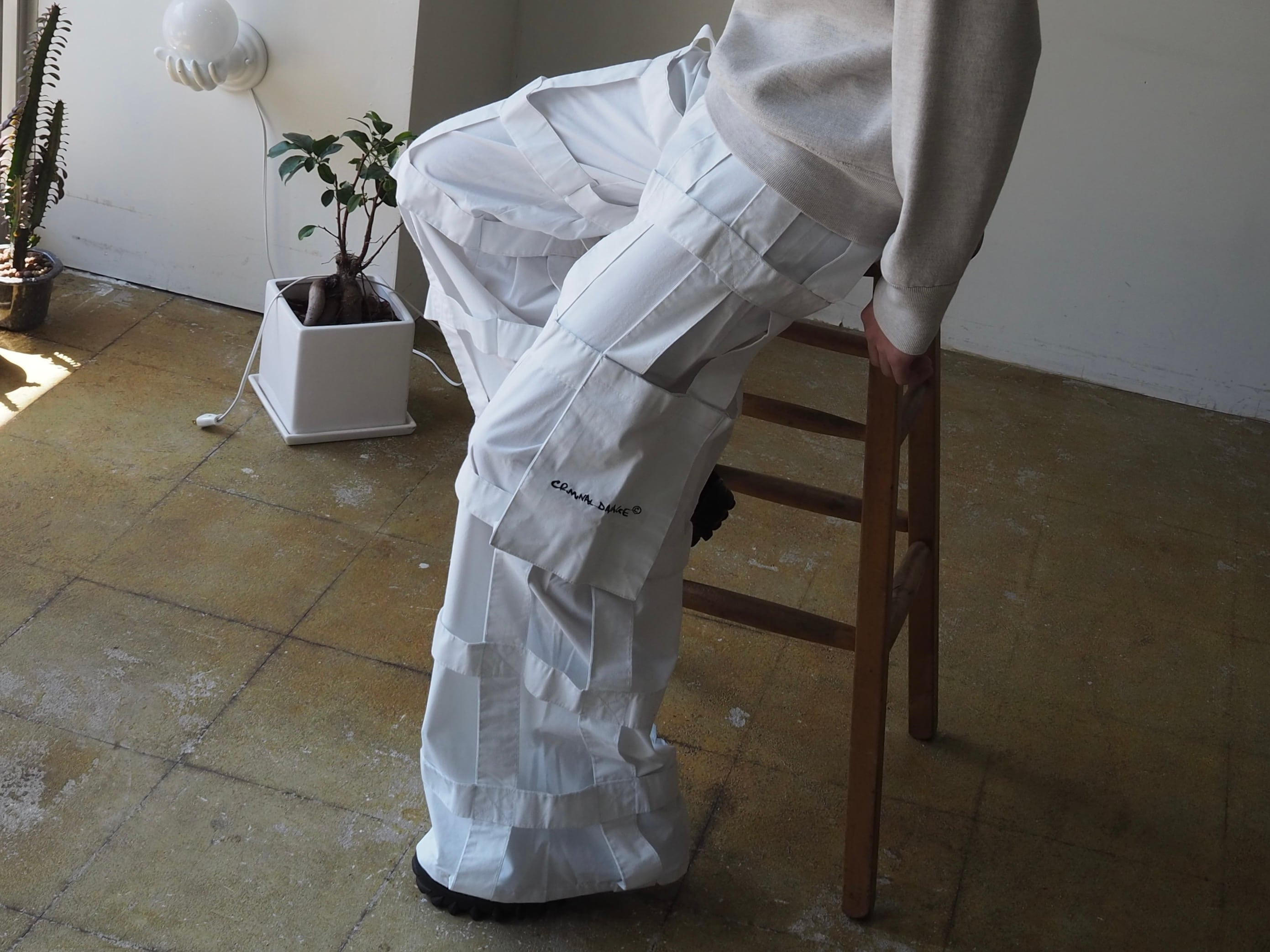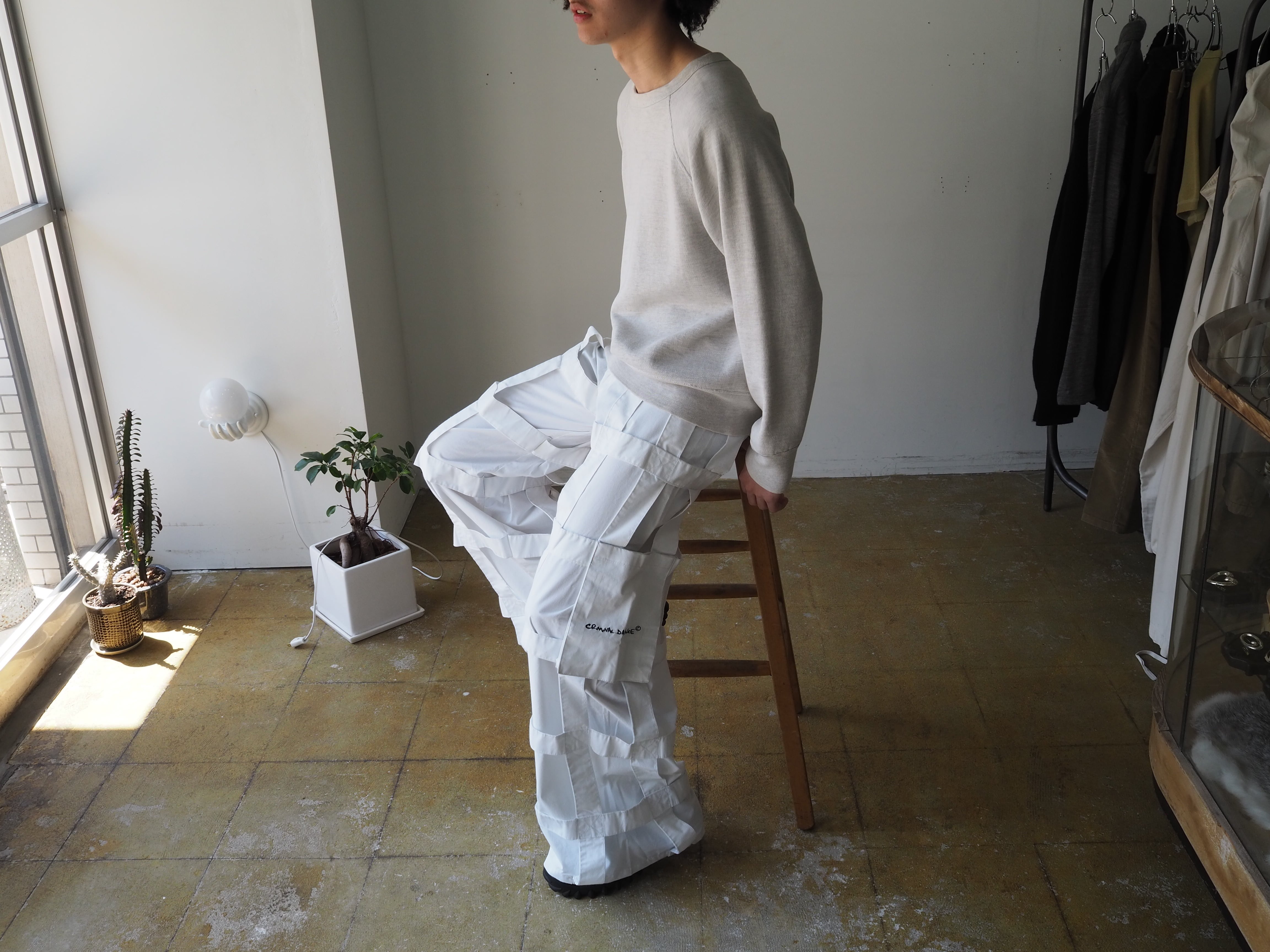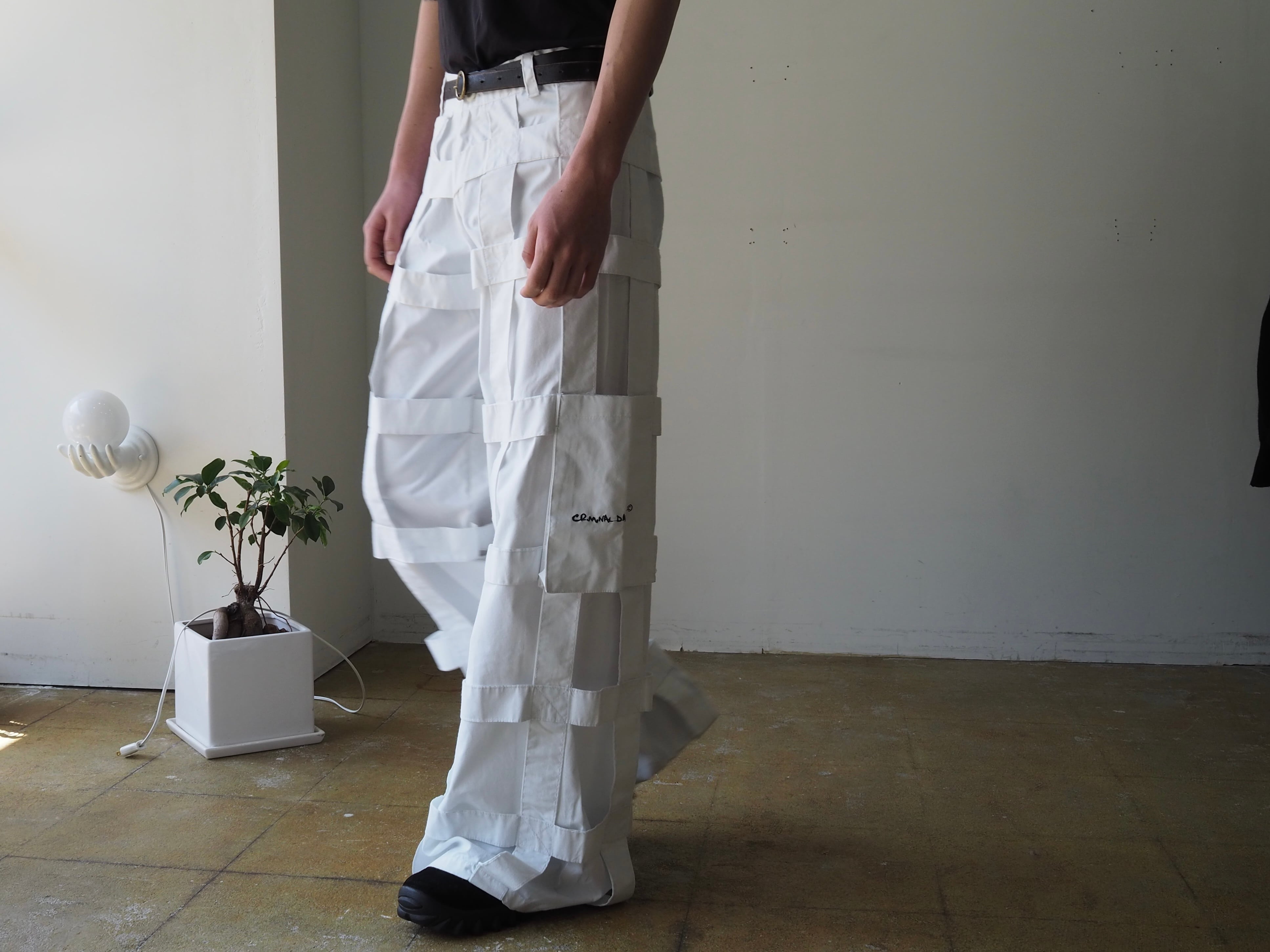 真っ白なポリ×コットン生地で裾までズドンとワイドなシルエット。