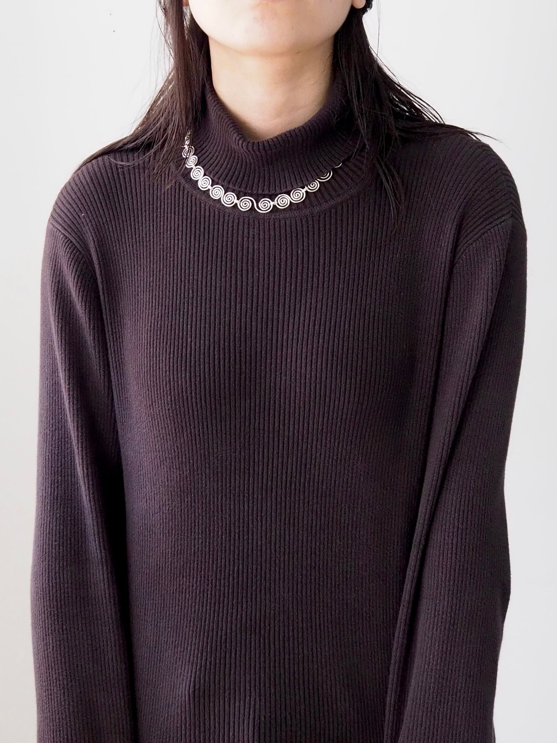 ぐるぐると渦巻くパーツが連なるネックレス。