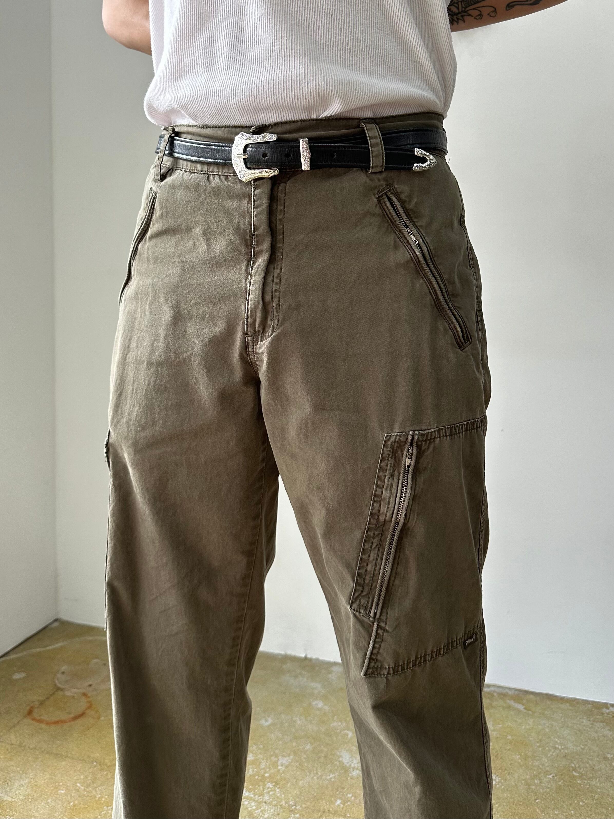 パラシュートパンツデザインでW30表記のスッキリとしたバランス。