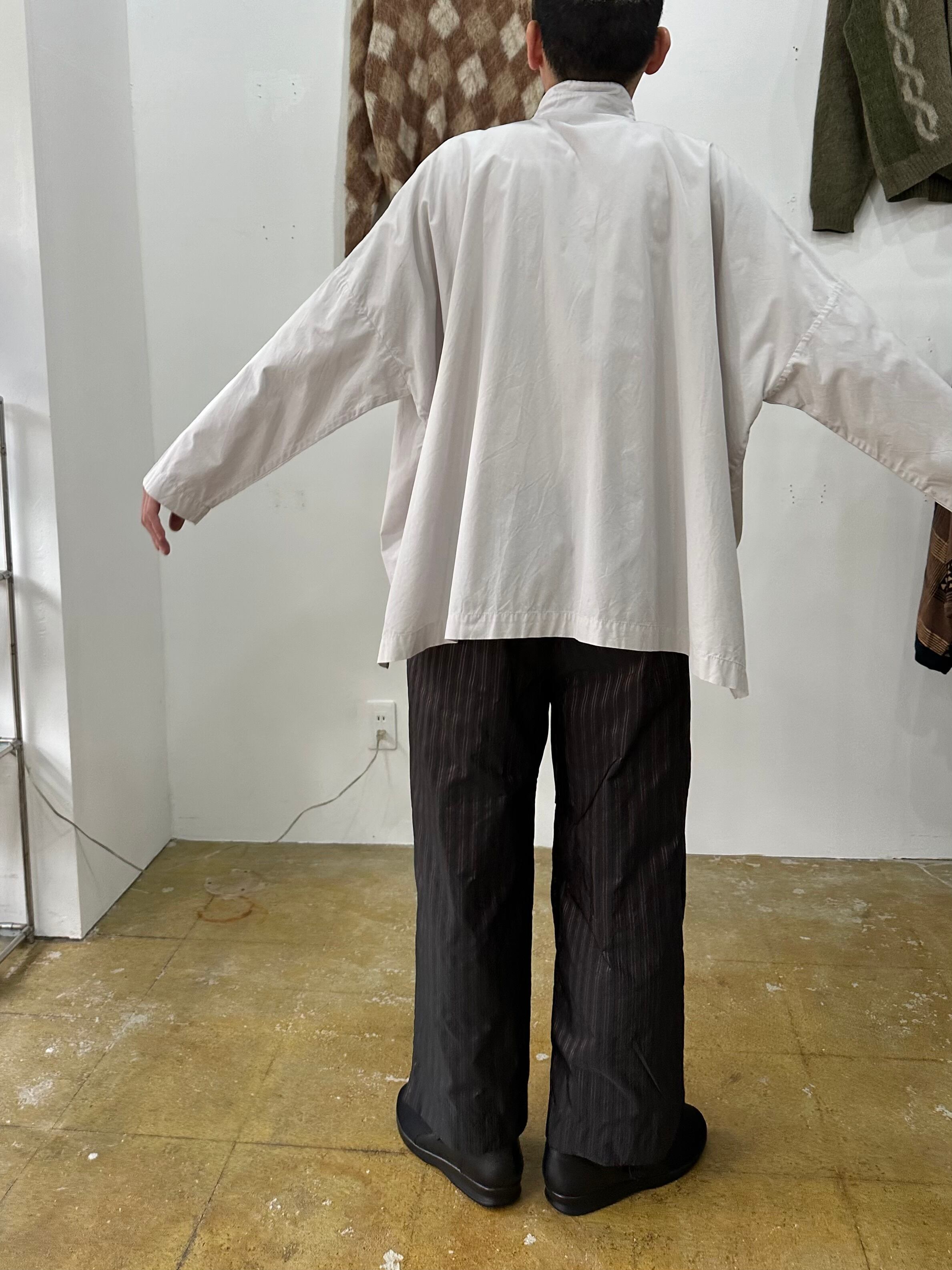 高密度で程よく張りのあるコットン地、極端に身幅の広いシルエット。