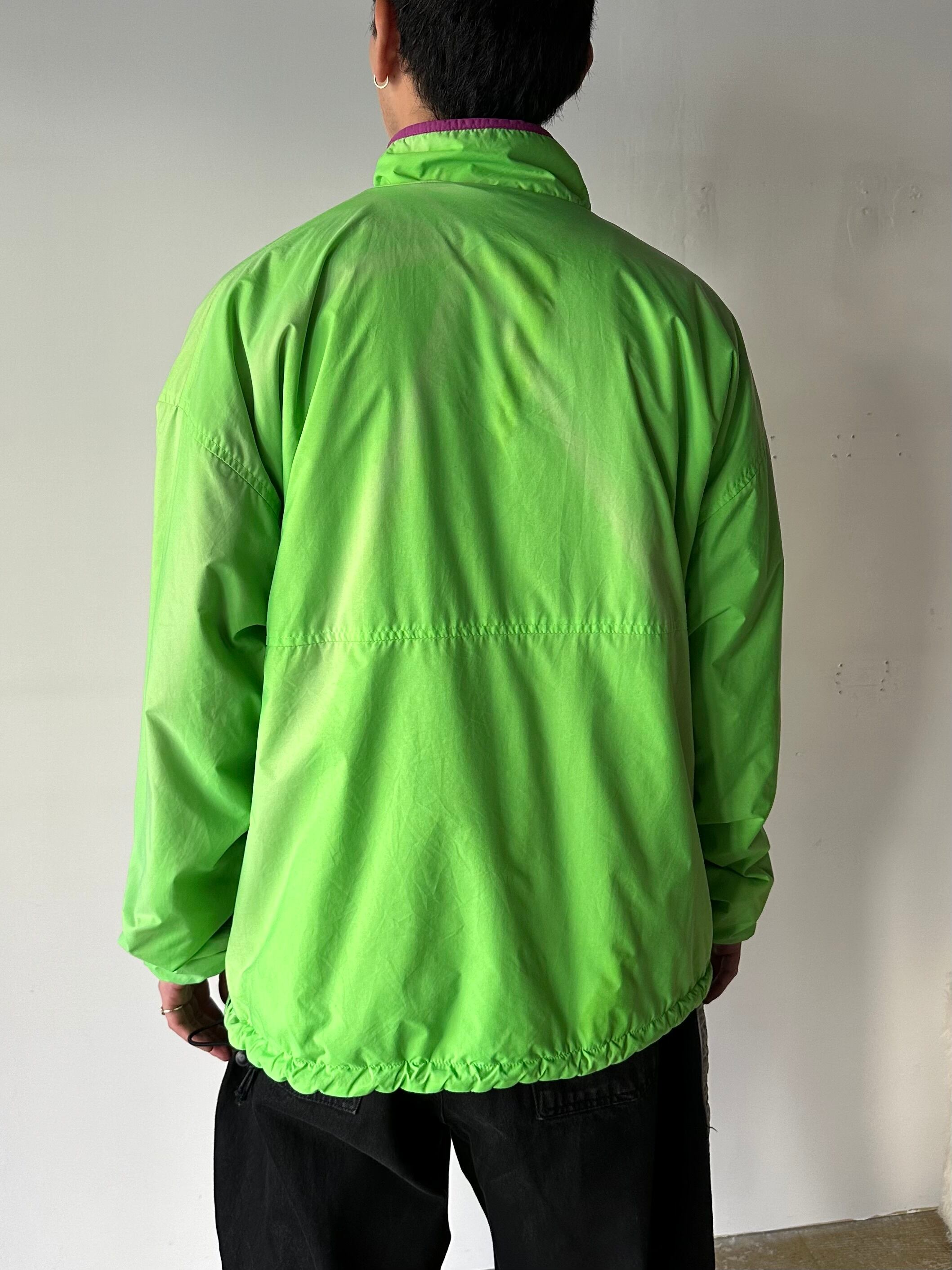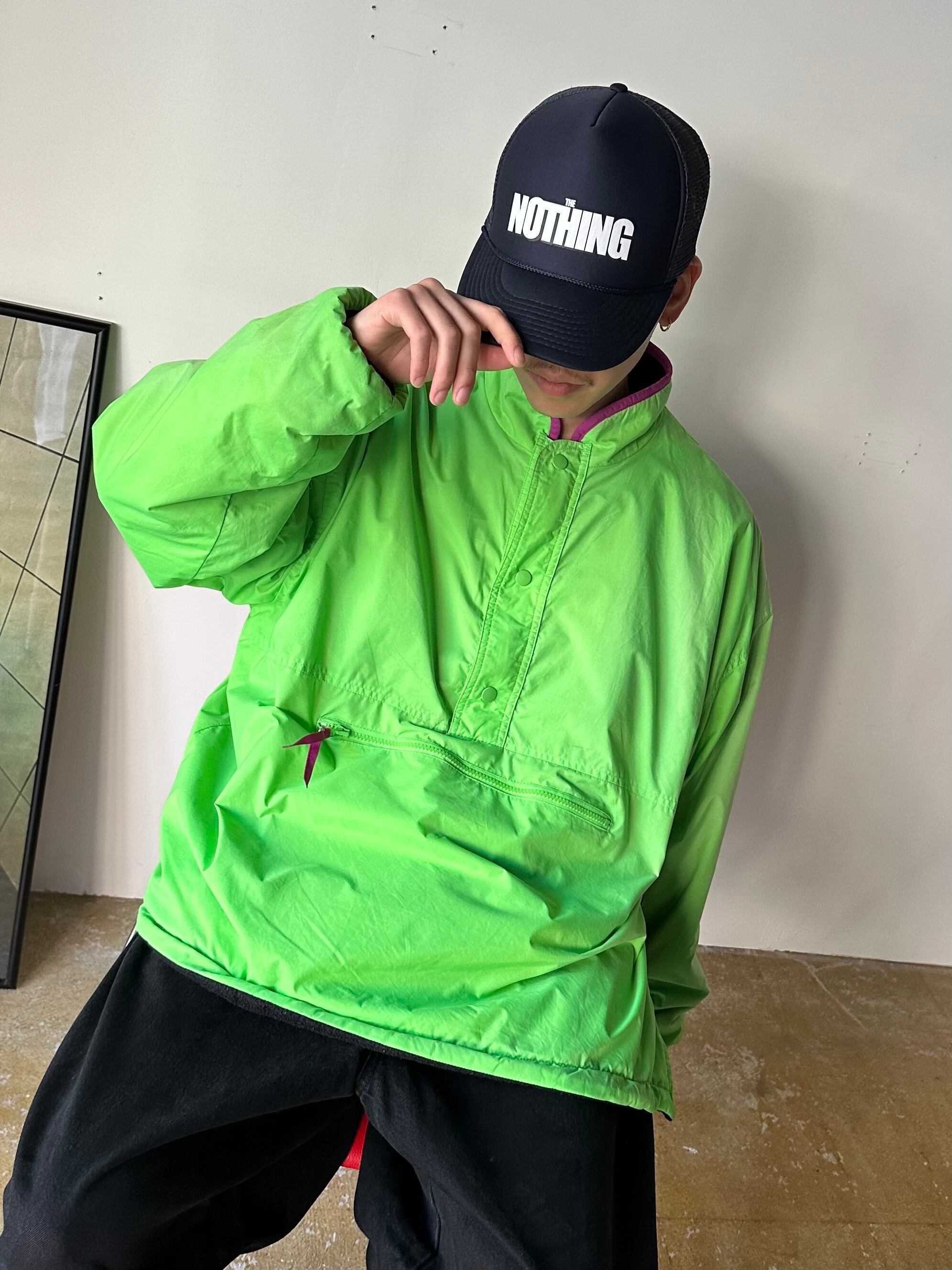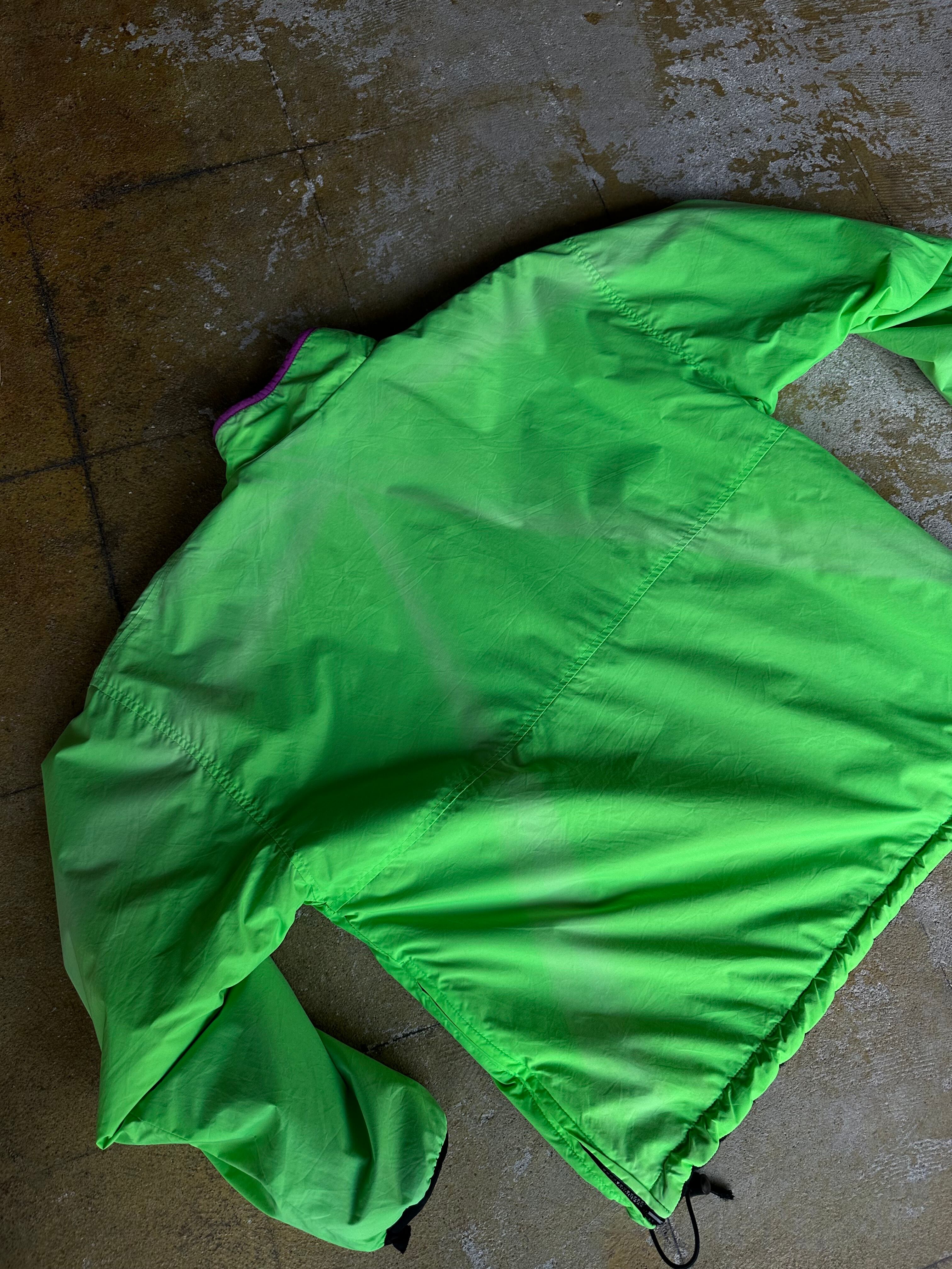 この個体はネオングリーンのナイロンとブラックのフリースのリバーシブル。