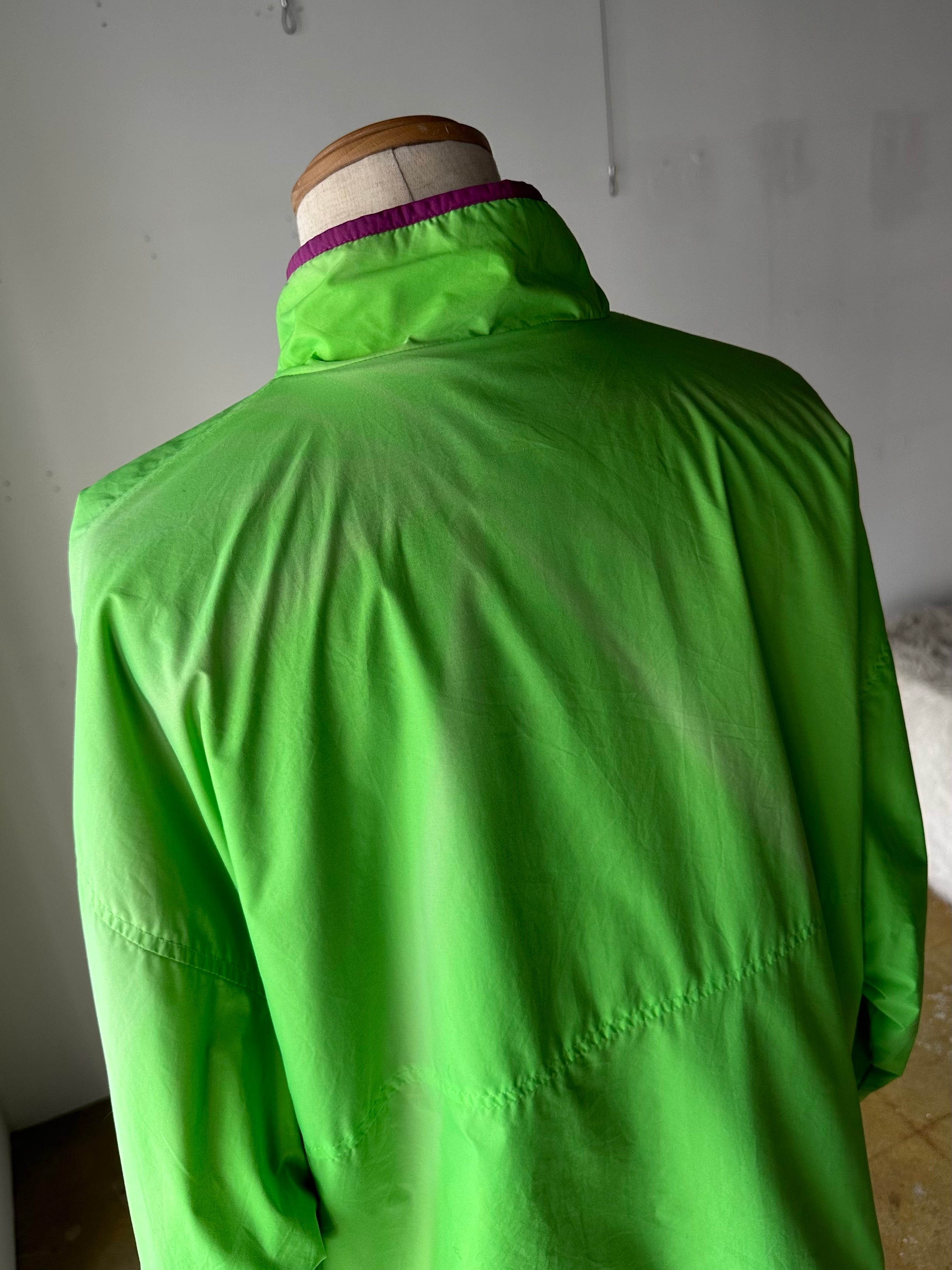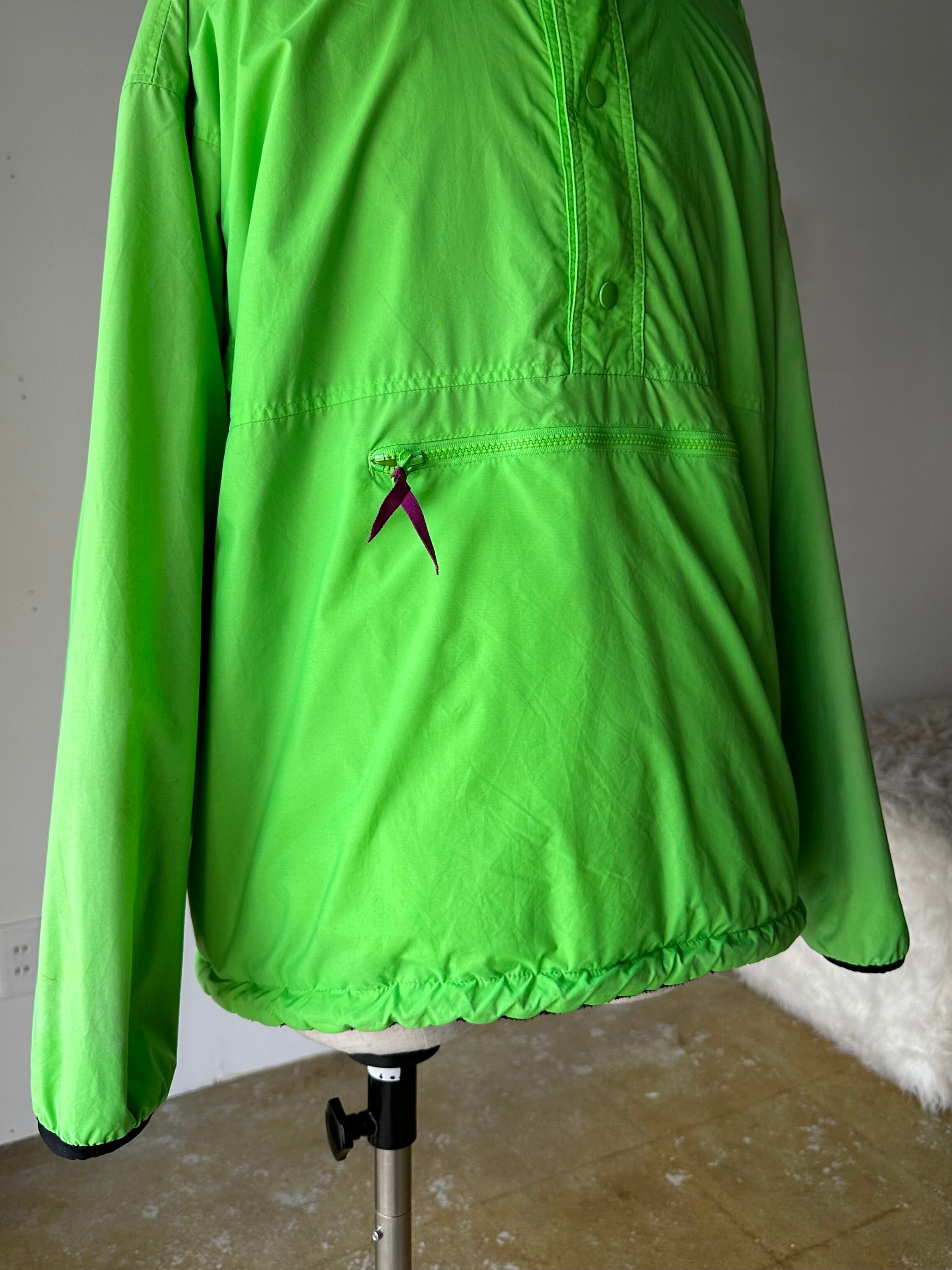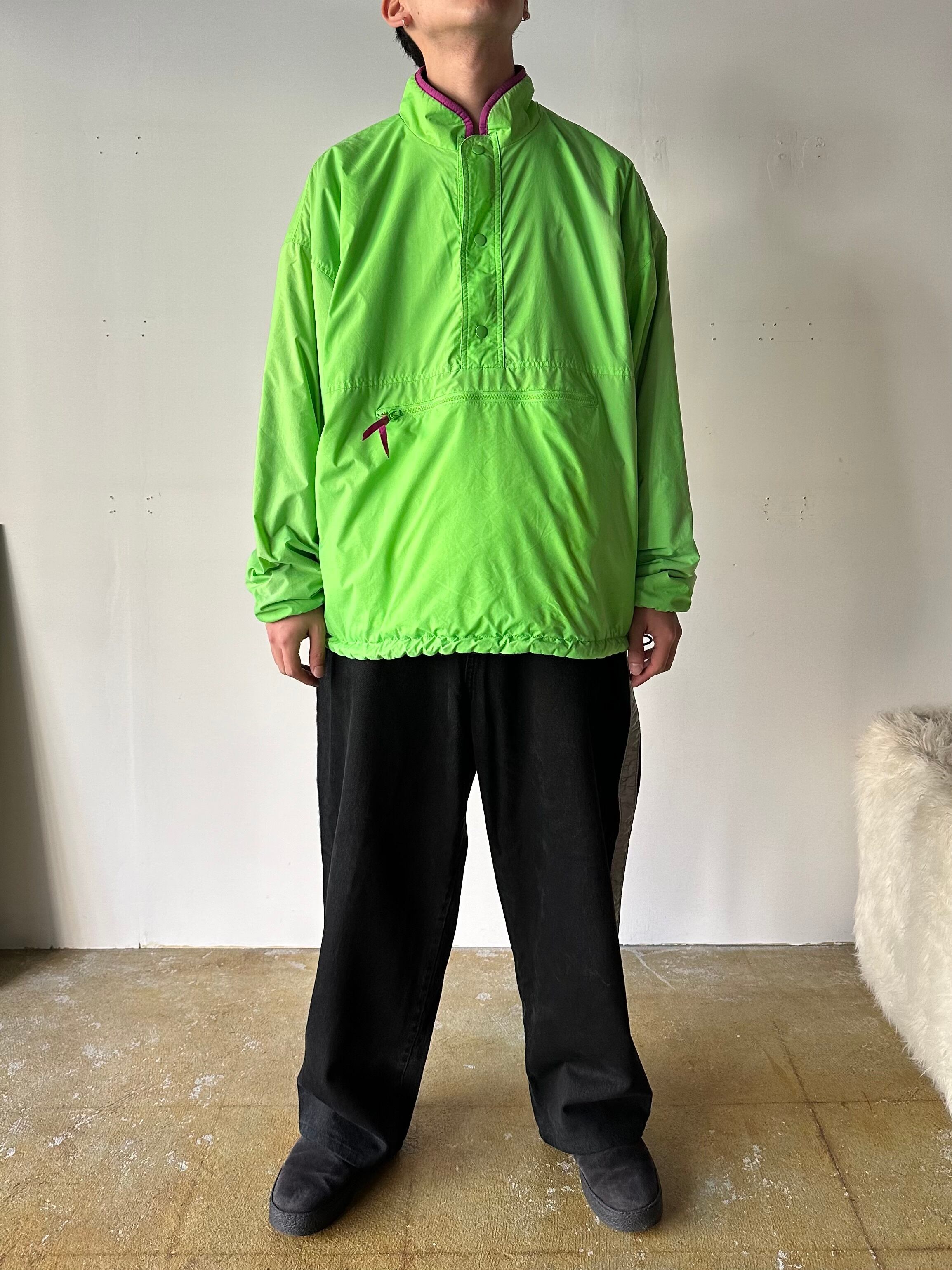 この個体はネオングリーンのナイロンとブラックのフリースのリバーシブル。