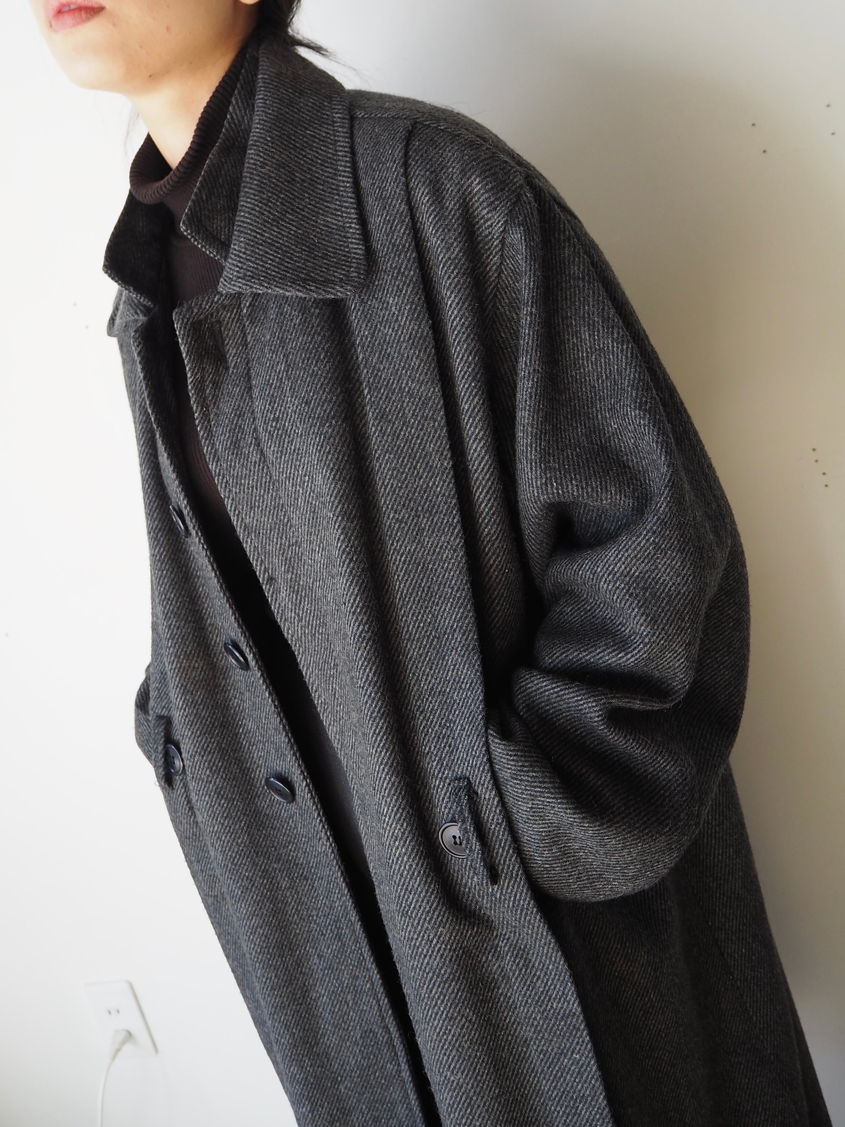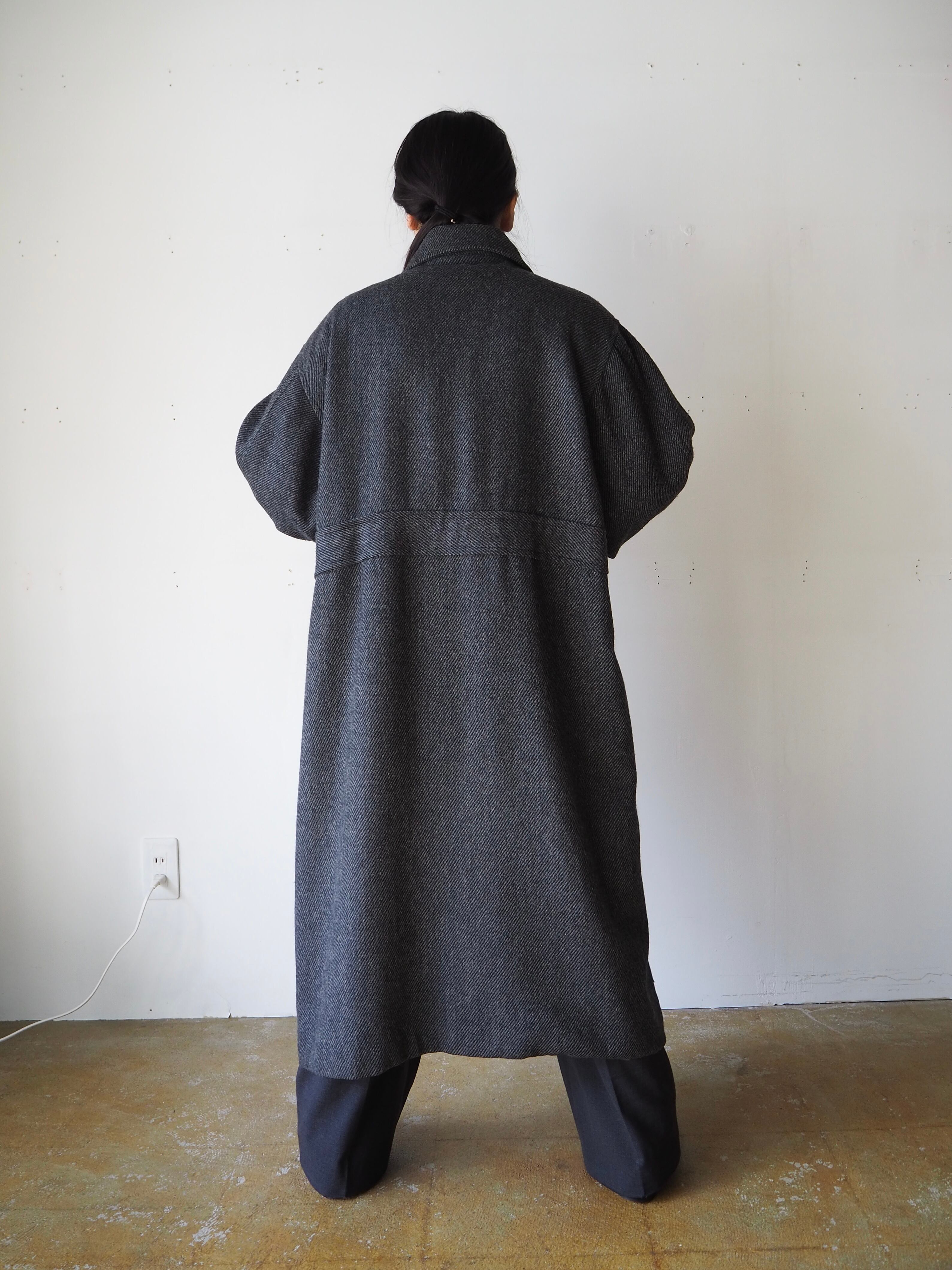 表記ありませんが恐らくウールにアクリルなどが混じった柔らかな生地のおかげで肩も張らず、フロントを閉めても良いシルエットです。