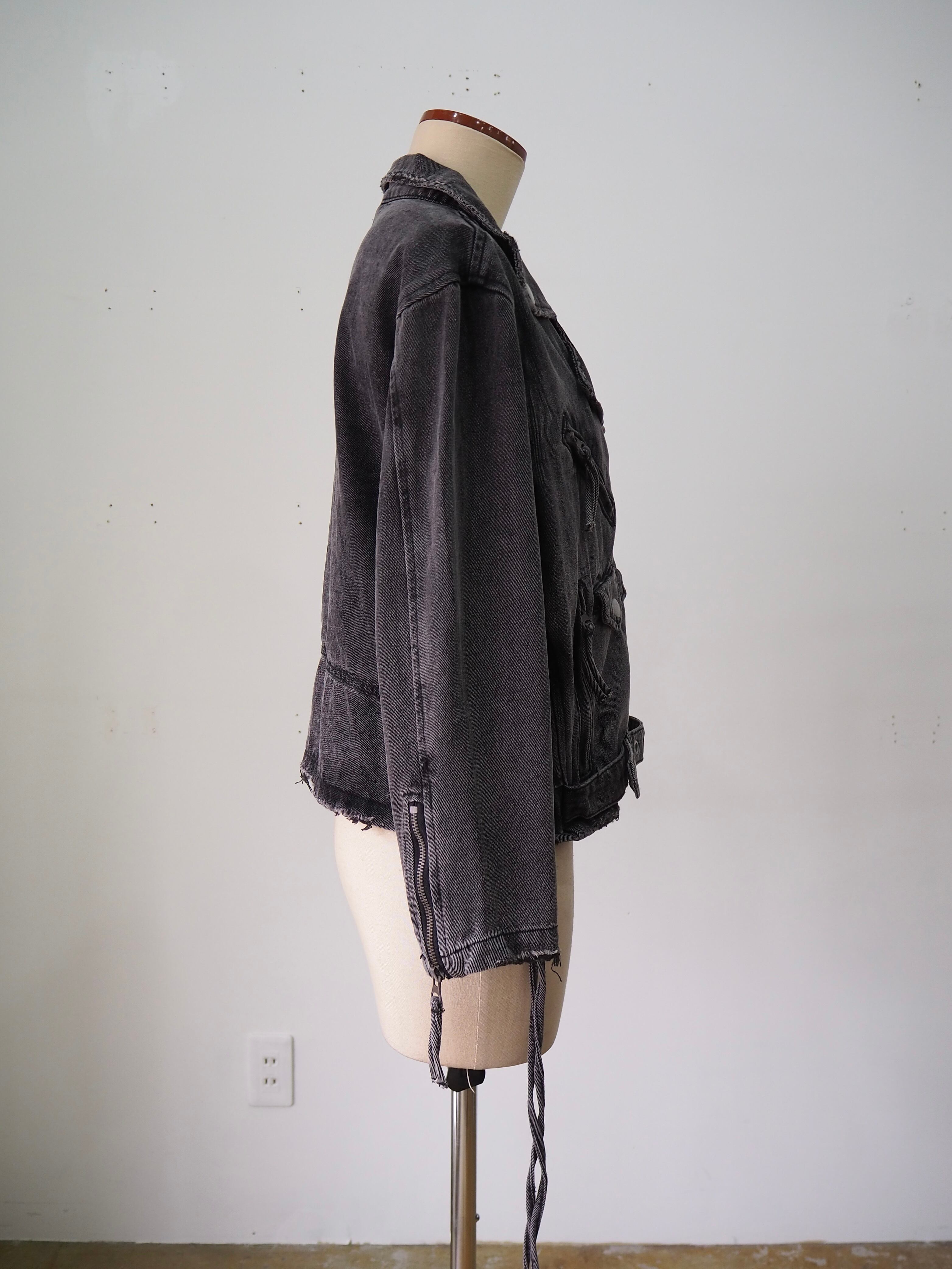 フェードしたブラックデニムの色味と雰囲気のある程よいダメージ加工。