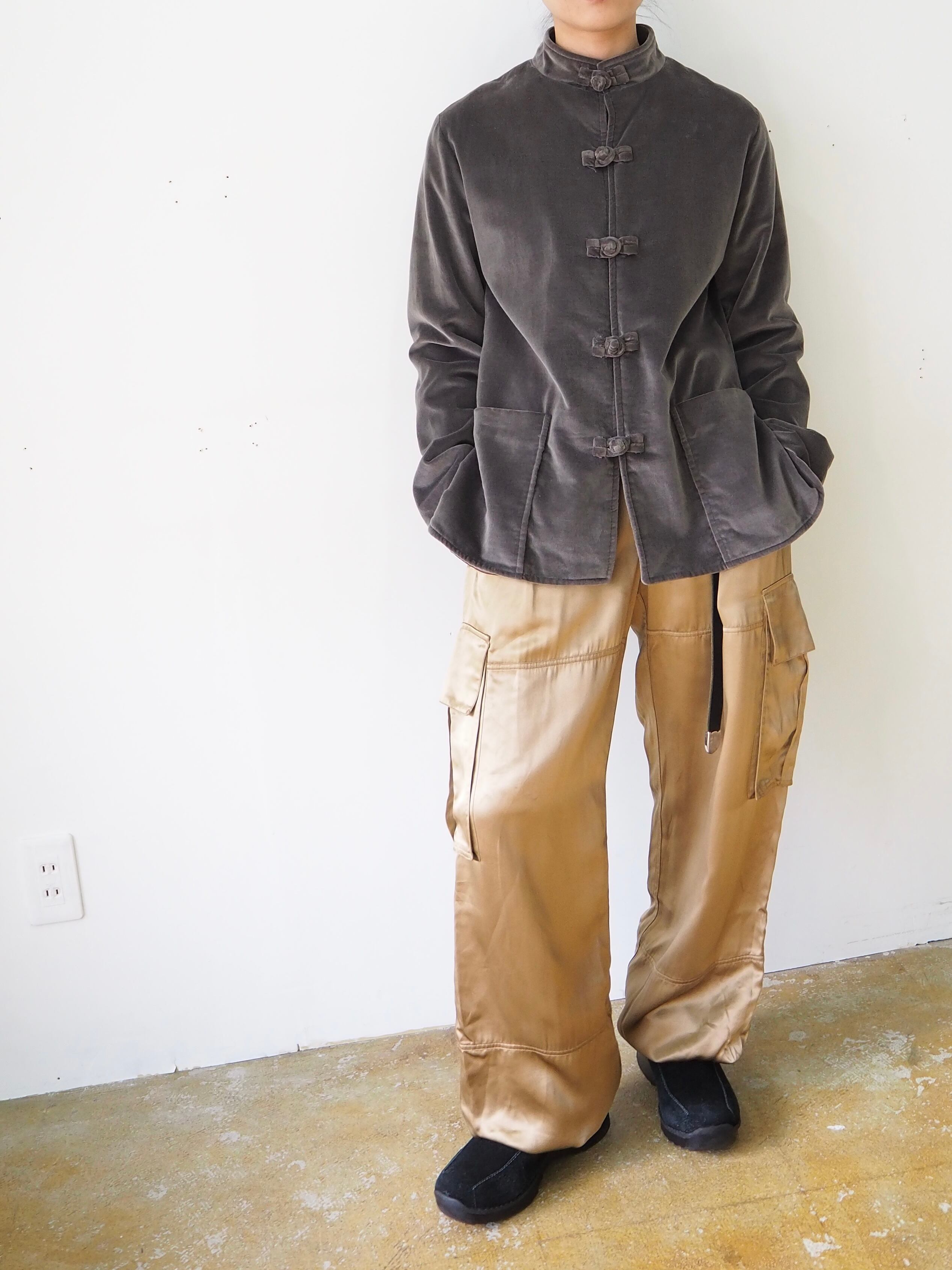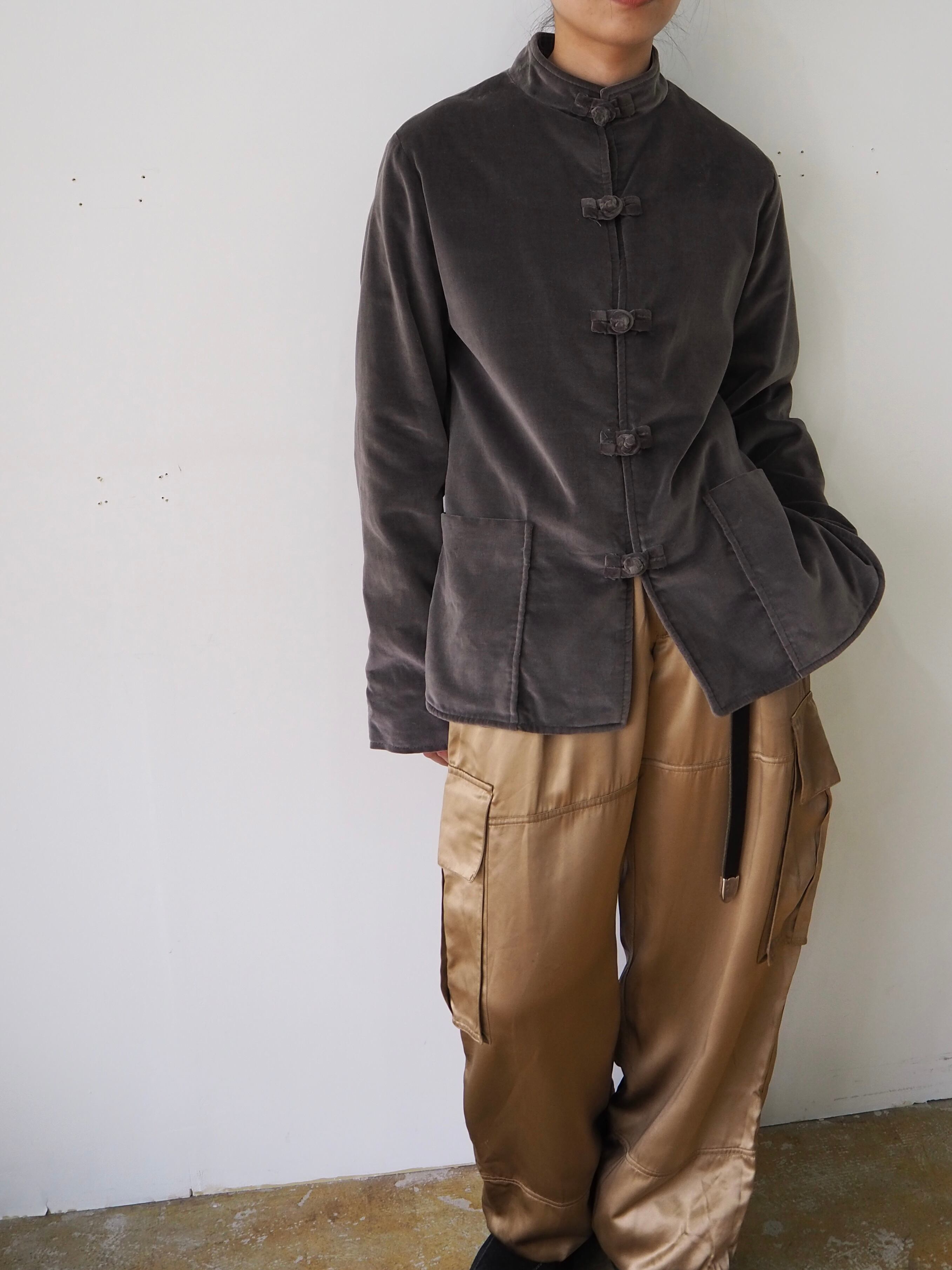 美しい刺繍が入ったビンテージのマンダリンジャケットも勿論素敵ですが、デザイナーなどがカジュアルにアレンジしたこういう年代のチャイナデザインも古着らしい魅力があると思います。