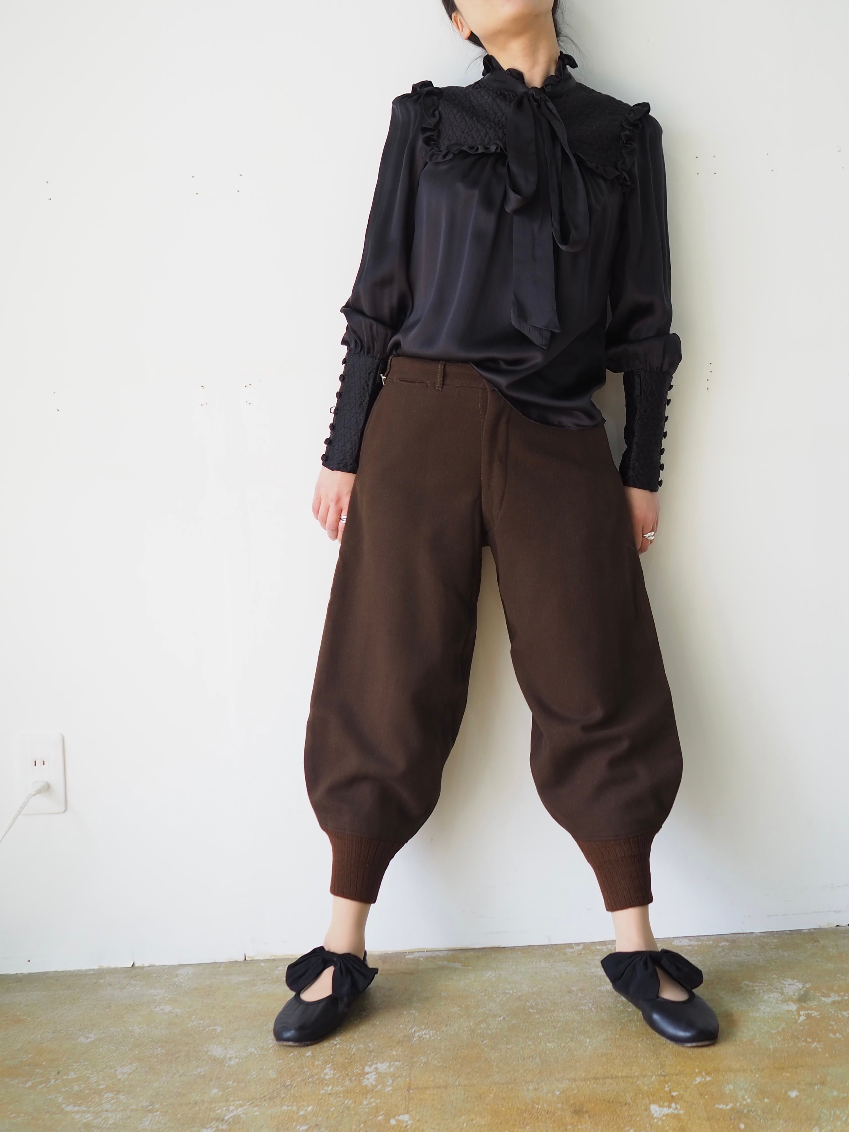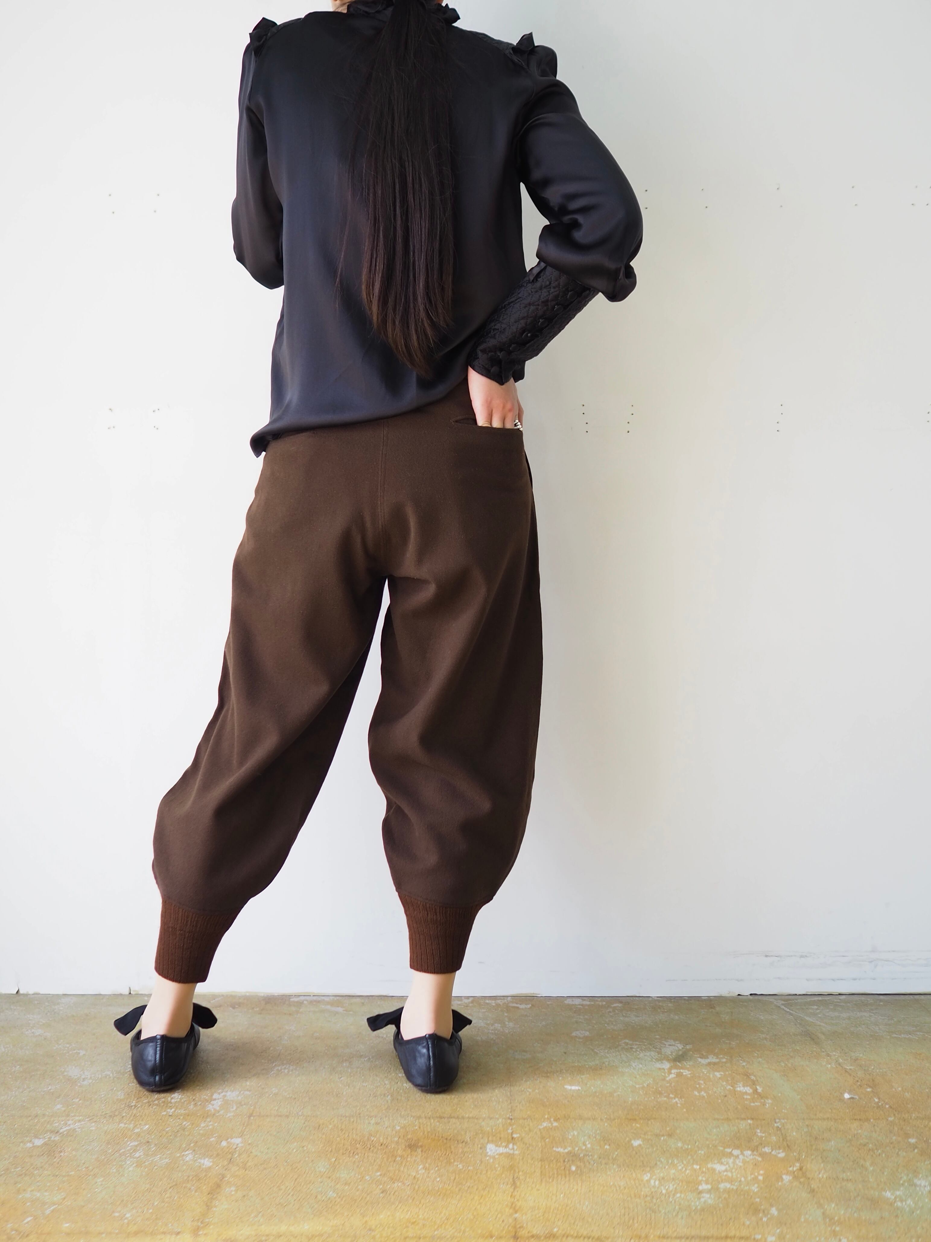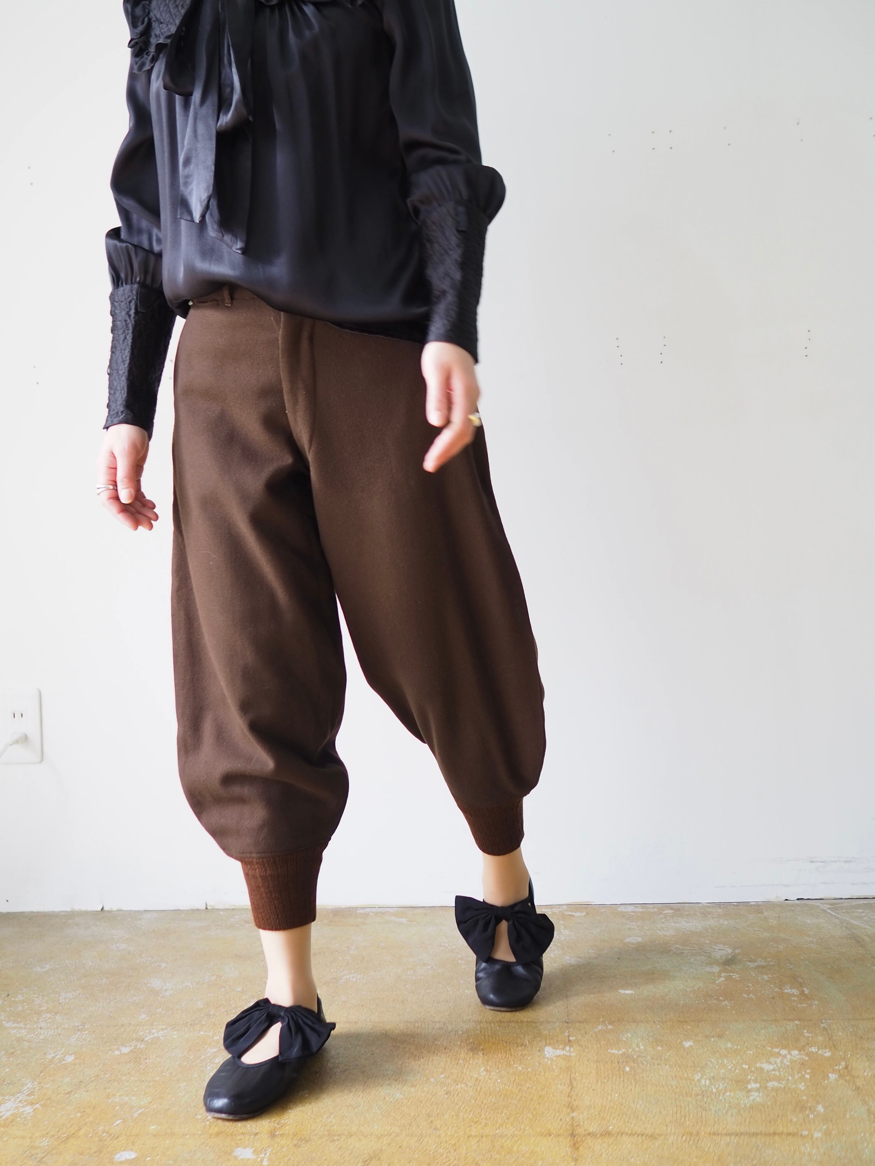 裾リブでギュッと締まるニッカポッカみたいな形です。